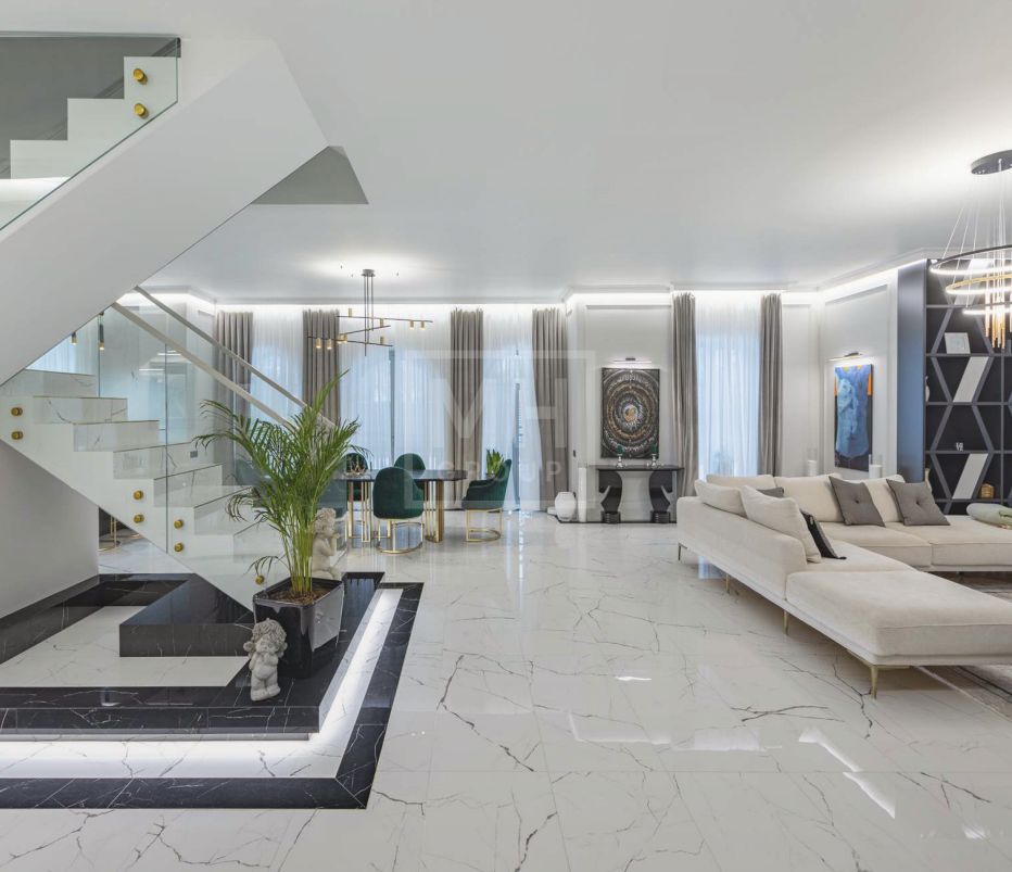 Новый дом по индивидуальному дизайнерскому проекту, расположенный в закрытом охраняемом поселке «Загорье». Территория поселка окружена смешанным лесным массивом, что позволяет жителям поселка насладиться обилием чистого свежего воздуха. Уникальное месторасположение поселка дарит возможность его жителям как уединиться, так и с легкостью и комфортом добраться до города благодаря удобной транспортной логистике. Внепосредственной близости развитая инфраструктура: продуктовые магазины, рестораны/кафе, частные школы международного класса /государственные общеобразовательные школы, детские сады, детские игровые площадки.