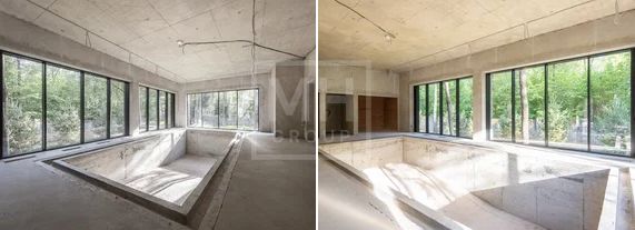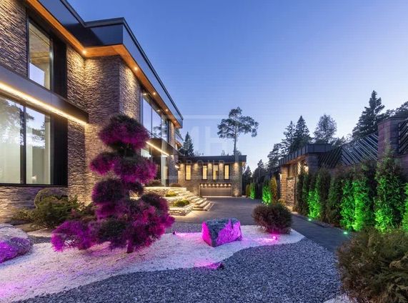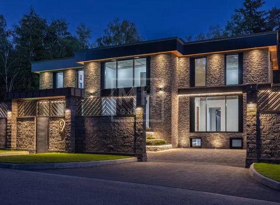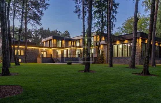 Современный дом в реликтовом лесу под чистовую отделку. Дизайнерская подсветка фасада, панорамное остекление, плоская кровля, высокие потолки, лифт, спа-зона с бассейном, сауной и хаммамом, отдельный блок для персонала и охраны, два гаража на 8 машиномест. Установлены системы умный дом, снеготаяния, полива, кондиционирования, видеонаблюдения, усиления связи, стабилизации электричества, очистки воды, обогрева ливневой канализации, бесшовный Wi-Fi.