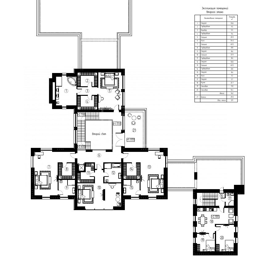 Этаж 2: мастер спальня с с/у и гардеробной, 3 спальни с с/у и гардеробными