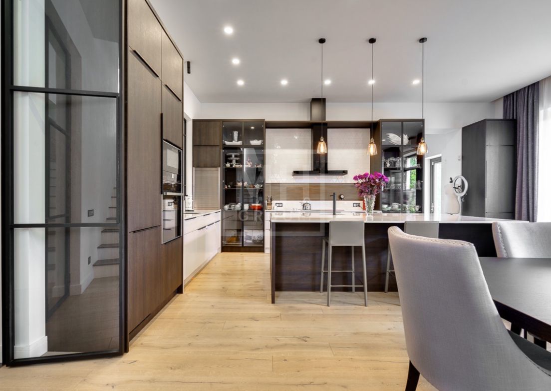 Этаж 1: прихожая, санузел, кладовая, кабинет, кухня, гостиная, столовая, спальня