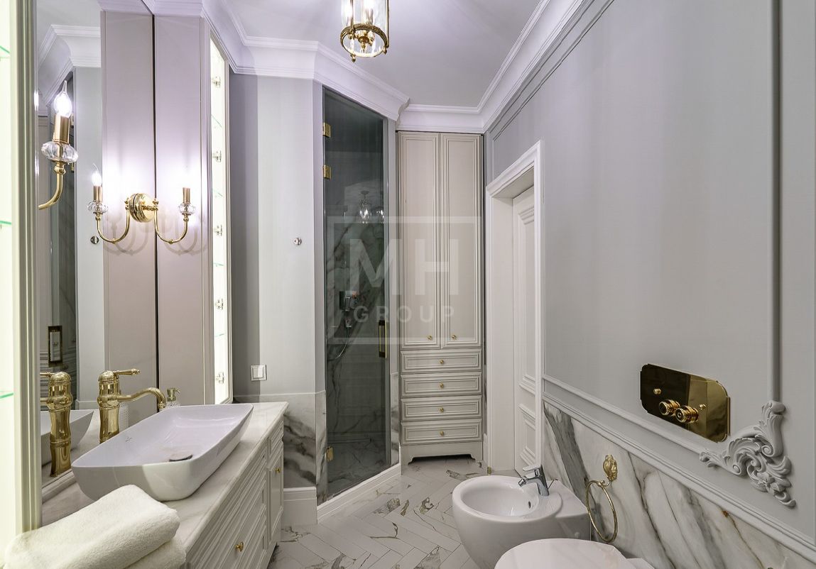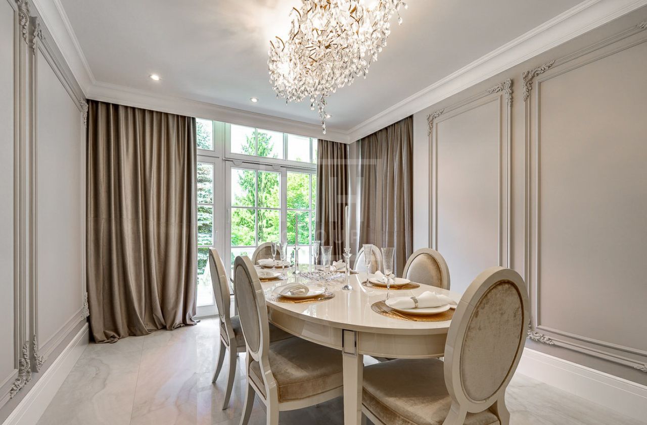 Новый классический дом "под ключ" с мебелью в коттеджном поселке "Третья Охота". В отделке использовались высококачественные материалы - паркетная доска из натурального дуба, мрамор, фасад облицован натуральным камнем. Мебель в гостиной и зоне столовой Giorgio Casa Италия, кухня (со встроенной Итальянской бытовой техникой SMEG), мягкая мебель выполнены на заказ. Планировка дома включает в себя: 5 спален, 4 санузла, кухню гостиную-столовую, СПА-зону с кедровой бочкой и сауной. На участке произведена посадка крупномеров, декоративных кустарников и растений.