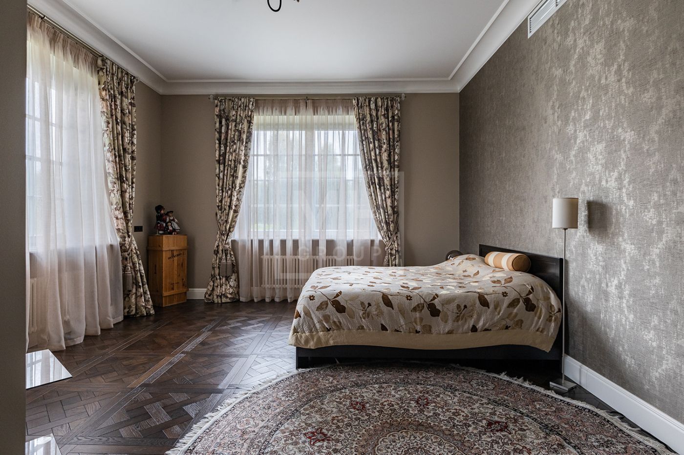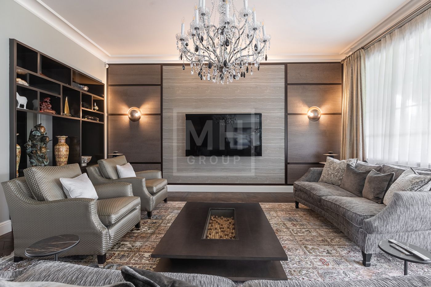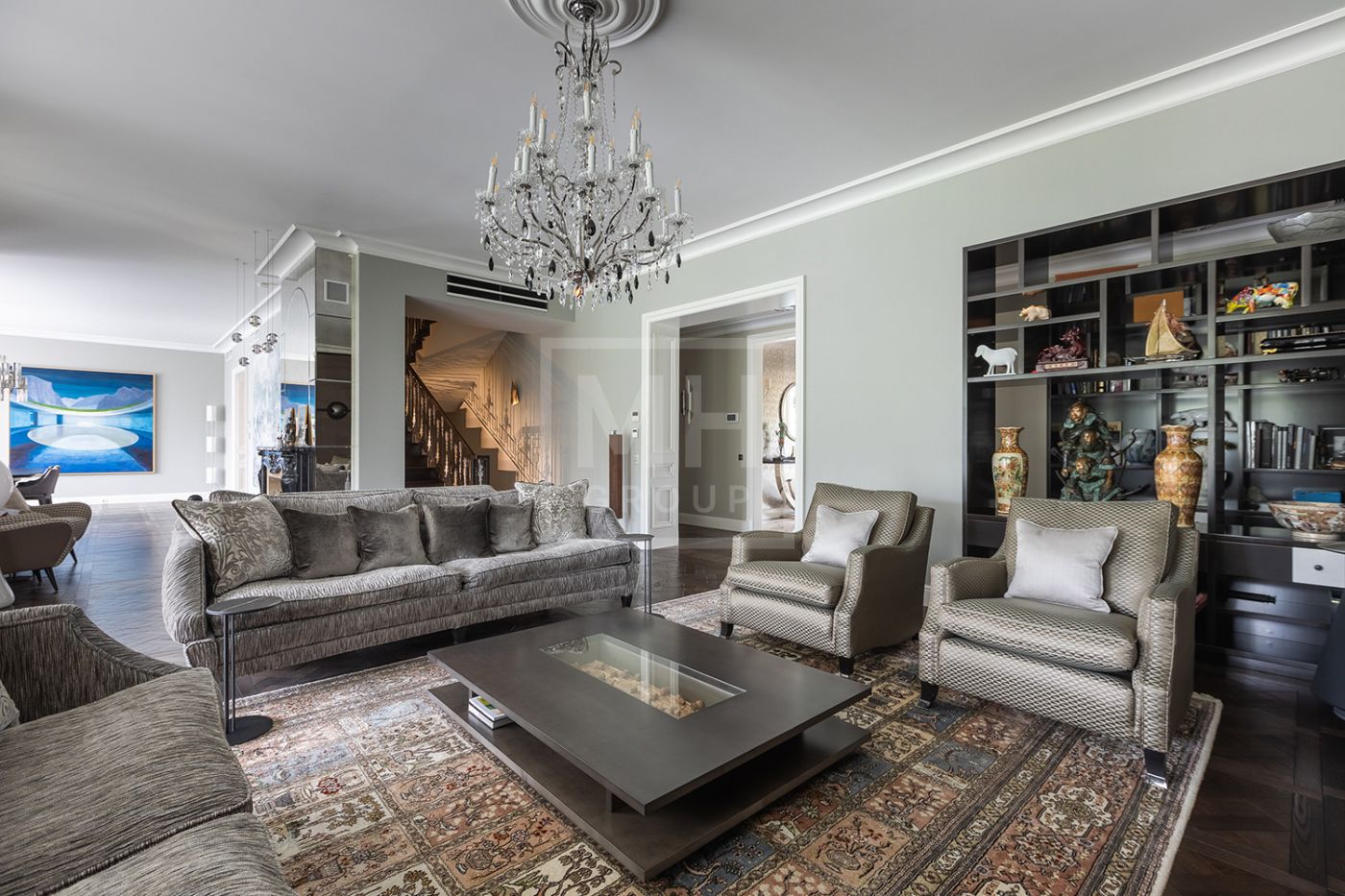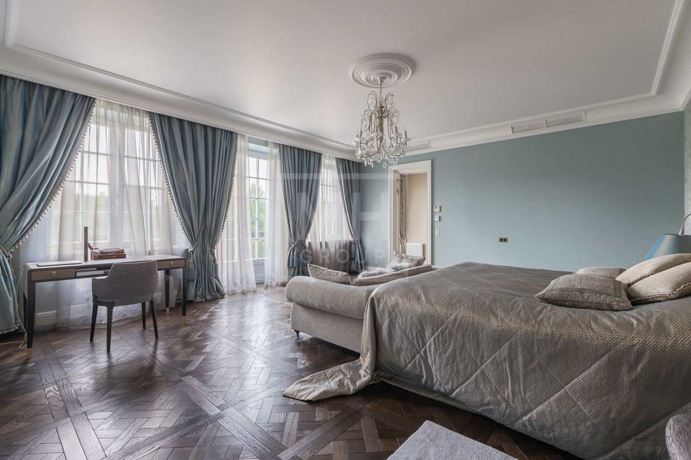 К продаже представлен респектабельный особняк с отделкой под ключ в классическом стиле. Дом площадью 976 кв.м. приватно расположен на ухоженном и утопающим в зелени участке 47 соток, примыкающем к парковой территории элитного коттеджного поселка Монтевиль. Из окон гостинной и мастер -спальни открывается потрясающий вид на парковый ландшафт участка в окружении зелени лиственных и хвойных деревьев.В доме 5 спален, 2 кухни с профессиональной мебелью, кабинет, блок для персонала, спа-зоной, профессиональной винной комнатой, гараж на 4 машиноместа.