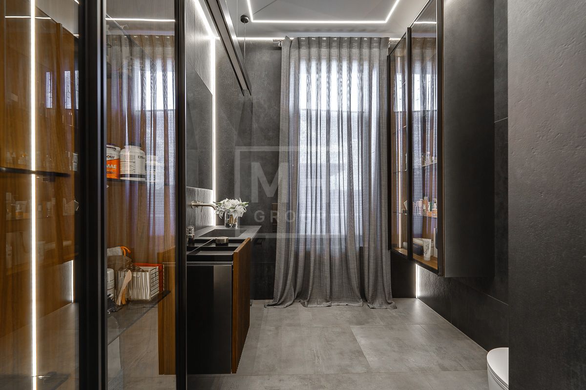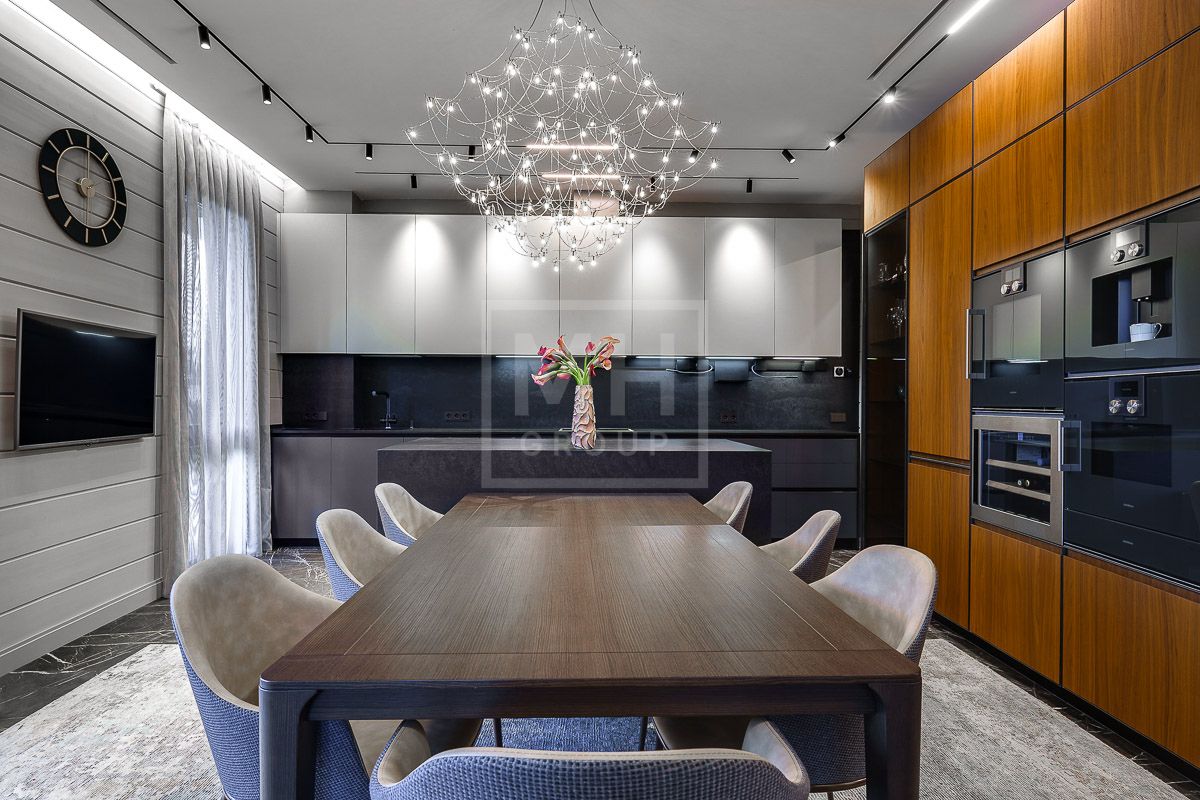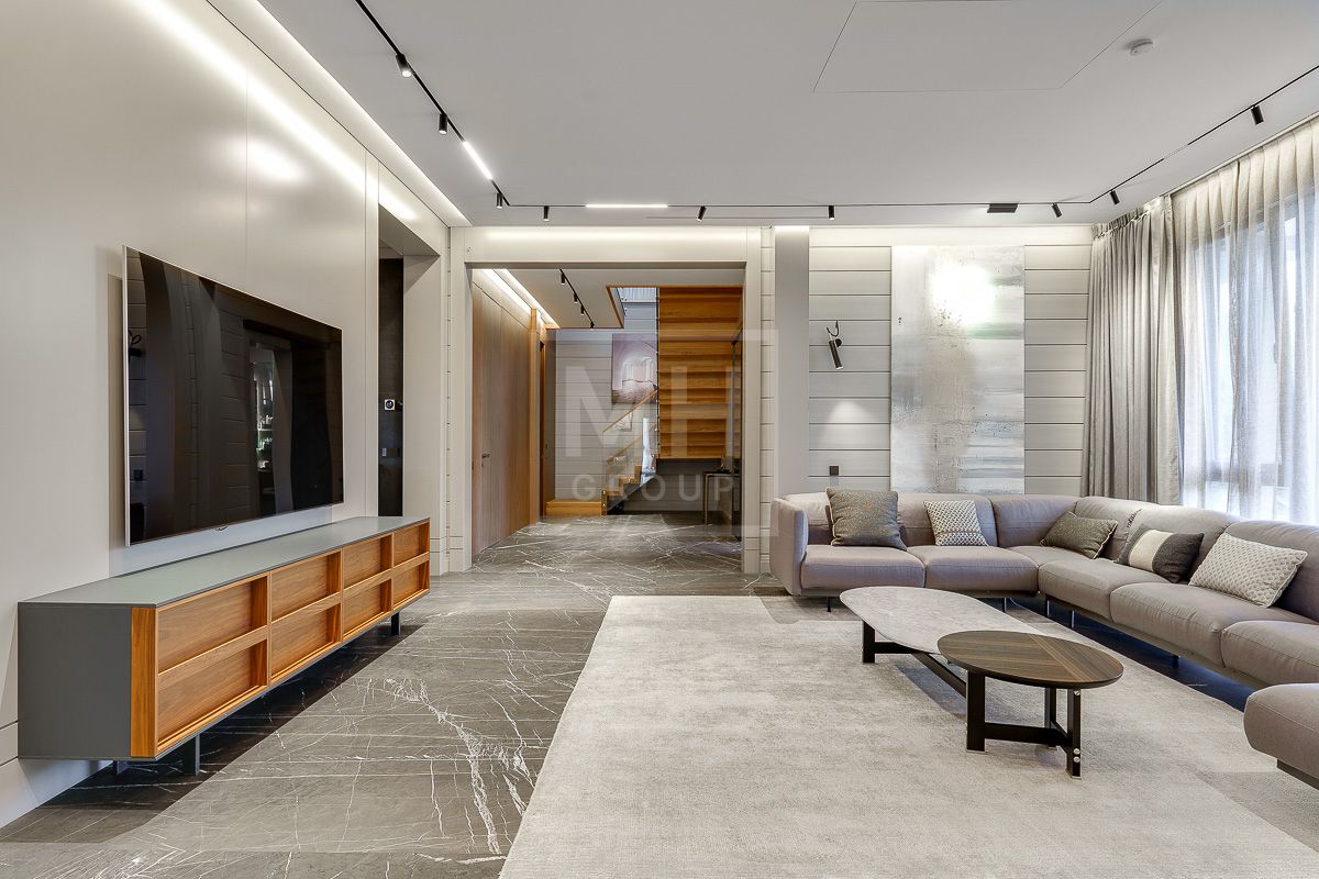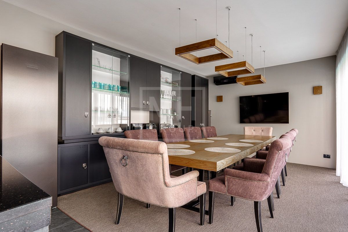 На продажу предлагается современный дом общей площадью 550 кв.м. в КП "Райт Хиллс". Дом полностью укомплектован итальянской мебелью и сантехникой: встроенные шкафы группы Battistella design by Novamobili, банкетка Meridiani, кухня Arrital cucine, в шпоне ореха, и металлизированном ламинате fenix, столешница натуральный камень, встроенная техника Gaggenau,Liebcherr; столовая группа - раскладной стол Potocco, стулья Midj, люстра Baxter. Гостиная- диван модульный в ткани антипятна фабрики Ditre, комод Miniforms. Раздвижные двери Rimadesio, в кабинете рабочий стол с тумбой и кресло Poltrona Frau полностью в натуральной коже, раскладной диван в ткани антипятна Bodema, стеллажная группа фабрики San Giacomo в металлизированном лаке, люстра Vistosi. Лестница из массива дуба по индивидуальному проекту со скрытой несущей конструкцией от немецкого конструкторского бюро. Спальня кровать фабрики Bolzan letti с итальянским ортопедическим матрацем премиум класса Lineaform, комод Seven sedie, люстра муранского стекла Itallamp Гардеробная комната по индивидуальному проекту Novamobili. Детская комната итальянская фабрика Nidi, светильники Flos, кровать Bodema, прикроватные зеркальные тумбы фабрики Cantori, светильники второго этажа Catellani e Smith; мебель в спортзале Varaschin, Arrital, муранское стекло Duomo с натуральным золотом фабрики Arte Veneziana в распашных дверях. Сантехника итальянских фабрик Rexa, Arbi, Artelinea смесители Fima, Remer, Bugnatese полотенцесушители Margaroli, ванная мебель в спа профессиональная парикмахерская мойка Comfort wash с креслом от немецкой компании Welonda, кедровая паровая бочка. Тренажерный зал со шведскими стенками, скамьей и штангами различных весов для силовых тренировок, с беговой дорожкой и велотренажером. Встроенные магнитные треки Led Tecnologies, душевые кабины по индивидуальному проекту из осветленного стекла в том числе керамопеч.