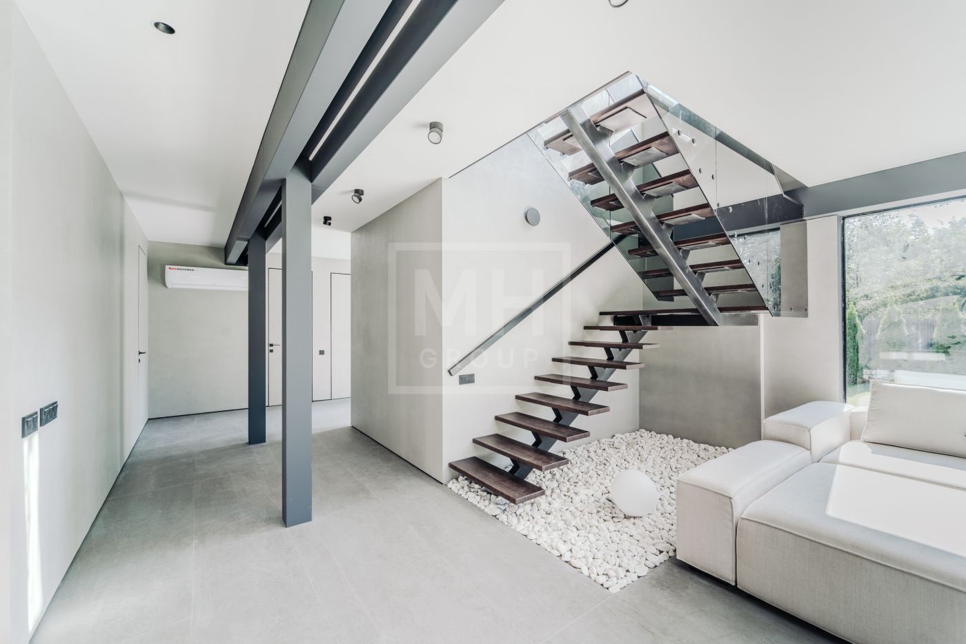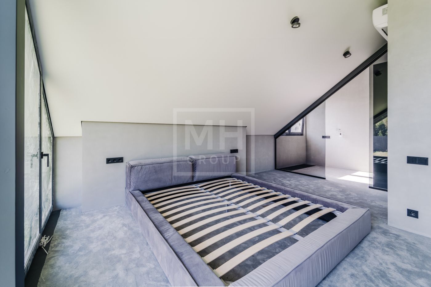 К продаже представлен новый, современный дом в стиле фахверк.Дом расположен в 12 км от МКАД по Новорижскому шоссе, в закрытом, камерном поселке. Дом располагается на красивом ухоженном участке. На участке выполнен ландшафтный дизайн, уложен красивый газон, по периметру высажены туи, установлена система автополива, зона парковки на 3 машины, установлено освещение, автоматические ворота.