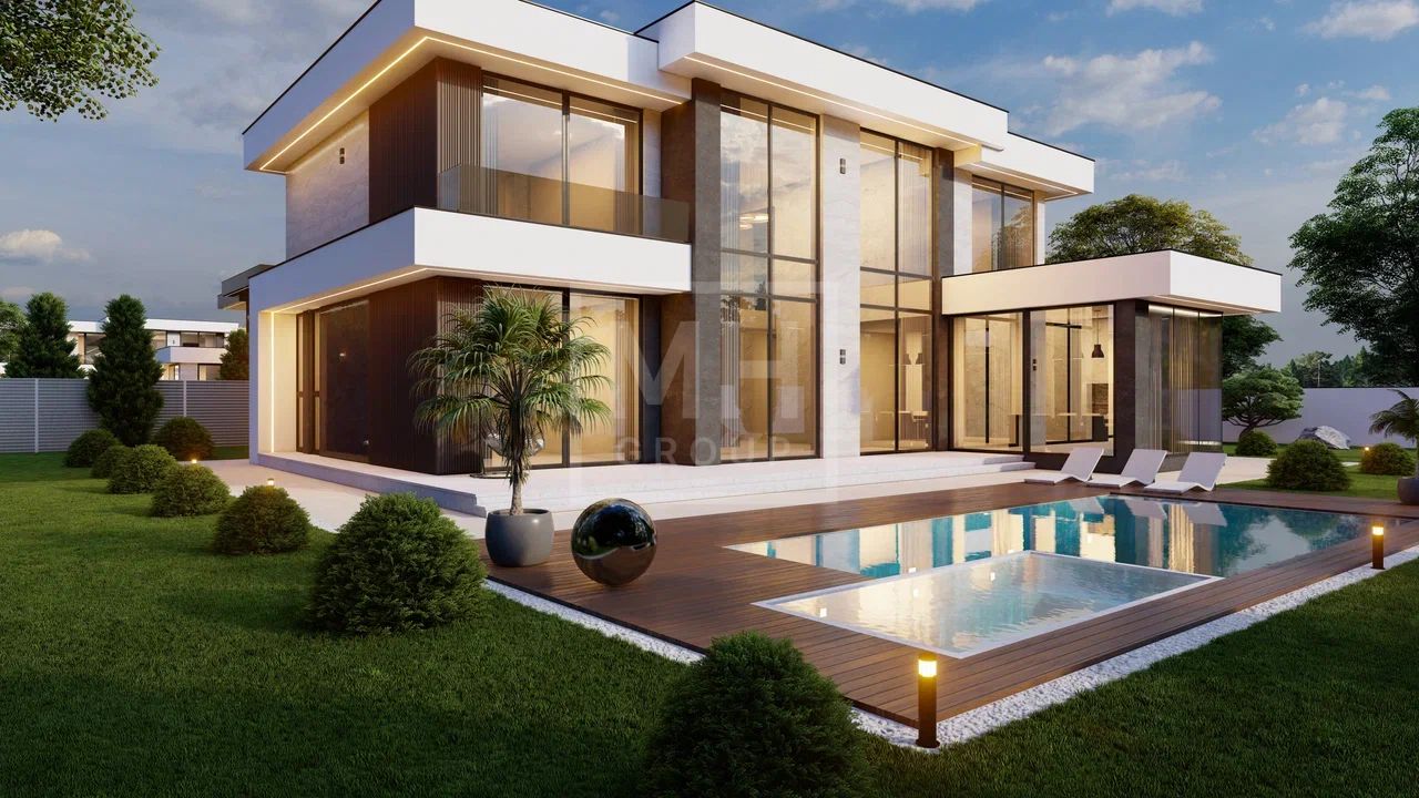 Современный дом в премиальном коттеджном поселке "Райт Хиллс". В строительстве и отделке дома использовались дорогие, премиальные материалы. В доме большое остекление, дорогие премиальные окна Schuco. Панорамное остекление наполняет дом светом и теплом. На первом этаже располагается большая кухня гостиная со вторым светом, мастер спальня с гардеробной и своим санузлом, большой гараж на два машиноместа и большой навес на две машины. На втором этаже мастер спальня с гардеробной и ванной комнатой, две спальни со своими гардеробными и большой ванной комнатой. Дом очень нежный и светлый, цветовая гамма подобрана с учетом всех современных тенденция включая отделку, мебель и предметы интерьера.