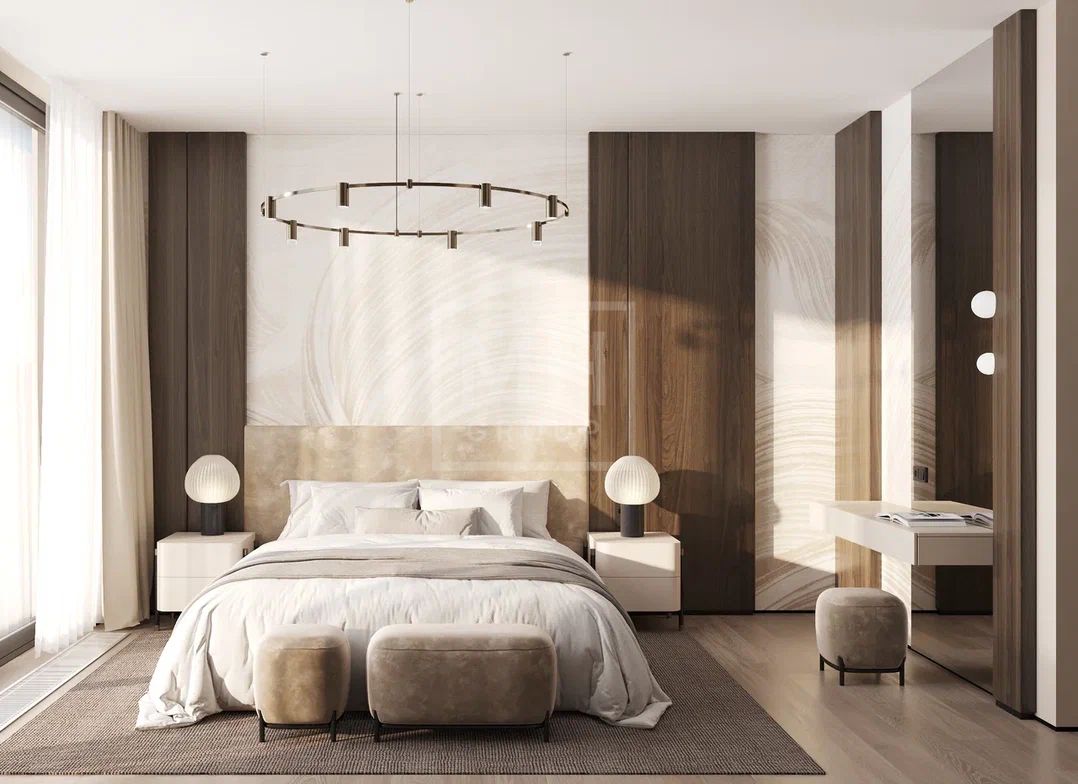 Этаж 2: Мастер спальня, гардеробная, ванная комната, спальня с гардеробной и санузлом, детская с гардеробной.
