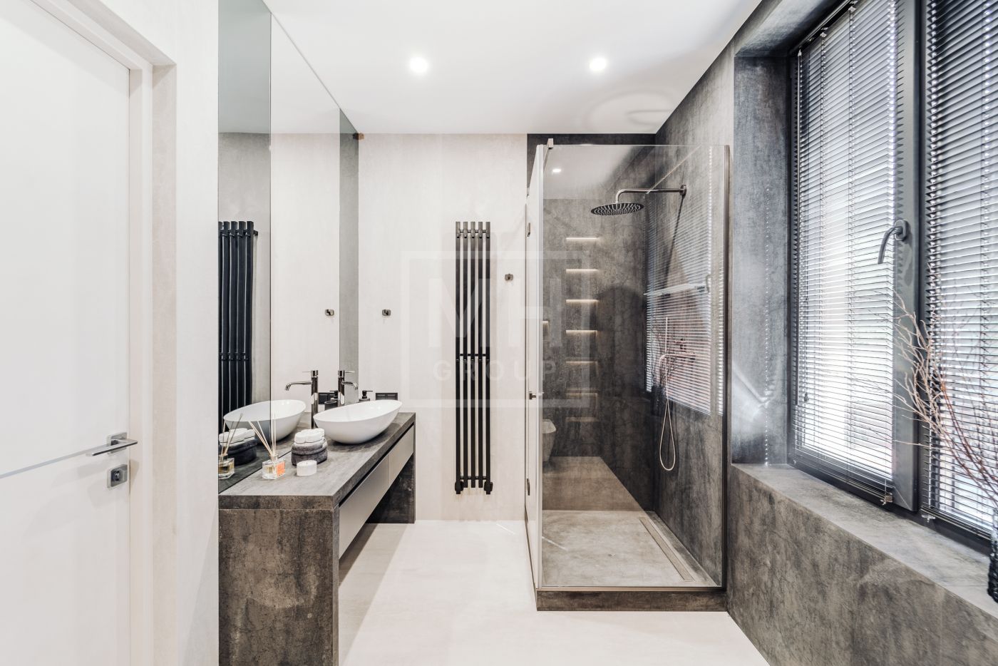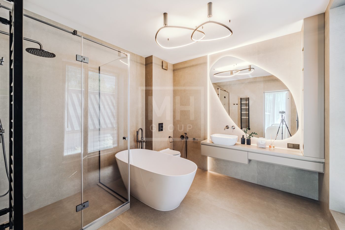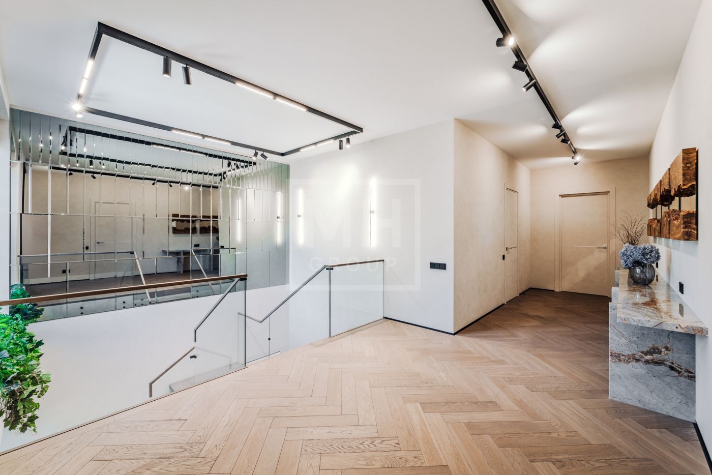 Новый современный дом под ключ с мебелью на участке 12 соток в поселке Загорье. Планировкой предусмотрено до 4 спален. На участке помимо основного дома и просторной беседки и навеса под автомобили предусмотрен небольшой дом для персонала со всеми необходимыми удобствами. В настоящее время в доме заканчивается авторский ремонт с применением дорогостоящих отделочных материалов.