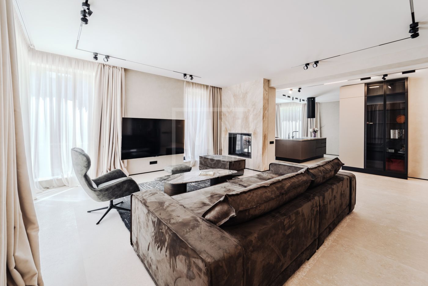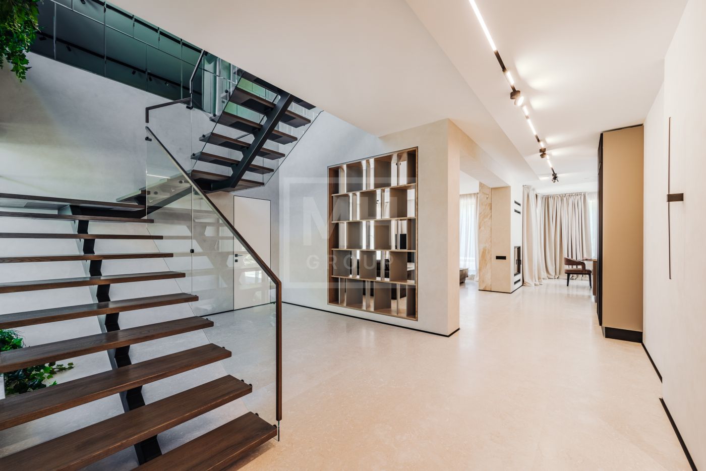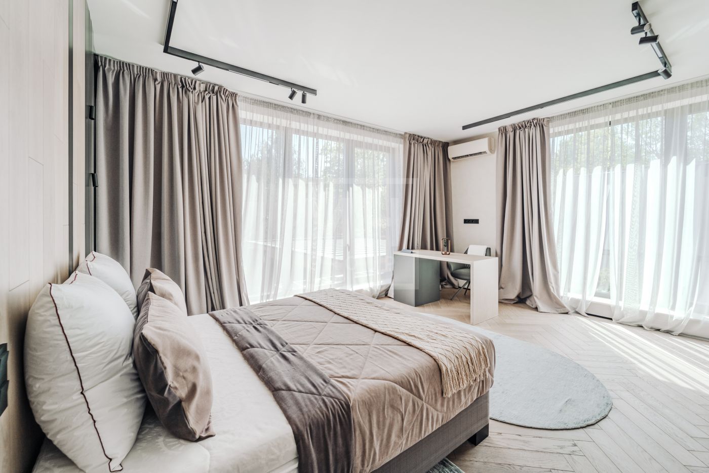 Новый современный дом под ключ с мебелью на участке 12 соток в поселке Загорье. Планировкой предусмотрено до 4 спален. На участке помимо основного дома и просторной беседки и навеса под автомобили предусмотрен небольшой дом для персонала со всеми необходимыми удобствами. В настоящее время в доме заканчивается авторский ремонт с применением дорогостоящих отделочных материалов.