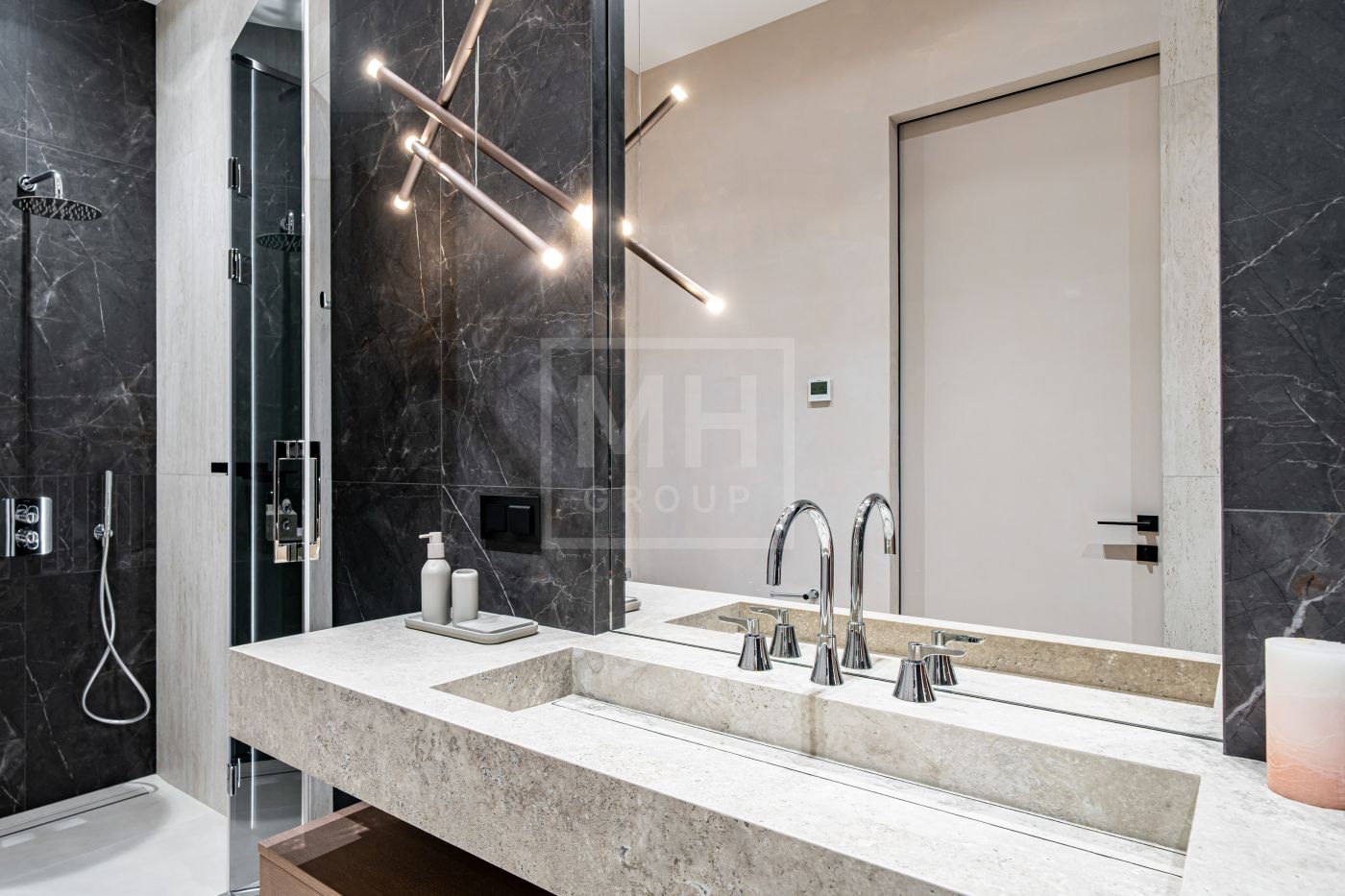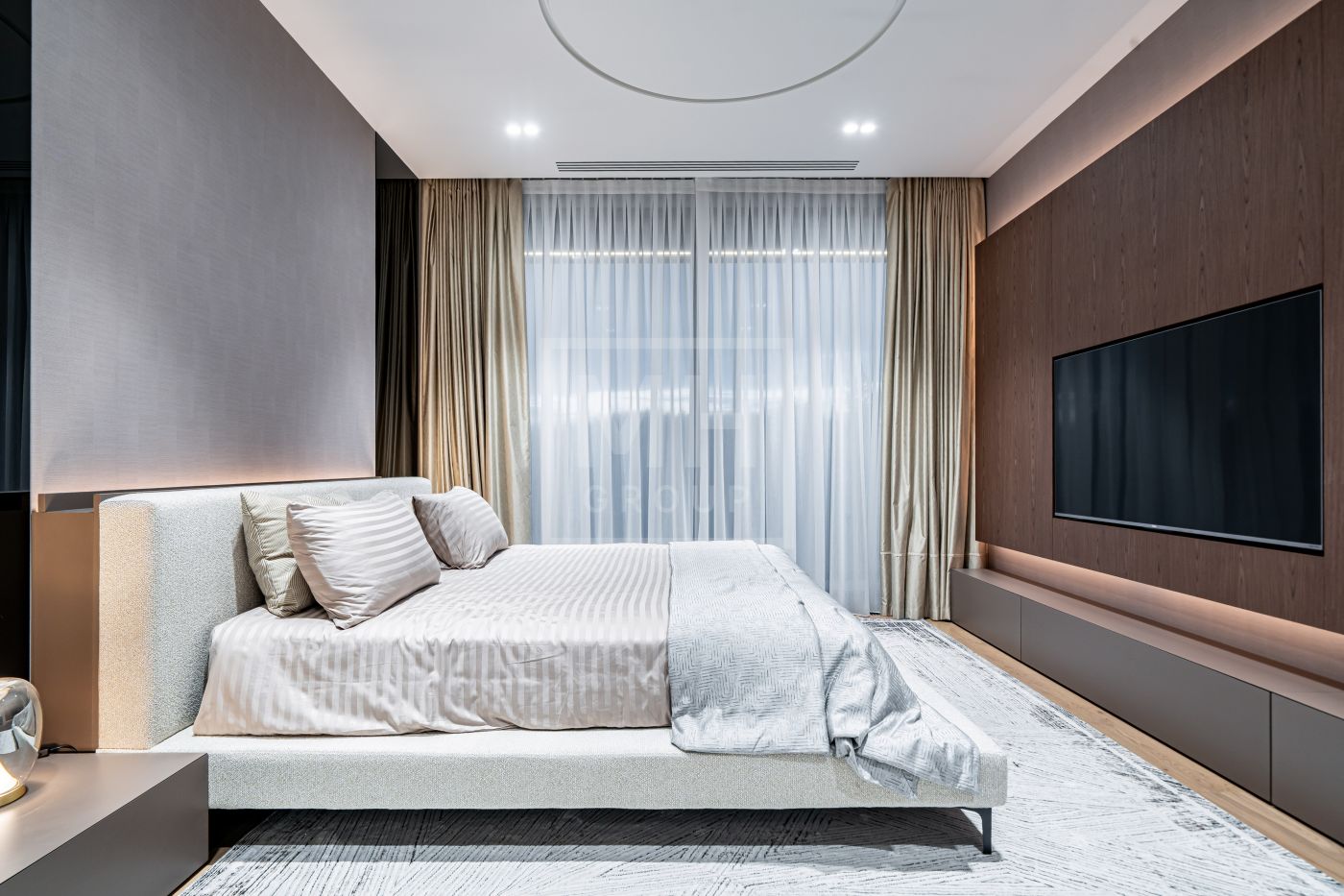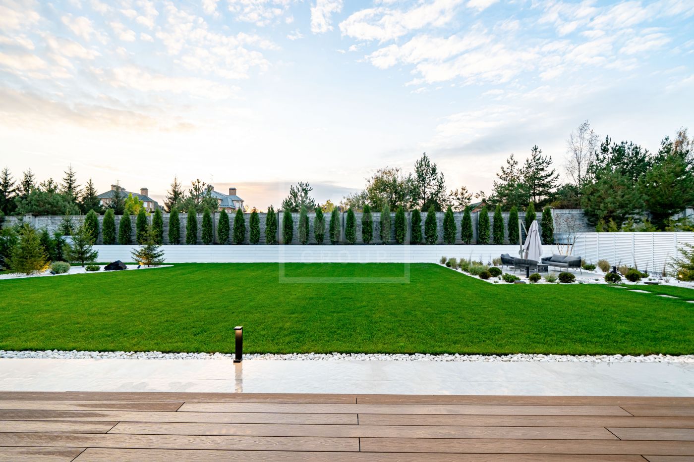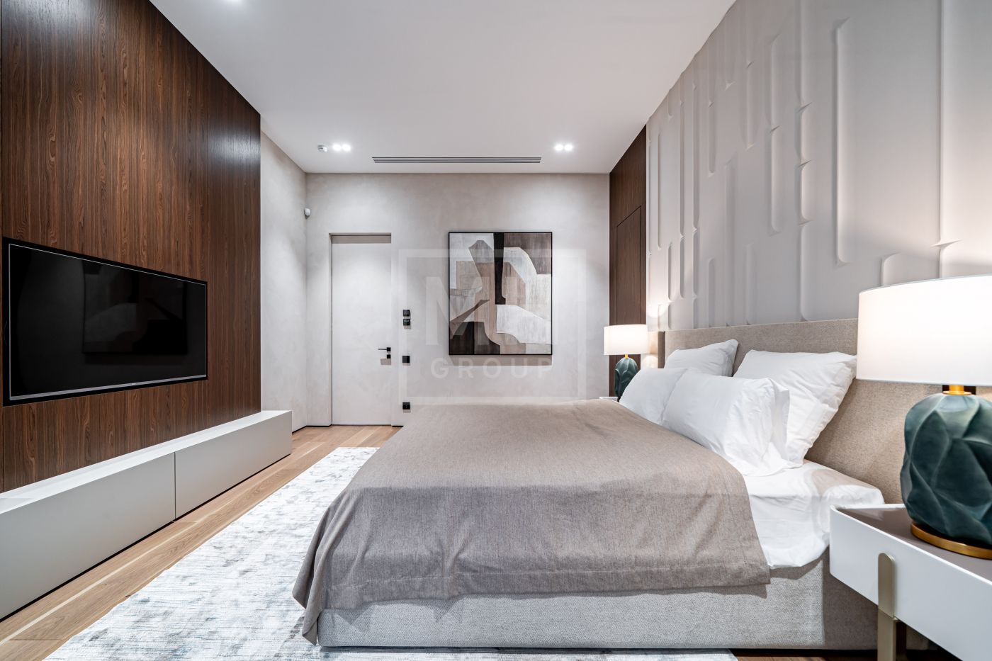 Все дома в поселке построены в едином стиле по мотивам архитектурных проектов Ф.Л. Райта. В строительстве и отделке использовались современные материалы. Для остекления были выбраны премиальные окна Schuco. На первом этаже располагается большая кухня гостиная со вторым светом, мастер спальня с гардеробной и своим санузлом, большой гараж на два машиноместа и большой навес на две машины. На втором этаже мастер спальня с гардеробной и ванной комнатой, две спальни со своими гардеробными и большой ванной комнатой. Дом очень нежный и светлый, цветовая гамма подобрана с учетом всех современных тенденция включая отделку, мебель и предметы интерьера.