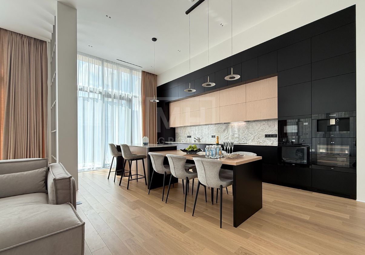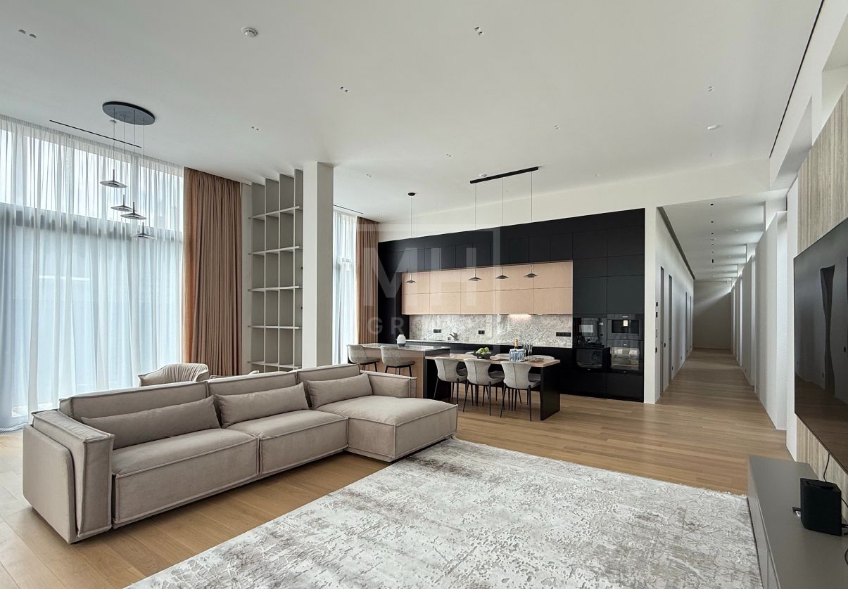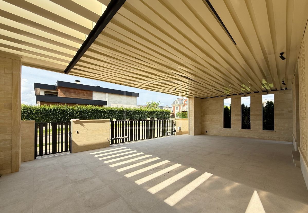 Этаж 1: Прихожая, гардеробная, кабинет/спальня, постирочная, с/у, 2 спальни с c/у и гардеробными, мастер спальня с 2-мя гардеробными и с/у, рабочая кухня со своим входом с улицы, кухня-столовая-гостиная с выходом на террасу, котельная, навес под автомобили