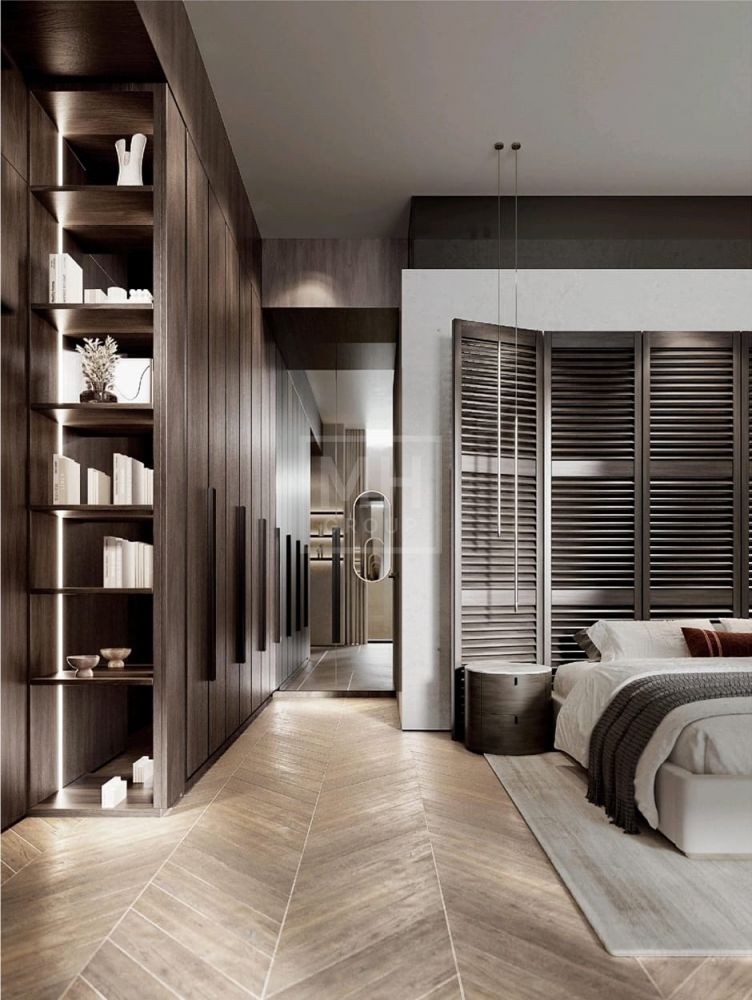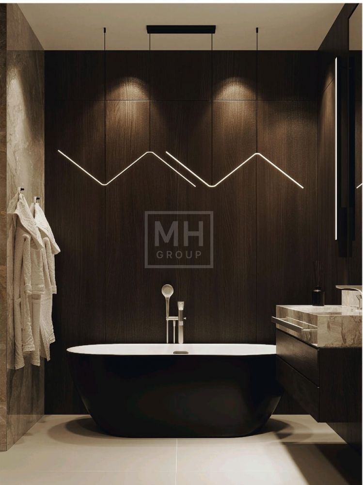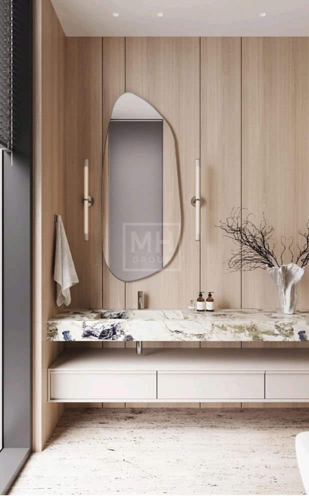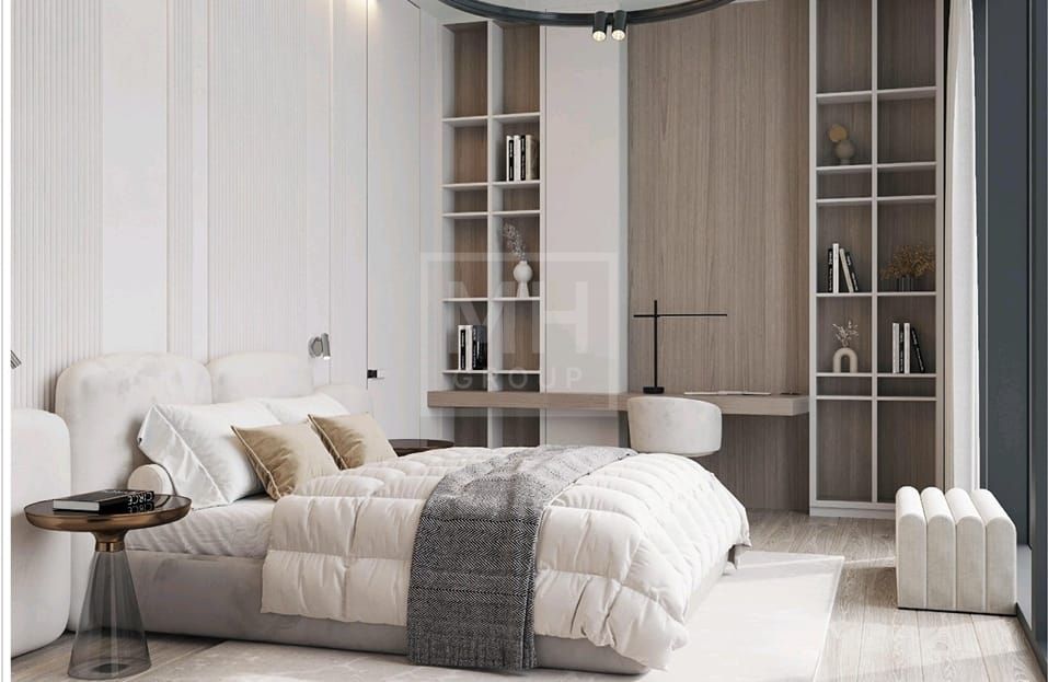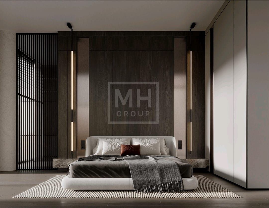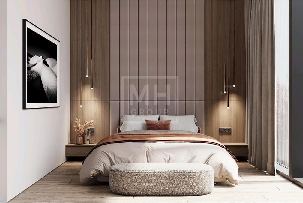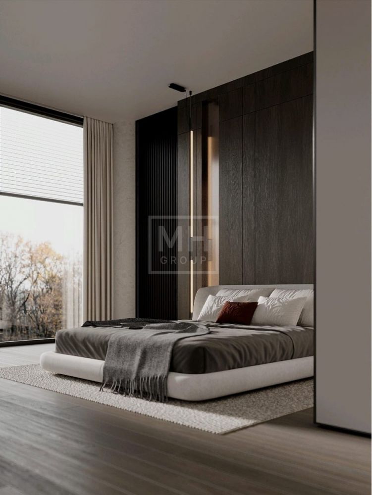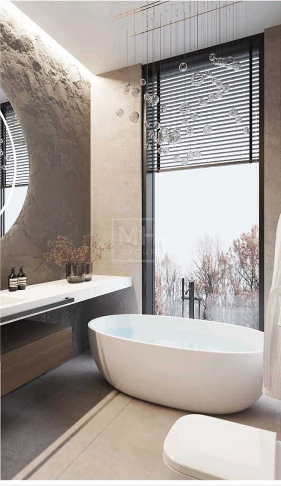 На втором этаже просторный мастер-блок с ванной комнатой, отдельной гардеробной и балконом и две детские спальни с общим санузлом.