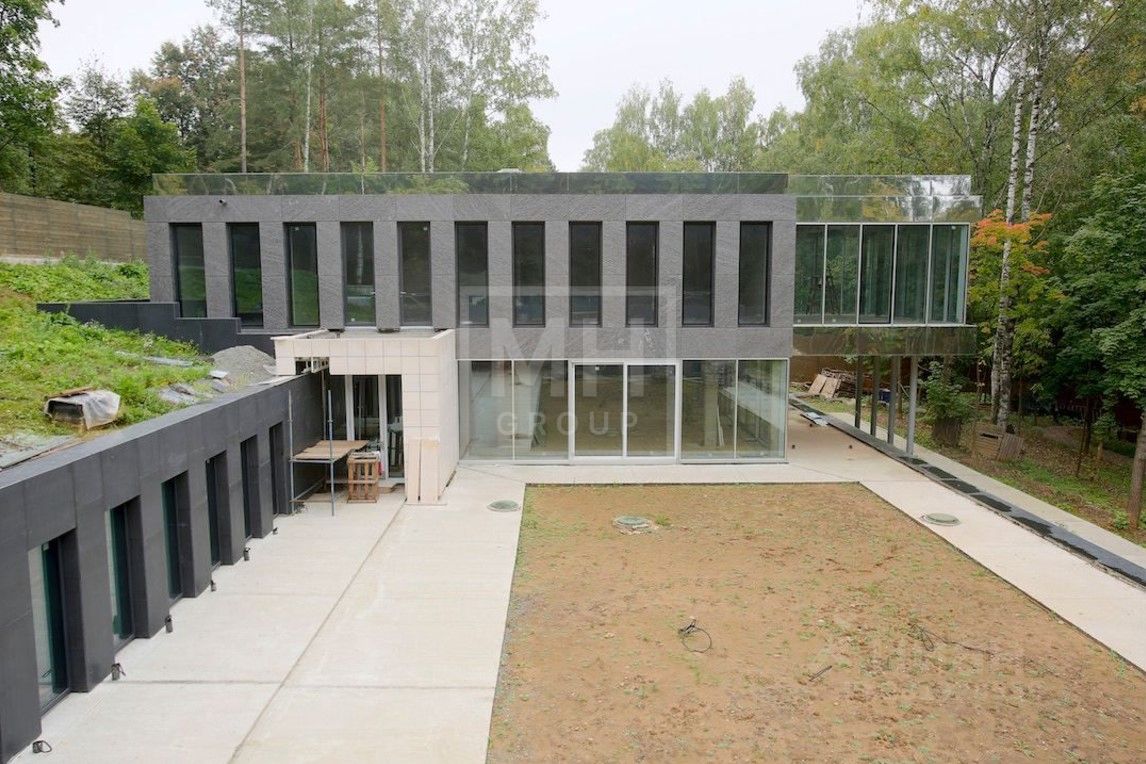 Стильный современный дом под отделку, в поселке Горки-6, расположен на живописном склоне и имеет архитектуру, максимально приближающую его к природе.Благодаря цветовому решению и адаптированности к рельефу, дом буквально сливается со склоном.