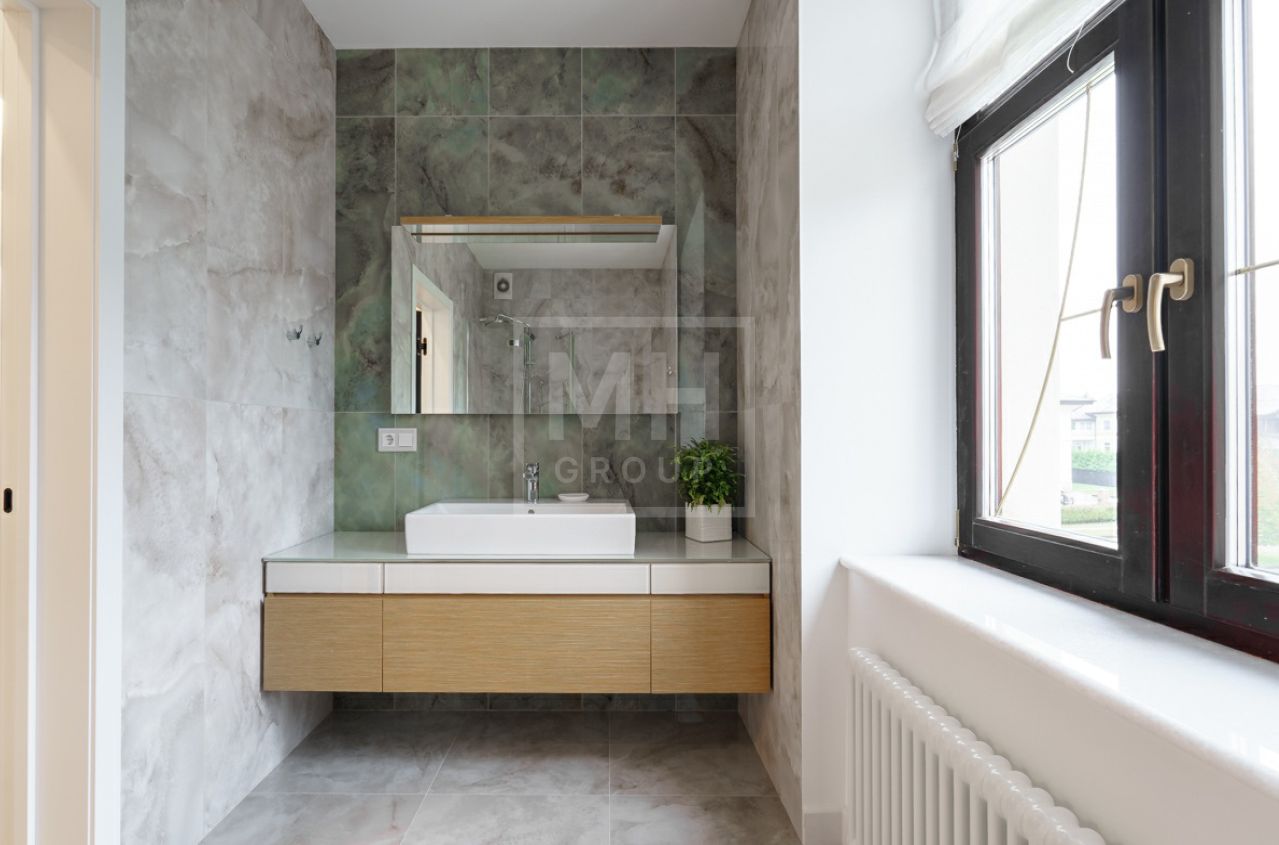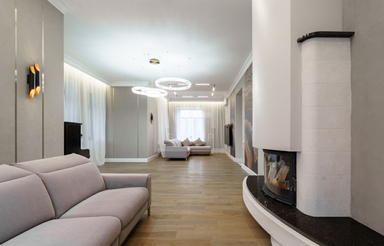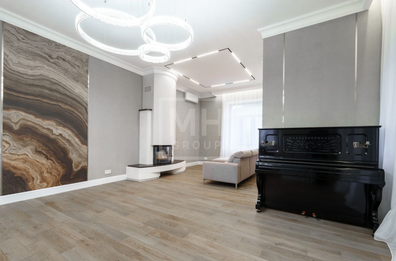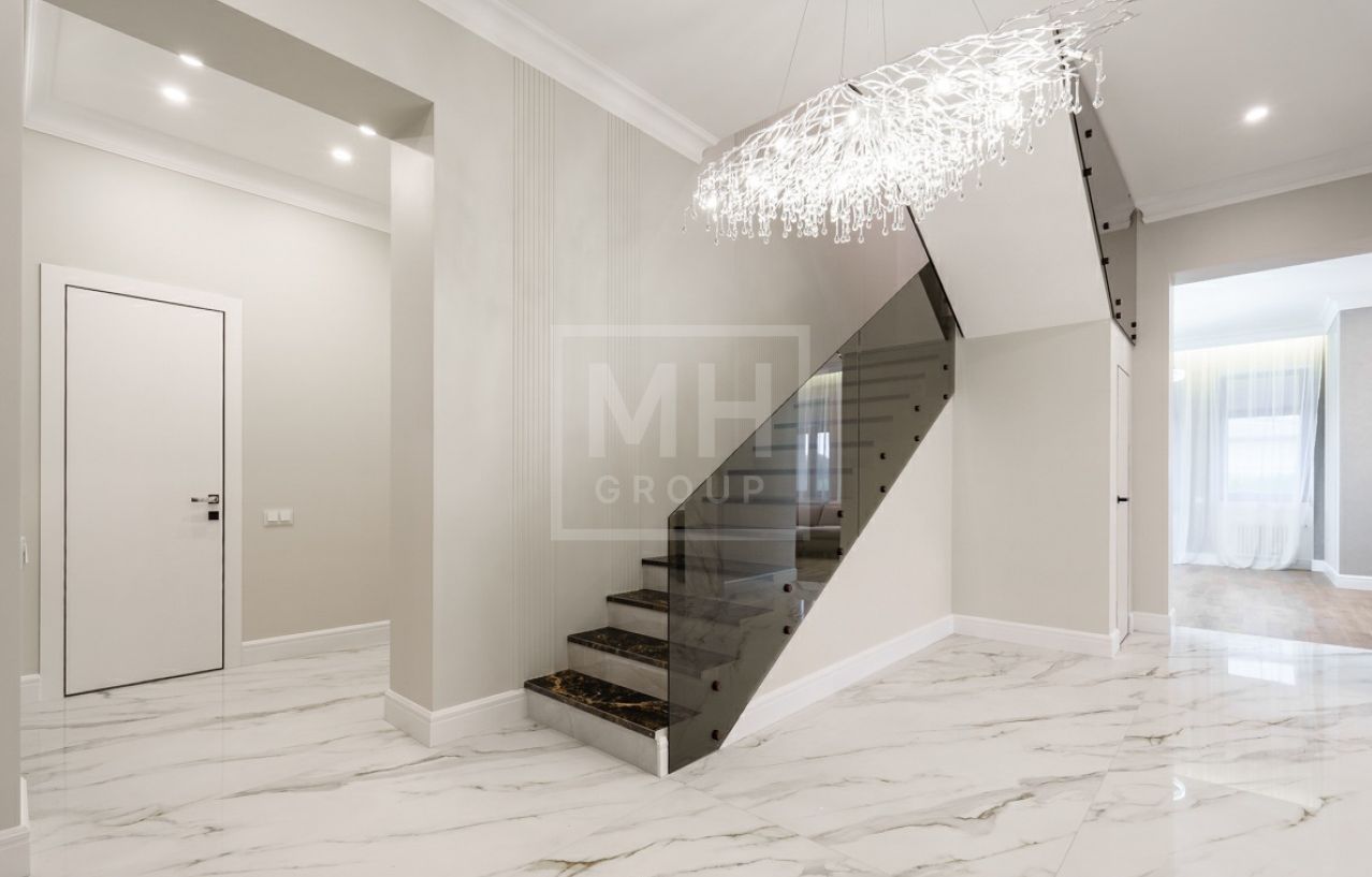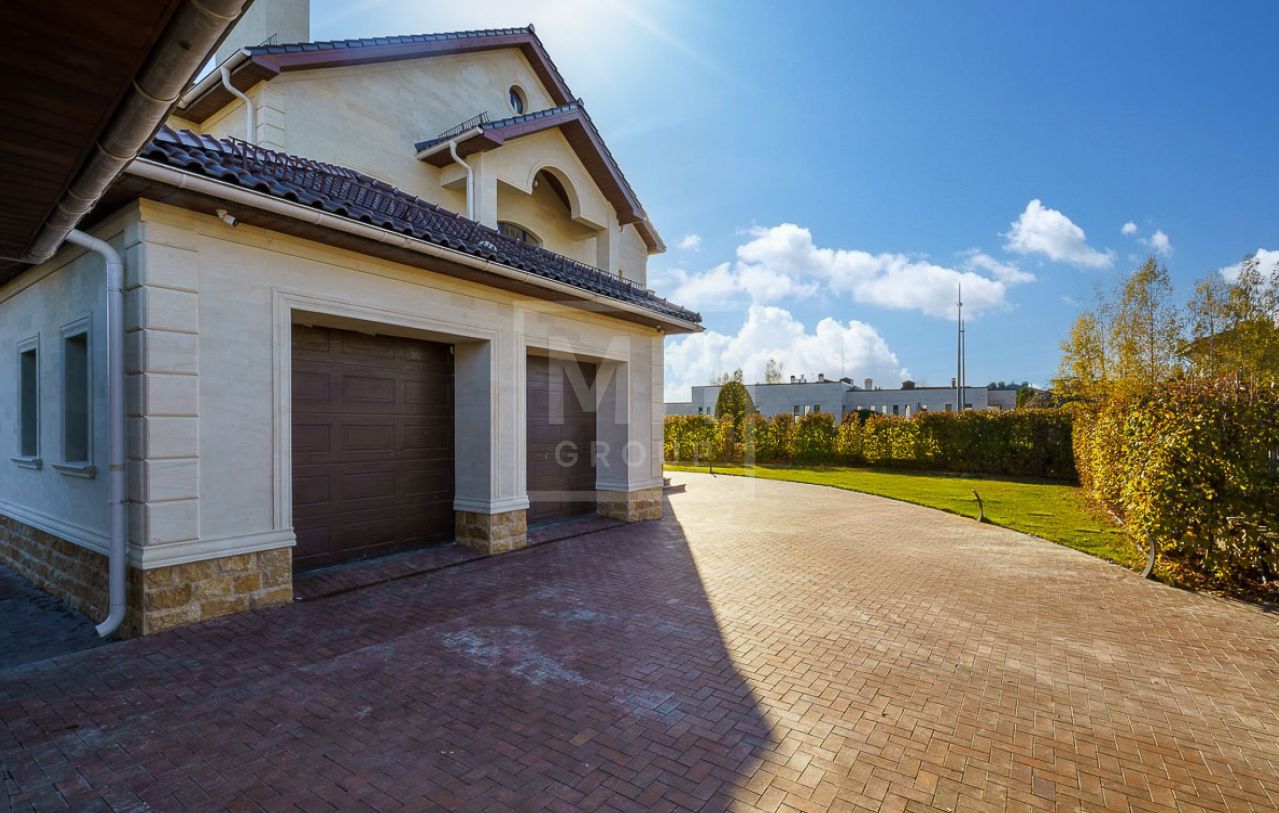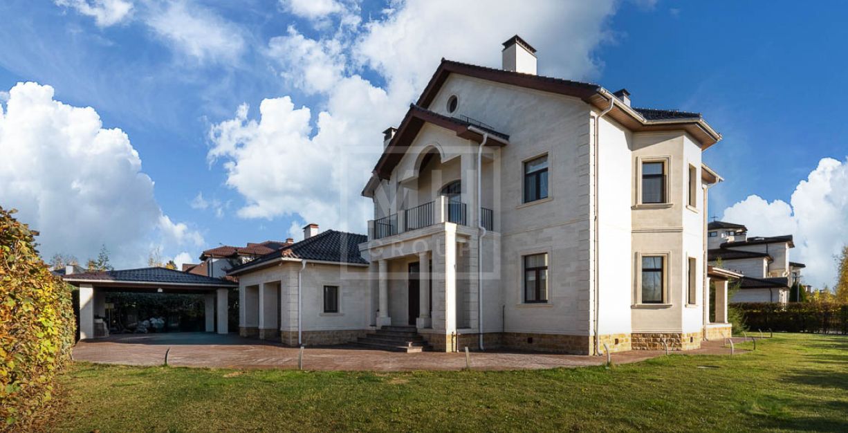 Загородный дом площадью 450м² на участке 18 соток в охраняемом КП "Монтевиль". Планировкой дома предусмотрены 3 полноценные спальни со своими гардеробными и санузлами, кабинет, просторная кухня-столовая, гостиная с камином и выходом на крытую террасу. В контуре дома предусмотрены гараж на 2 машины и котельная с отдельным входом. Рядом расположен навес на 2 машины и отдельно стоящая баня с купелью и комнатой отдыха. Фасад дома выполнен из натурального камня. В отделке дома использовались высококачественные материалы российских и европейских брендов.