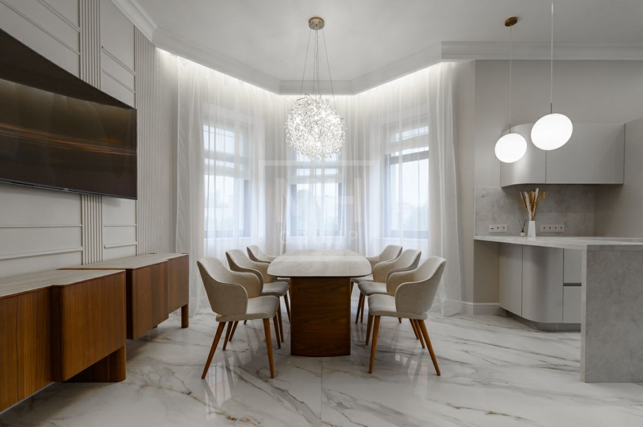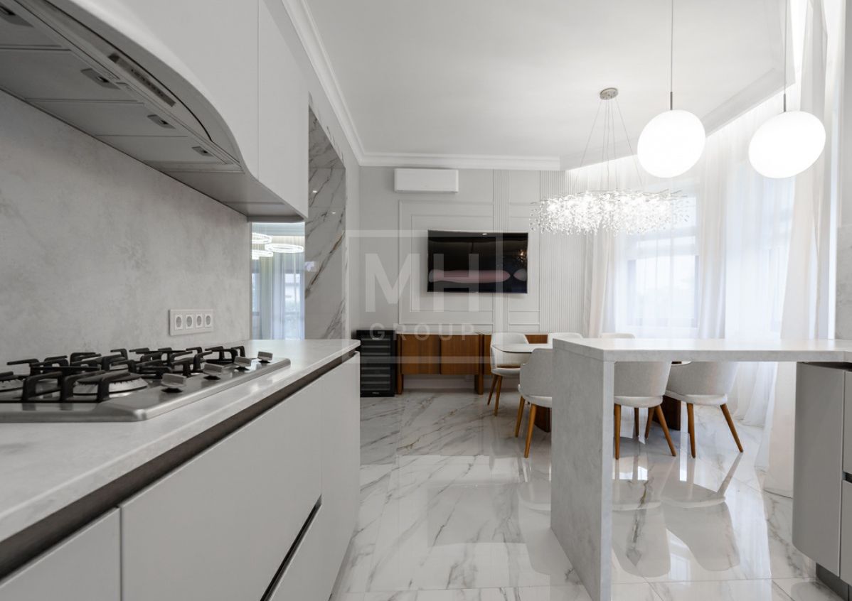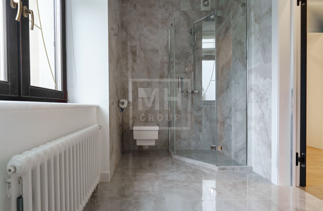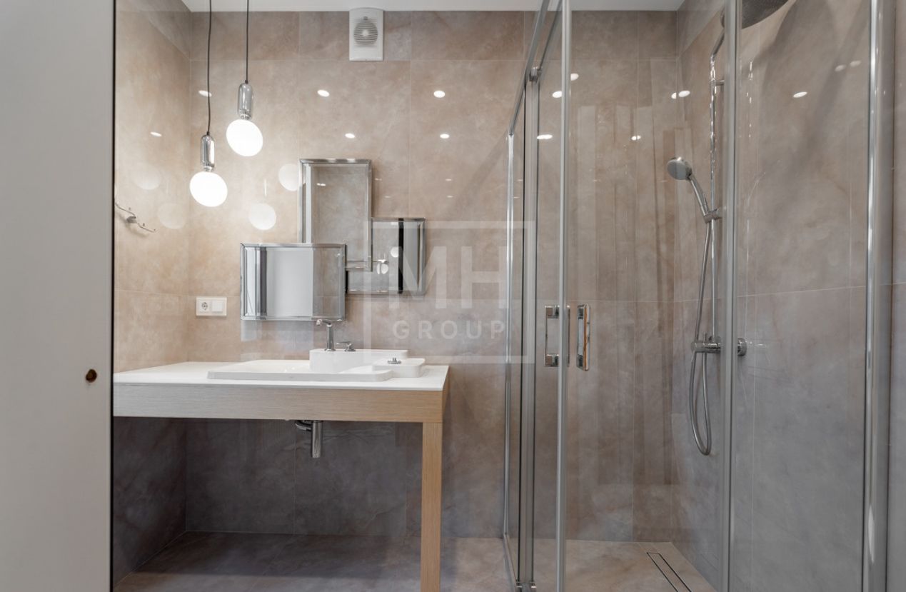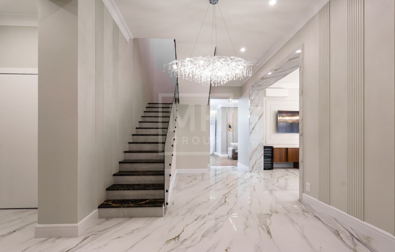 Загородный дом площадью 450м² на участке 18 соток в охраняемом КП "Монтевиль". Планировкой дома предусмотрены 3 полноценные спальни со своими гардеробными и санузлами, кабинет, просторная кухня-столовая, гостиная с камином и выходом на крытую террасу. В контуре дома предусмотрены гараж на 2 машины и котельная с отдельным входом. Рядом расположен навес на 2 машины и отдельно стоящая баня с купелью и комнатой отдыха. Фасад дома выполнен из натурального камня. В отделке дома использовались высококачественные материалы российских и европейских брендов.