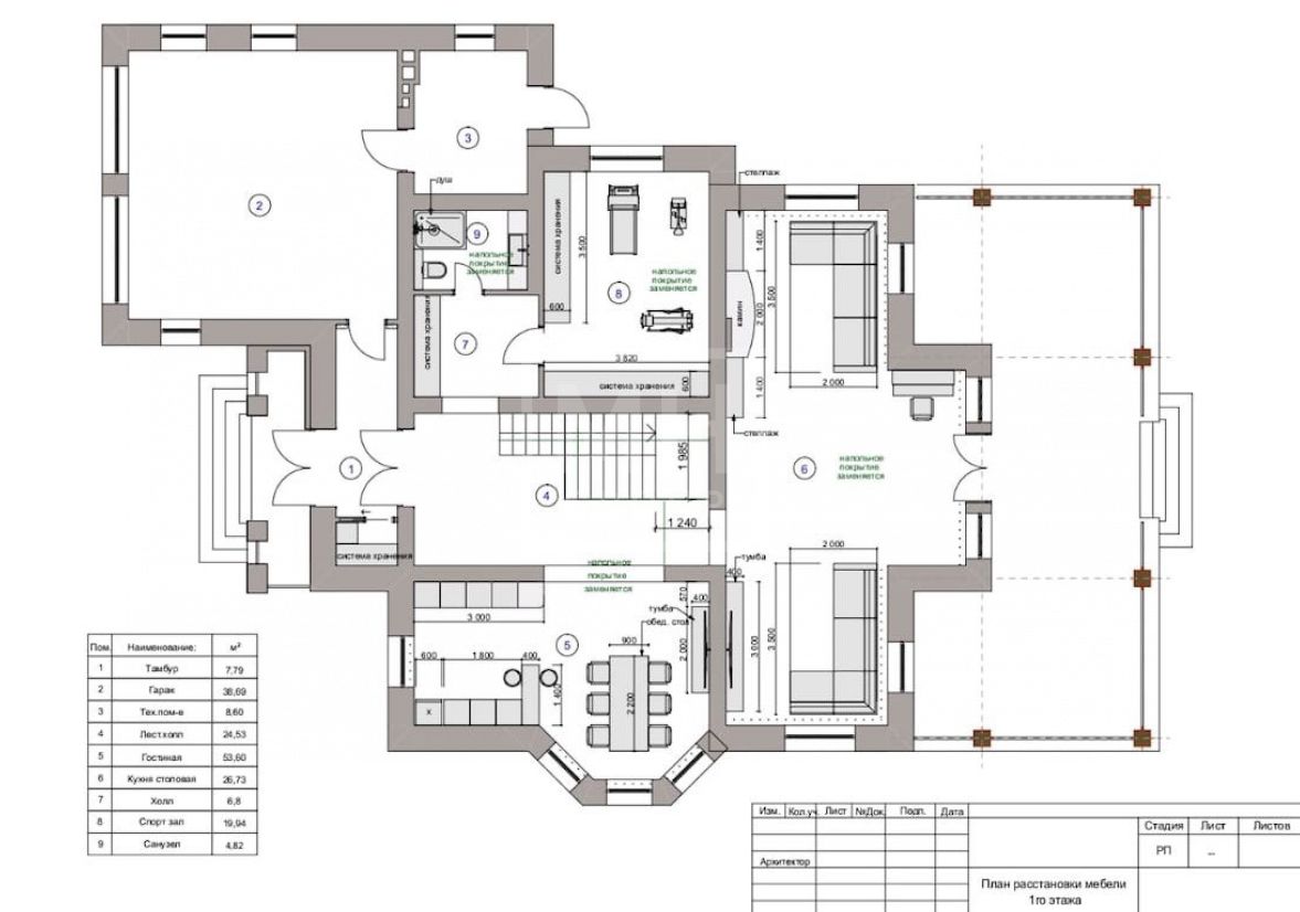 Этаж 1: Прихожая, гардеробная, с/у, кухня-столовая, гостиная, кабинет, крытая терраса, котельная, гараж