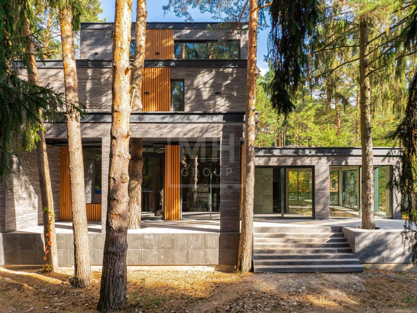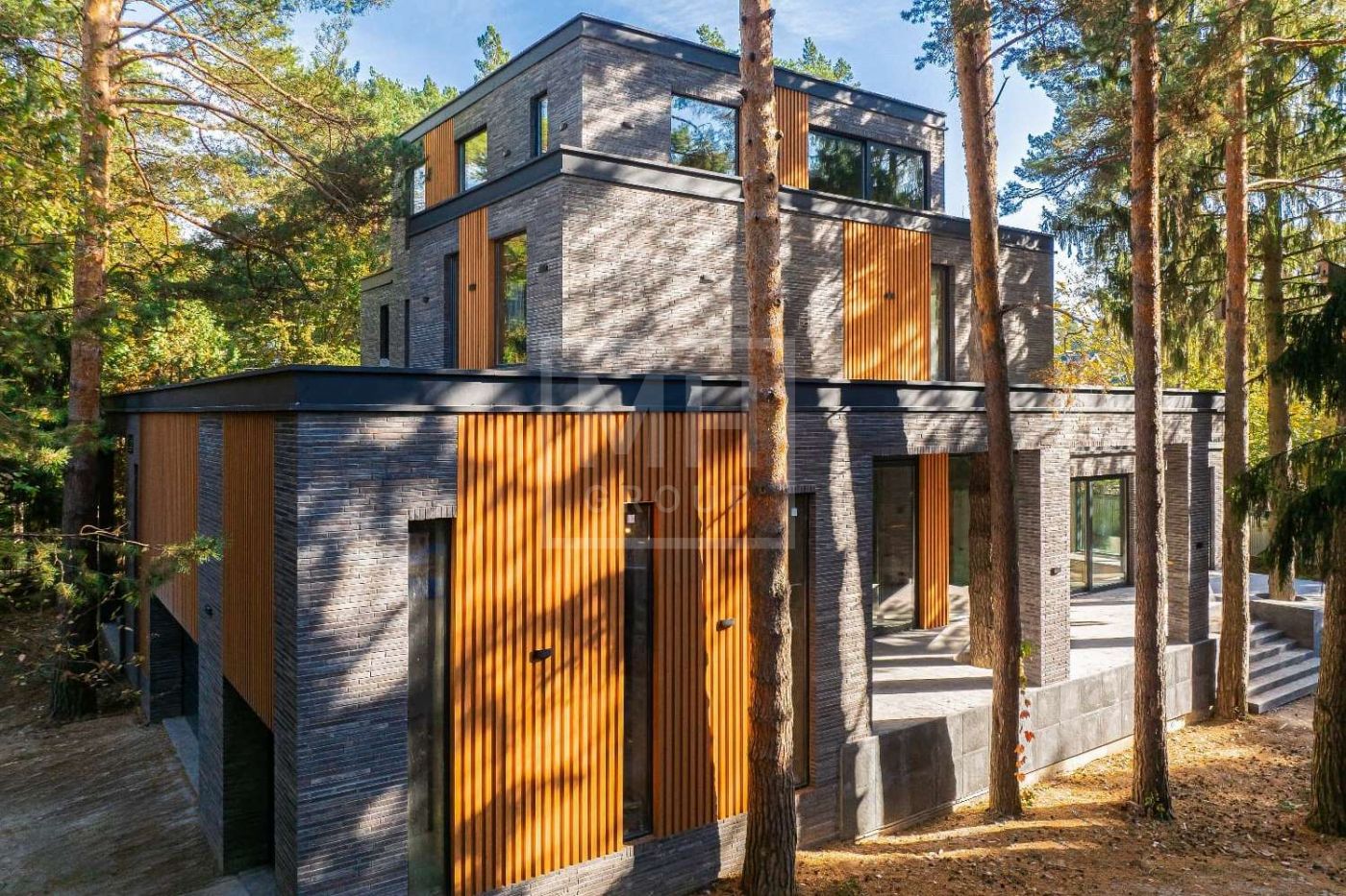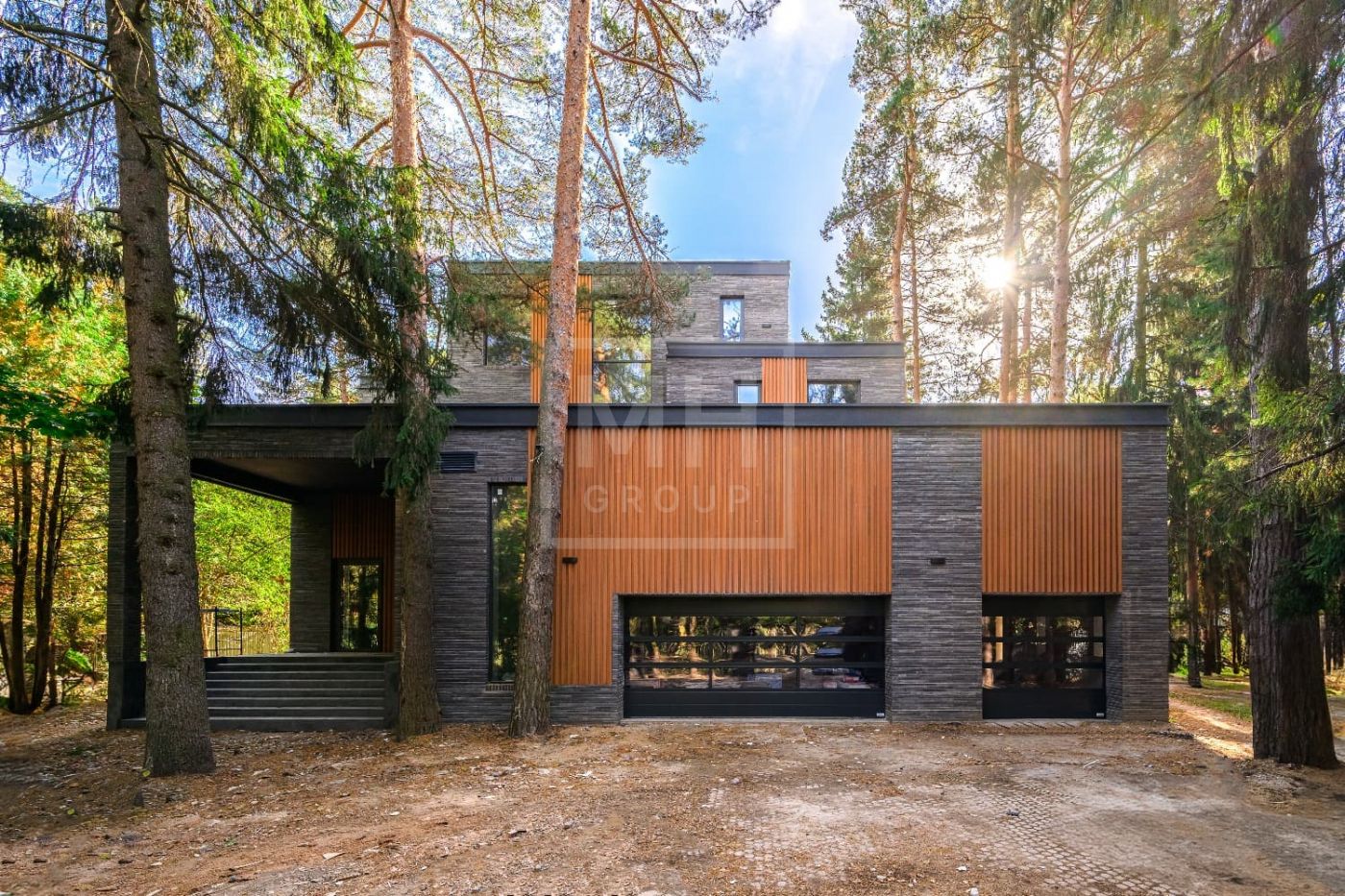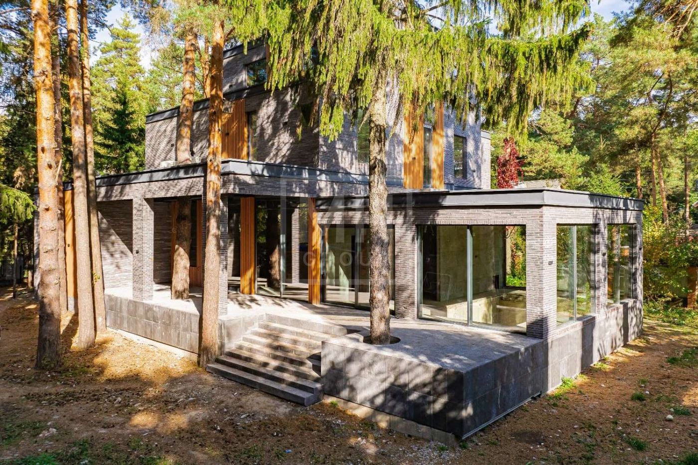 Современный дом с бассейном и лифтом в сосновом бору