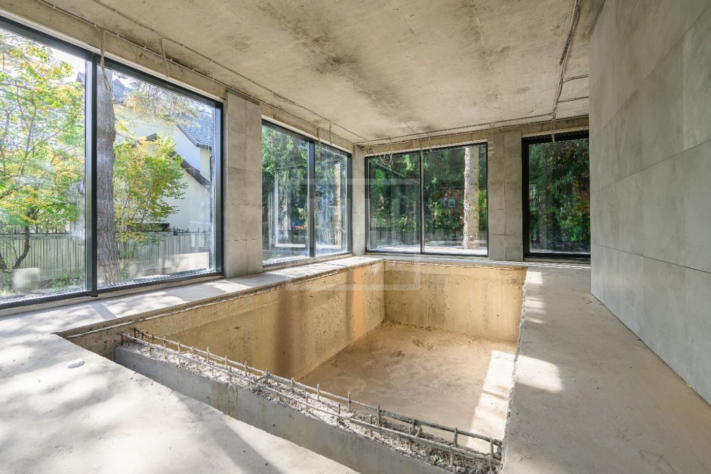 Особенности дома: высокие потолки (4 м на первом этаже), панорамные окна (3,7 м на первом этаже), плоские крыши, лифт на все уровни, приточно-вытяжная вентиляция, бассейн, террасы с отличными видами, сделана подсветка фасада.