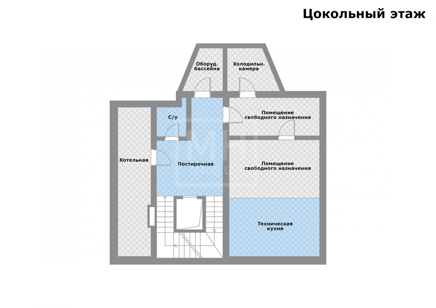 Цоколь: помещение для оборудования бассейна, постирочная, техническая кухня, холодильная комната, котельная, с/у.