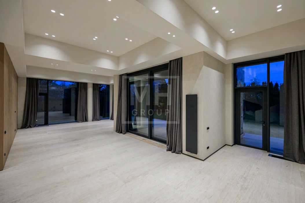 Современный дом 660 кв.м на участке 12,4 сотки в 11 км от МКАД по Рублево-Успенскому шоссе в закрытом коттеджном поселке “Усово Плюс”.Особенности дома: высокие потолки (4,2 м на 1-ом этаже и 3,1 м на втором), лестничный атриум высотой 7,5 м, панорамные окна с закаленным стеклом толщиной 10 мм, просторная терраса с барбекю-зоной, лифт. В доме: 4 спальни с ванными и гардеробными, гостиная-столовая, кухня, хобби-комната 50 кв.м, двухуровневая спа-зона с хаммамом, сауной и джакузи, гараж на 2 м/м с зарядкой для электроавтомобиля и помещением для водителя, котельная, отдельный блок персонала с профессиональной кухней в цоколе.