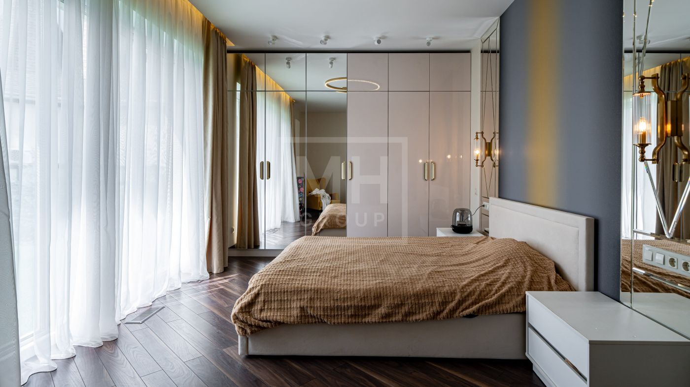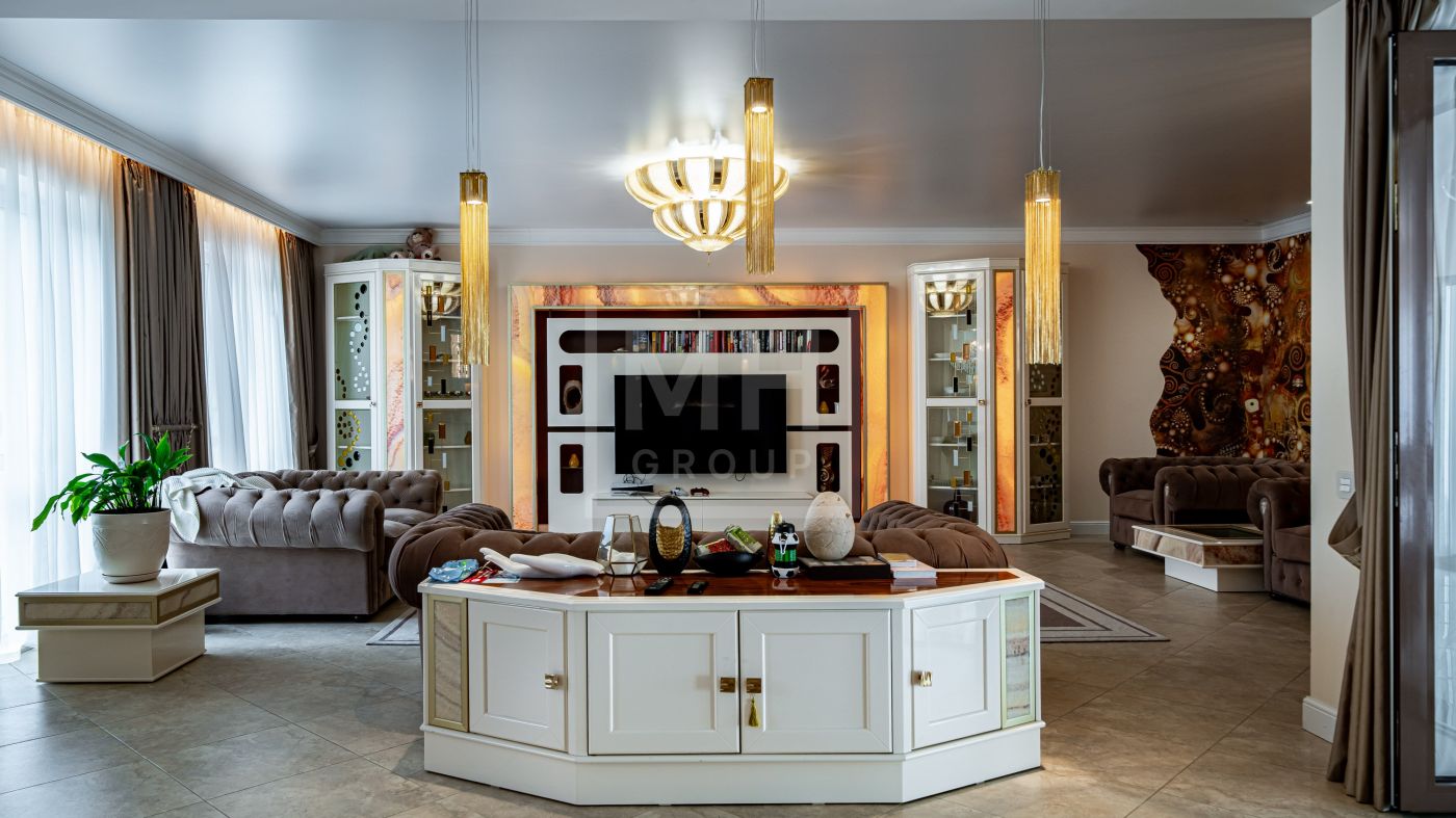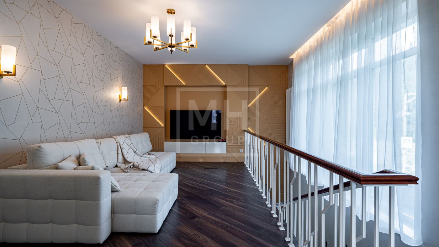Красивый дом с дизайнерским ремонтом, для большой семьи. В интерьере использованы качественные материалы, природных оттенков, и мебель премиальных марок. Дом расположен на видовом участке, на террасе второго этаже расположена джакузи, для созерцания красивых закатов по вечерам. Высокие потолки, панорамные окна делают дом максимально светлым и просторным.