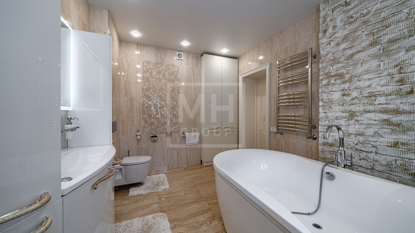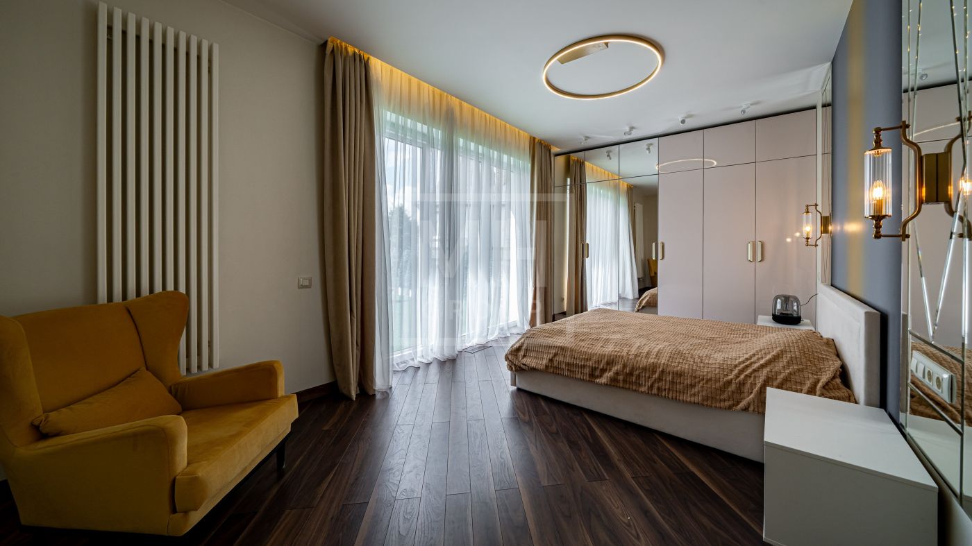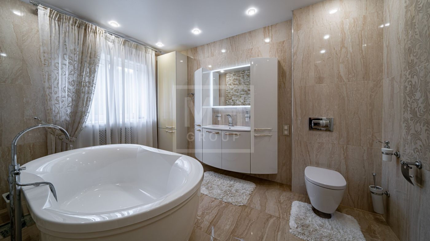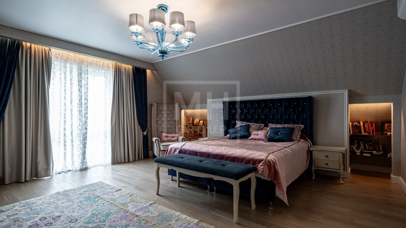 Красивый дом с дизайнерским ремонтом, для большой семьи. В интерьере использованы качественные материалы, природных оттенков, и мебель премиальных марок. Дом расположен на видовом участке, на террасе второго этаже расположена джакузи, для созерцания красивых закатов по вечерам. Высокие потолки, панорамные окна делают дом максимально светлым и просторным.