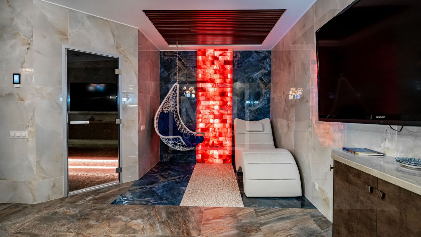 Этаж 2: Холл, мастер спальня с двумя гардеробными и санузлом, с выходом на террасу и джакузи. 3 спальни гардеробная и санузел.
