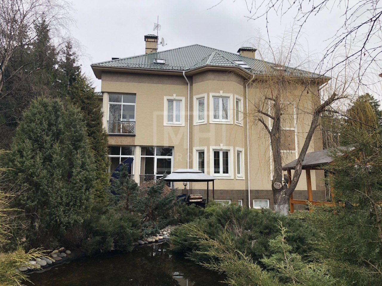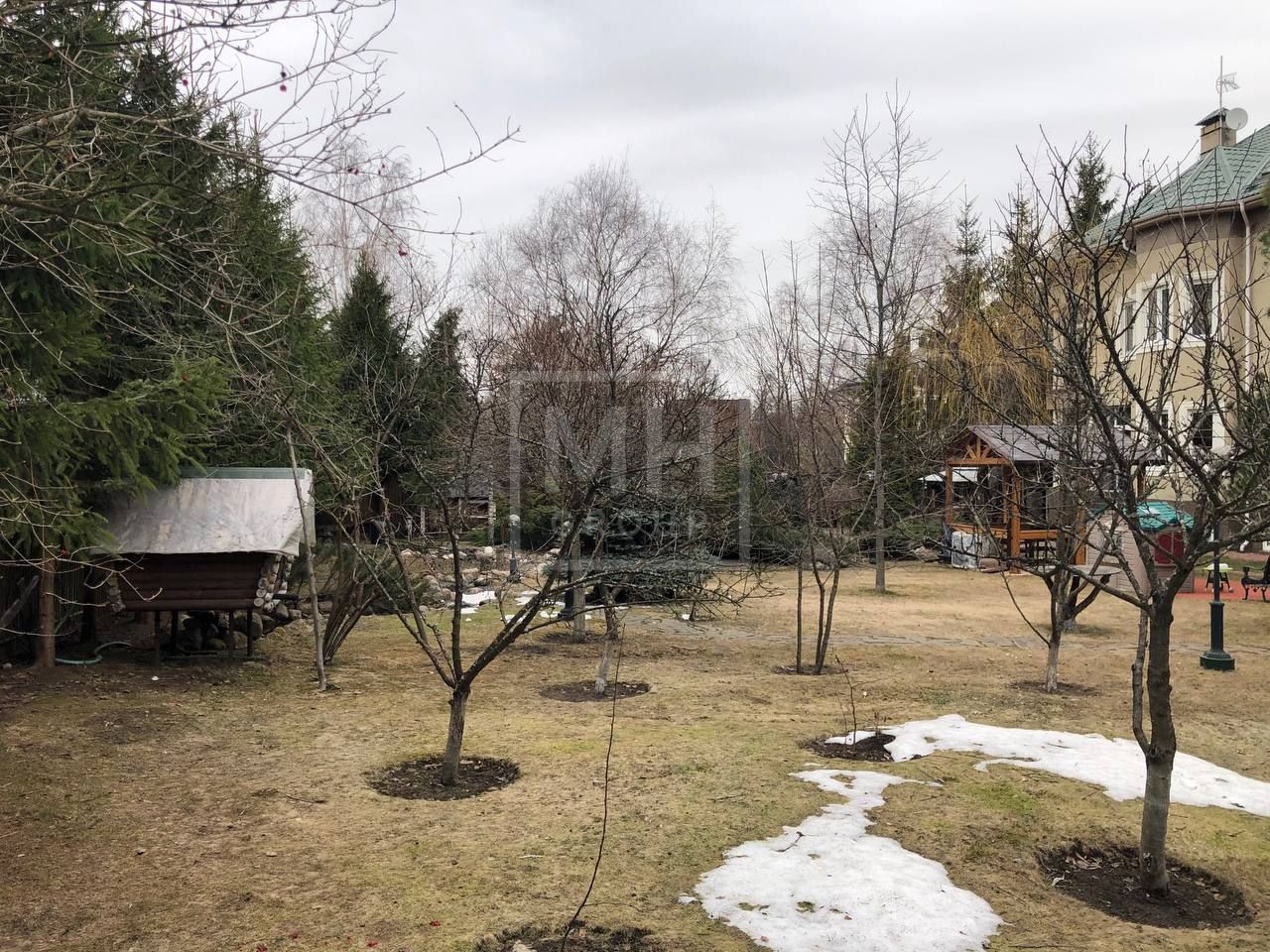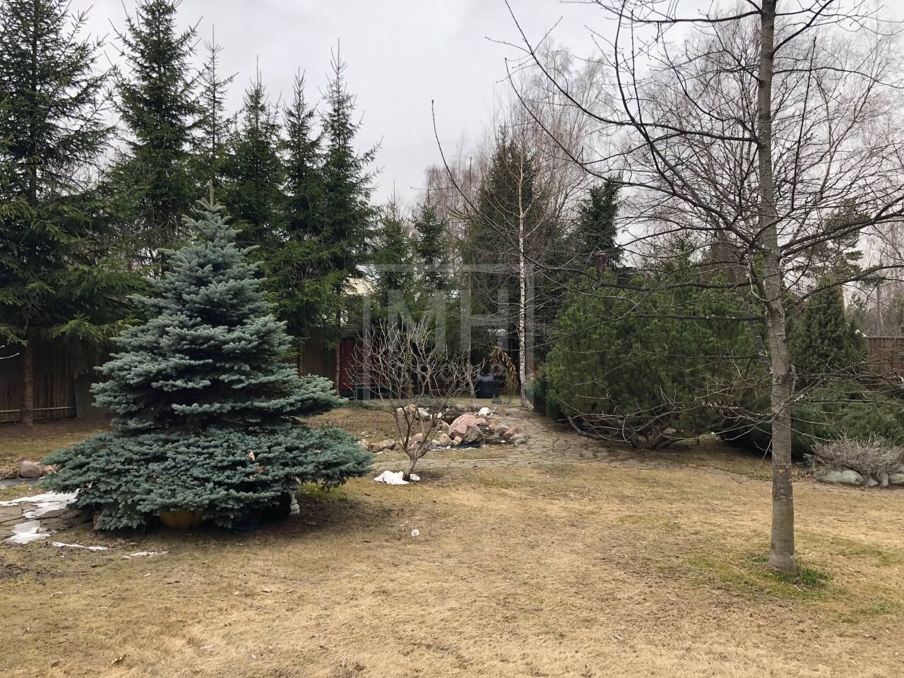Просторный, красивый участок, площадью 33 сотки, имеет ландшафтное оформление. На нем высажены плодовые, хвойные и лиственные деревья, кустарники, разбит декоративный пруд и установлены изящные фонари.