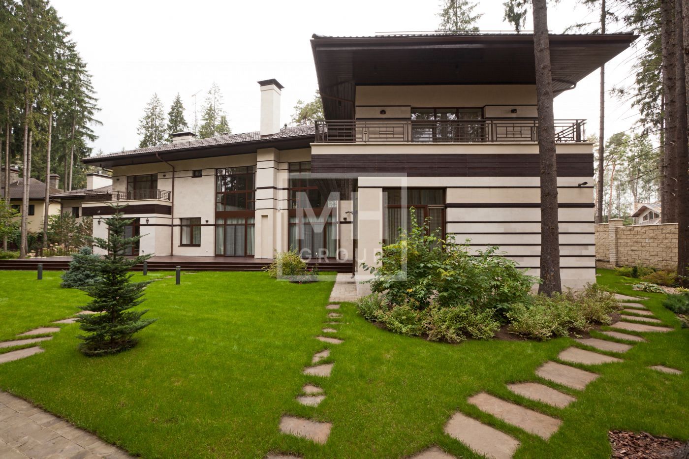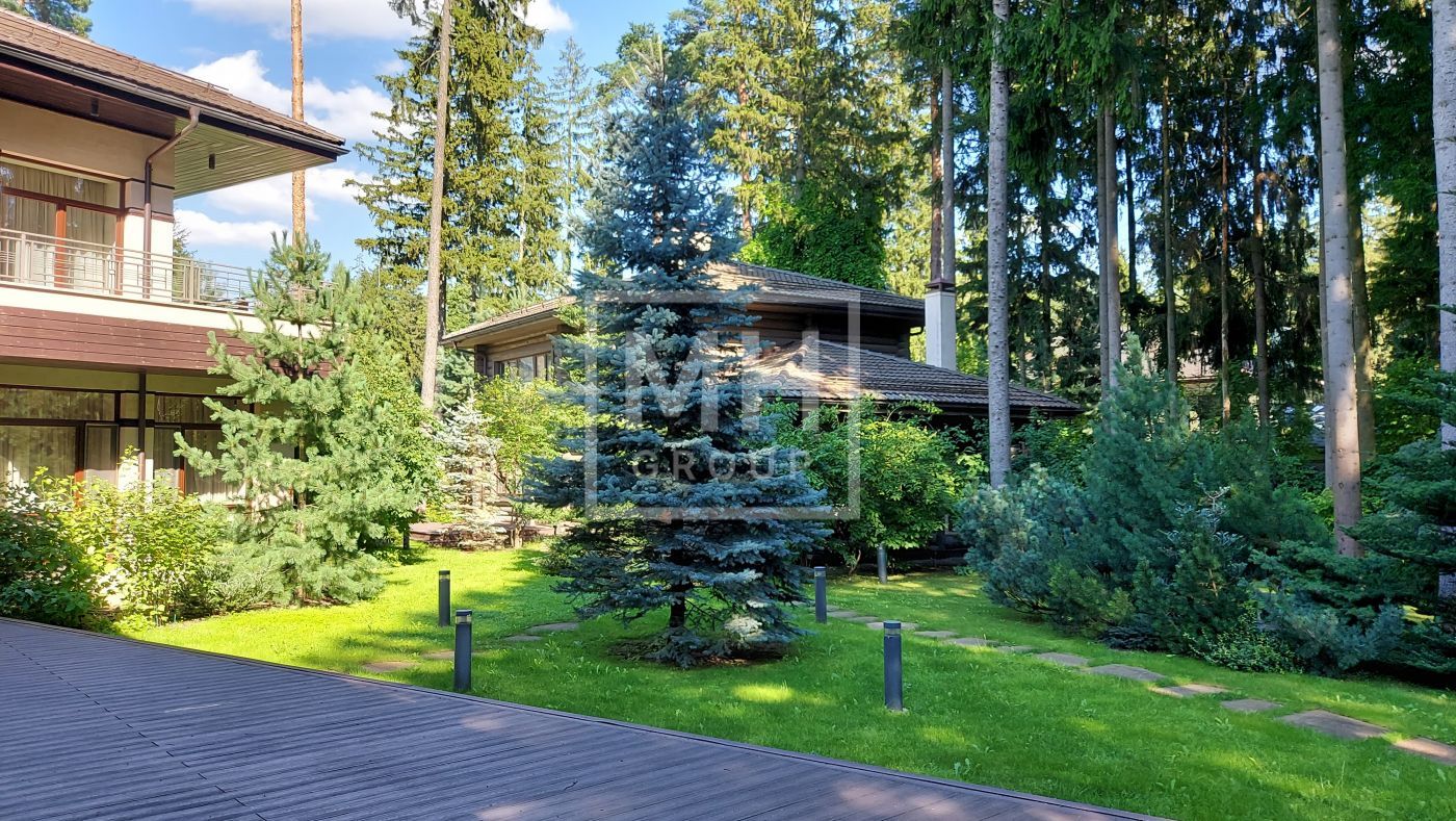 К продаже предлагается шикарный дом в современном архитектурном стиле площадью 850 кв.м., с панорамным остеклением, расположенный на лесном участке с соснами и елями. Высокое качество строительства, строили для себя. Использовались самые современные технологии. Очень удобная планировка. Высота потолков в гостиной 7м. Эксклюзивная отделка. Мебель из США и Италии: Baker, Giorgetti, Poltrona Frau, Molteni и др., кухня Bulthaup, оборудование Sub-Zero, Wolf. Светильники из Италии. Весь функционал продуман до мелочей. На участке кроме основного дома, есть отдельно стоящий деревянный дом в 2 уровня площадью 220 кв.м., также с качественным ремонтом и мебелью. В нем 1 этаж: кухня, комната отдыха, с/у, бильярдная, парная с печью на дровах, терраса с барбекю; 2 этаж: бильярд, бар, мягкая зона с ТВ, с/у, спальни. На въезде находится гараж 140 кв.м., с помещения для обслуживающего персонала.Cтроения размещены на участке таким образом, что из гостиной, спален и большой террасы открывается вид на приватную часть участка. Ландшафтный дизайн дополнил природный колорит участка, для создания акцентов были высажены хвойные, лиственные деревья и кустарники, разбиты миксбордеры непрерывного цветения. В мощении вокруг дома и гаража использовалась гранитная тротуарная плитка, на участке пошаговое дорожно-тропиночное покрытие натуральным камнем. Сделано освещение, проложен автополив.