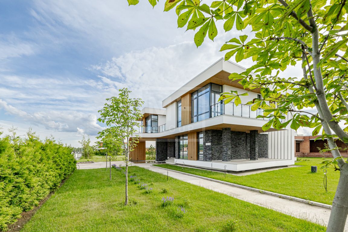 Предлагается новый дом с высокой готовностью отделки в коттеджем поселке "Райт Вилладж", в шаговой доступности до ресторана, детского сада и продуктового магазина.В отделке фасада в стиле Райта - натуральное дерево (лиственница) и штукатурка.