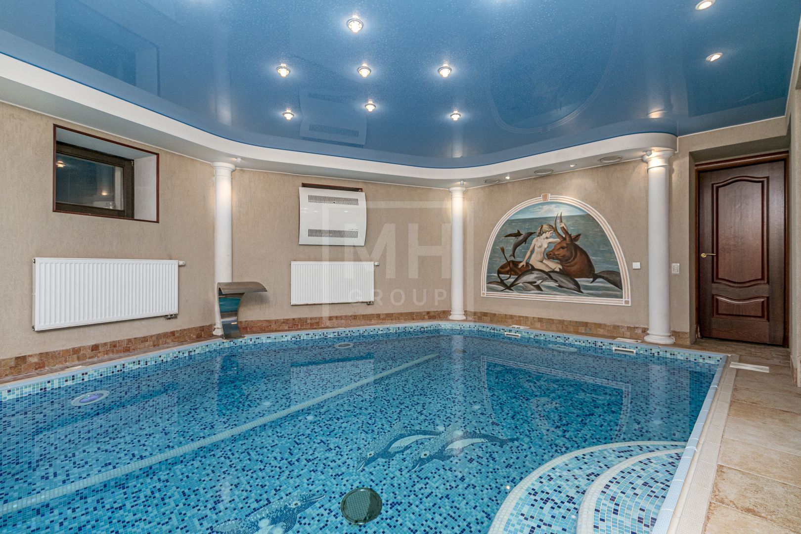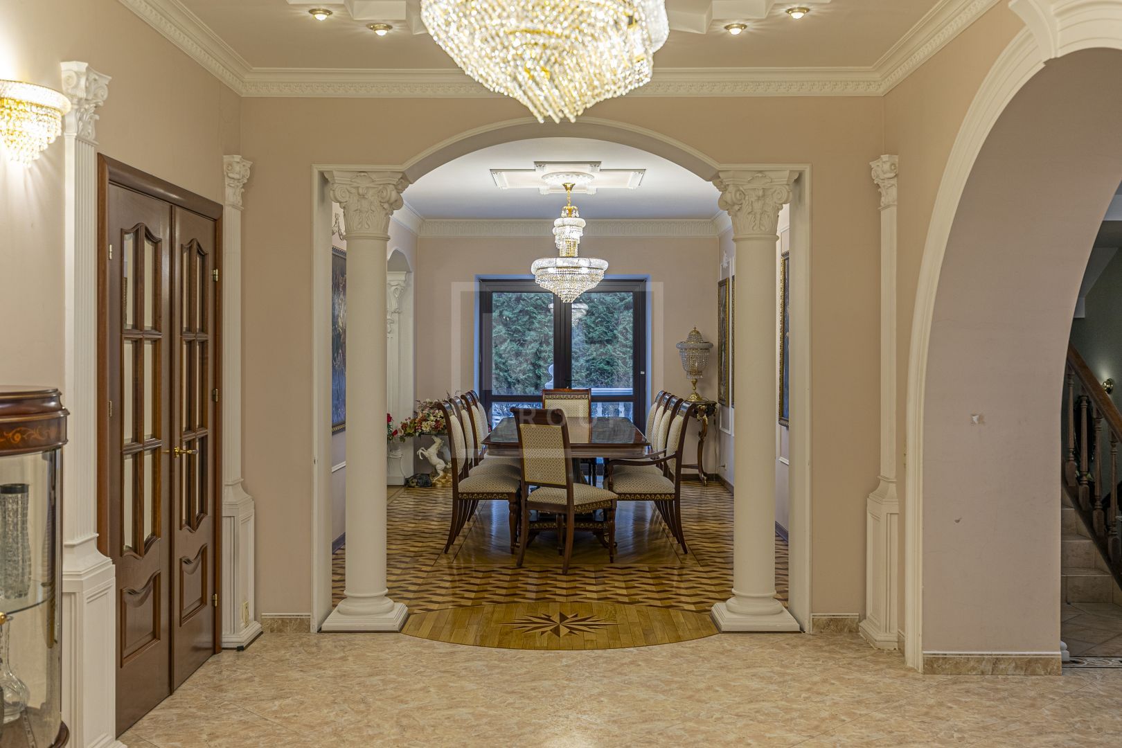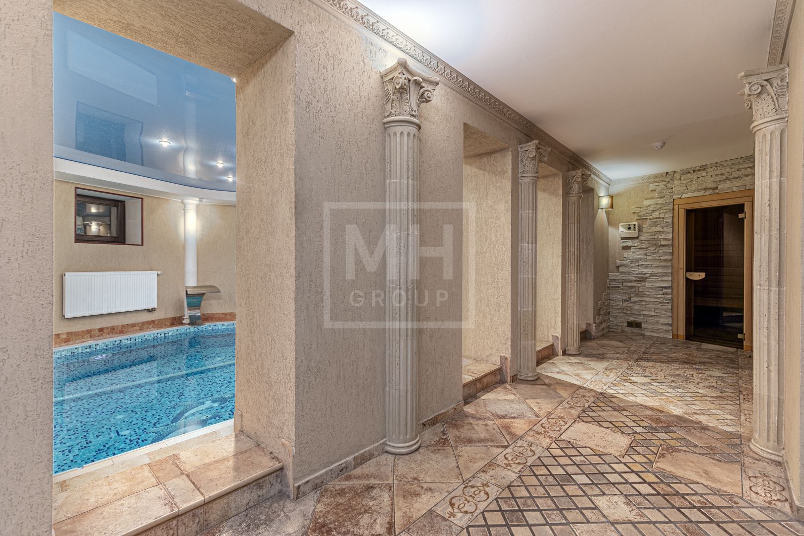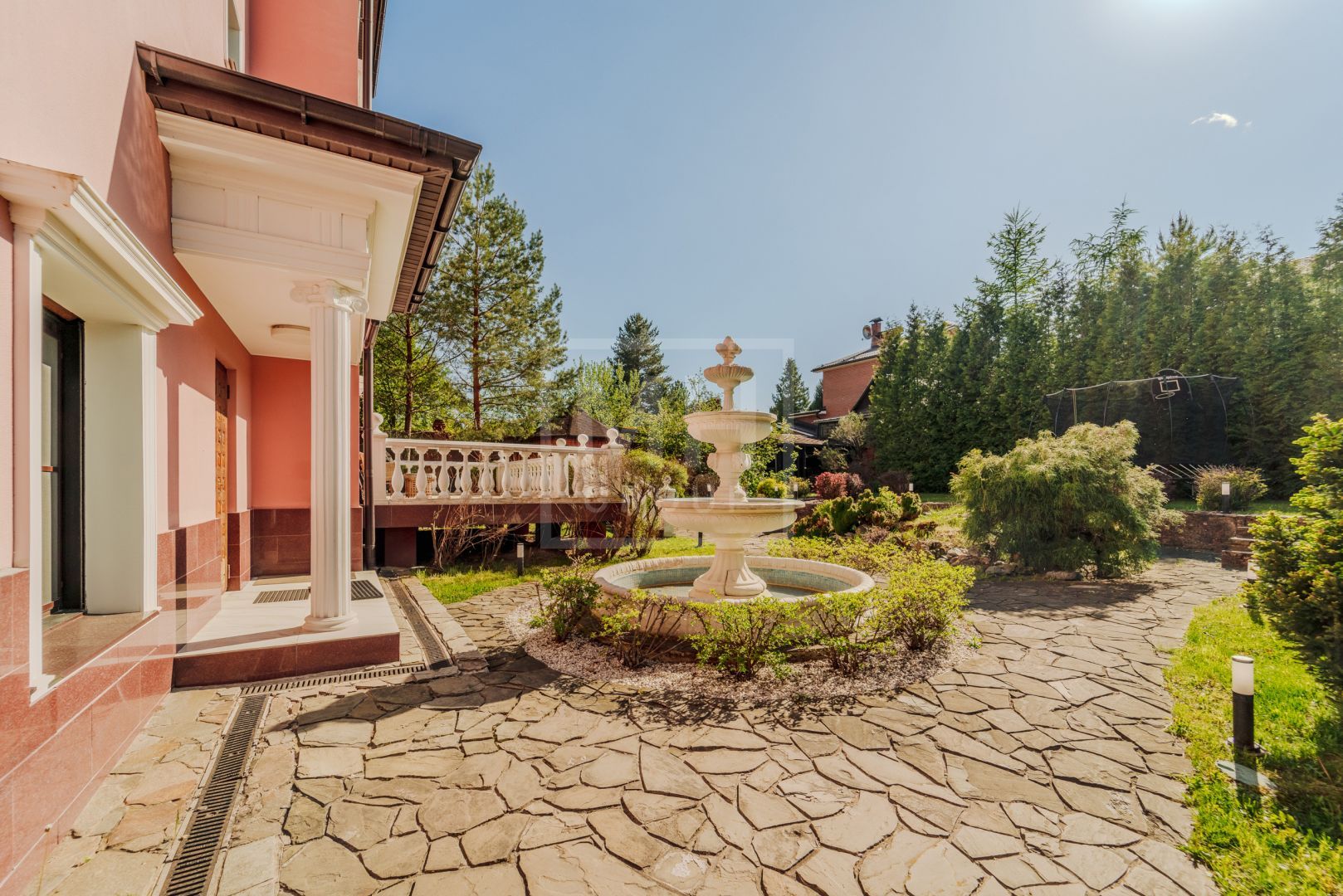 К продаже представлен дом, в котором выполнено грамотное зонирование позволяющее каждому члену семьи проводить время согласно своим пожеланиям: уютная гостиная, каминный зал, кабинет с комнатой отдыха, спорт зал, бильярдная, спа-зона. В отделке использовались натуральные материалы: на полах наборный паркет, роспись на стенах, в оформлении интерьера использованы материалы ( дерево, камень). Из гостиной открывается панорамный вид на участок с фонтаном, зоной барбекю и детским городком . Дом расположен на участке таким образом, что основная ландшафтная часть участка находится за домом, из окон основных комнат на участок открывается прекрасный вид. Установлен лифт Concord , кабина лифта отделана ценными породами дерева. Высажены голубые ели , бонсай, по периметру участка туи. Охраняемый приватный поселок из шести домовладений , видеонаблюдение по периметру посёлка, что обеспечивает спокойствие и безопасность её жителям .
