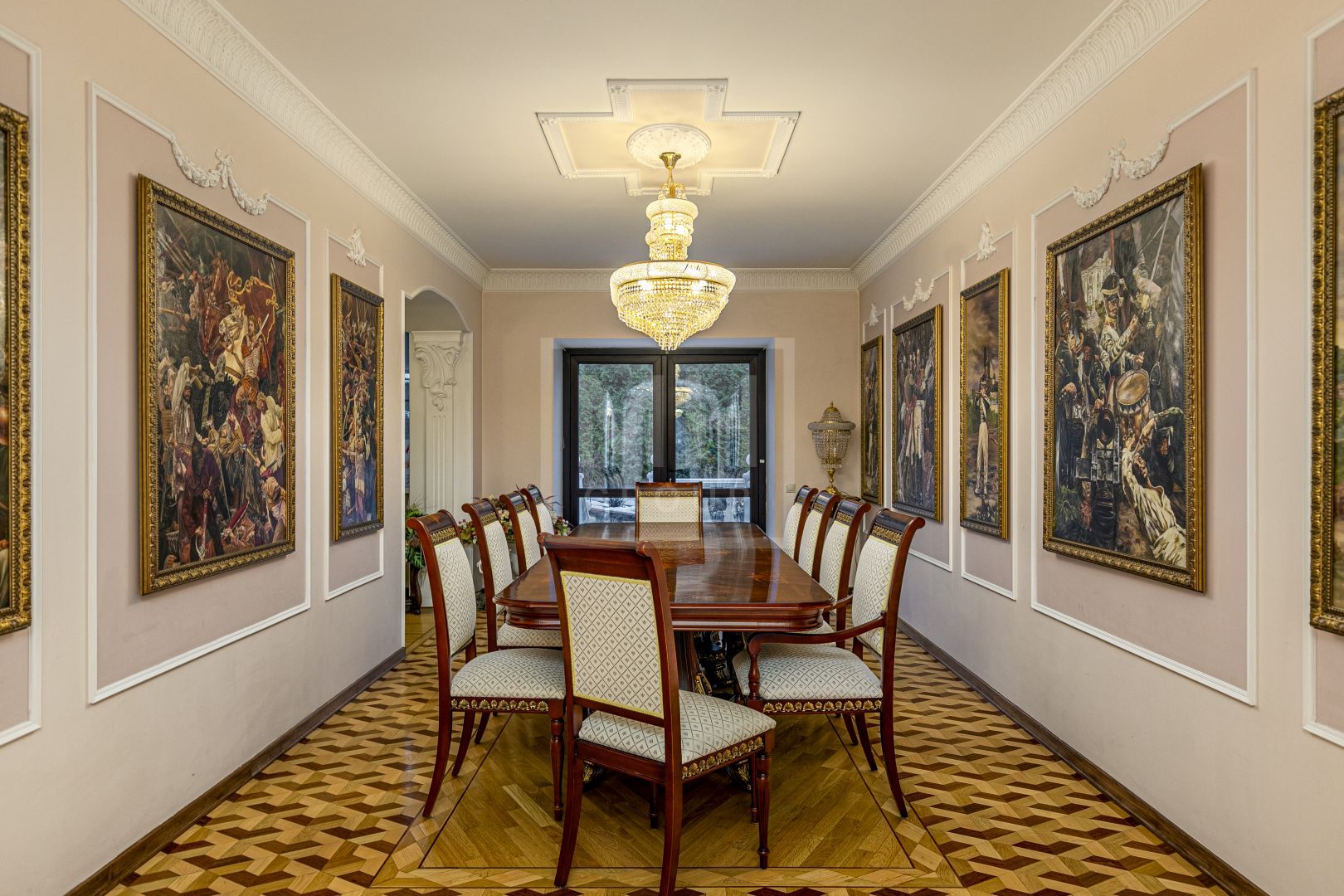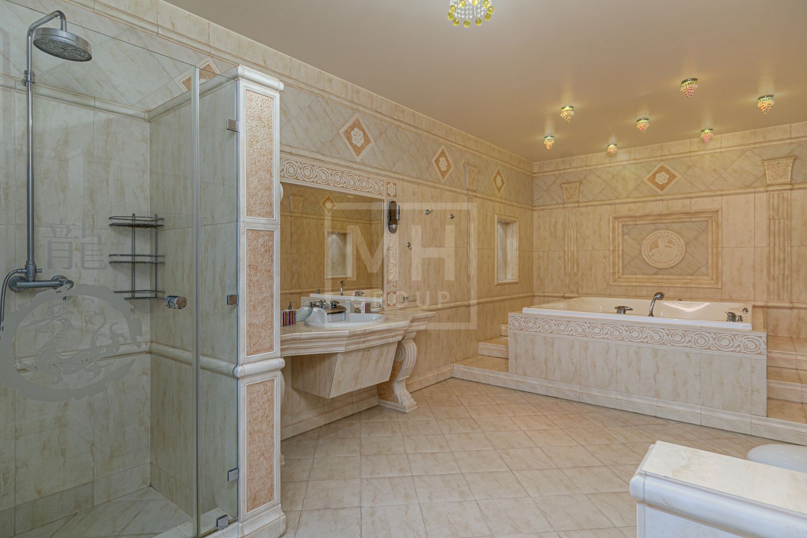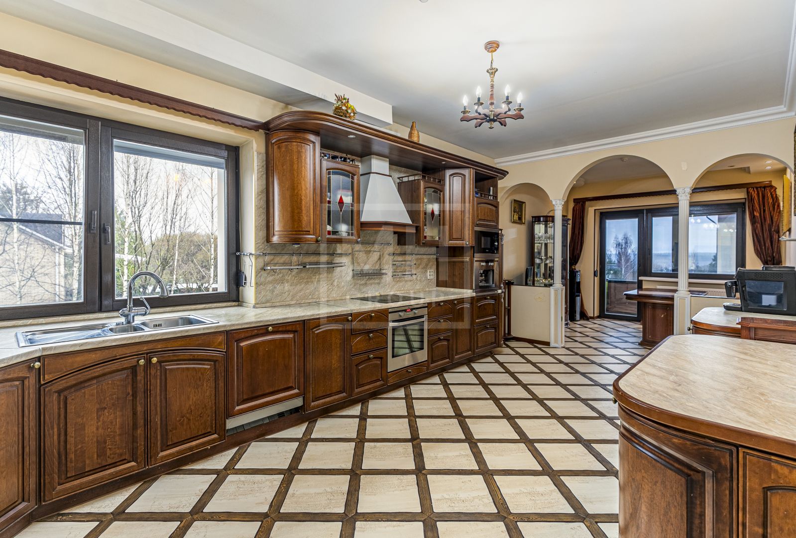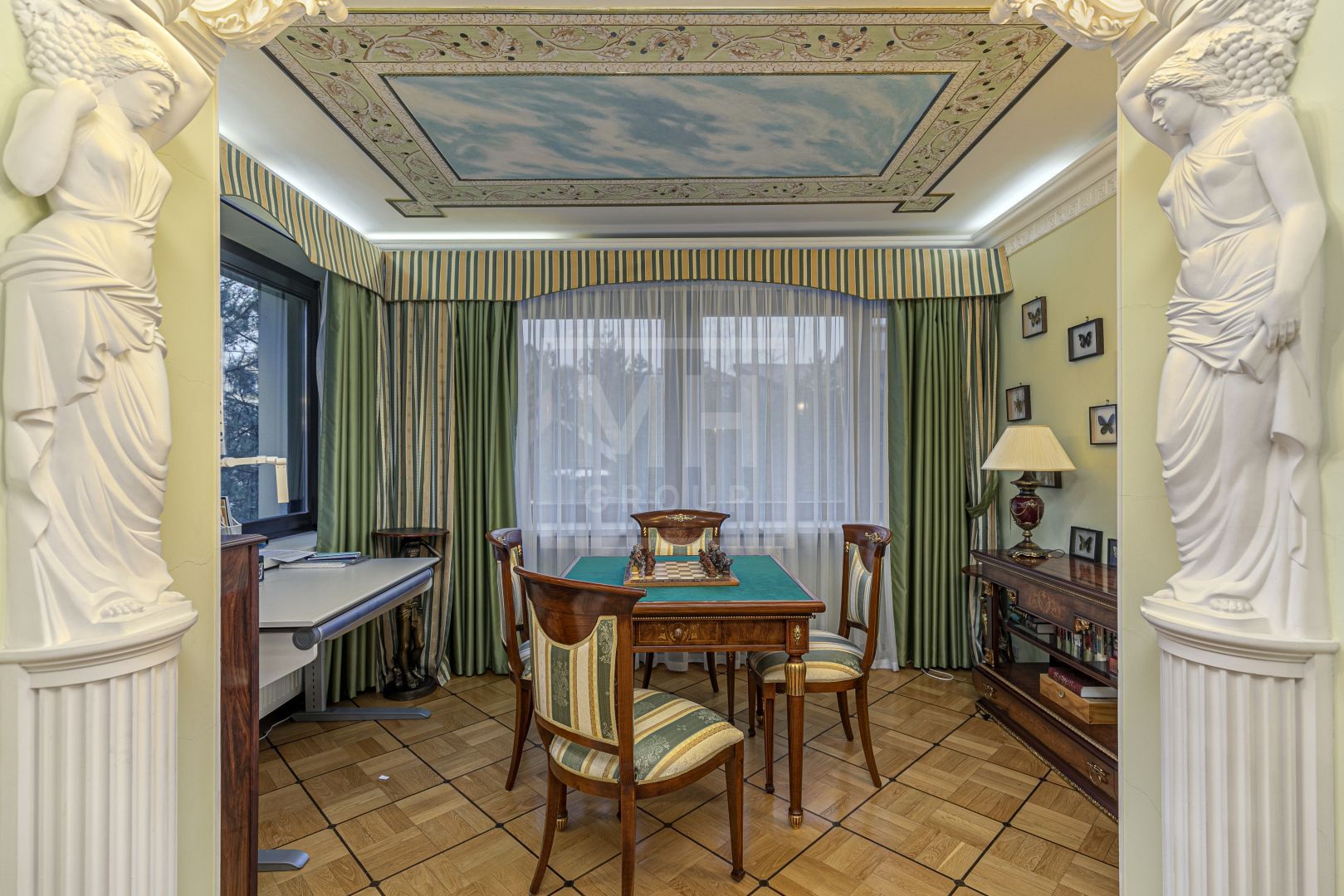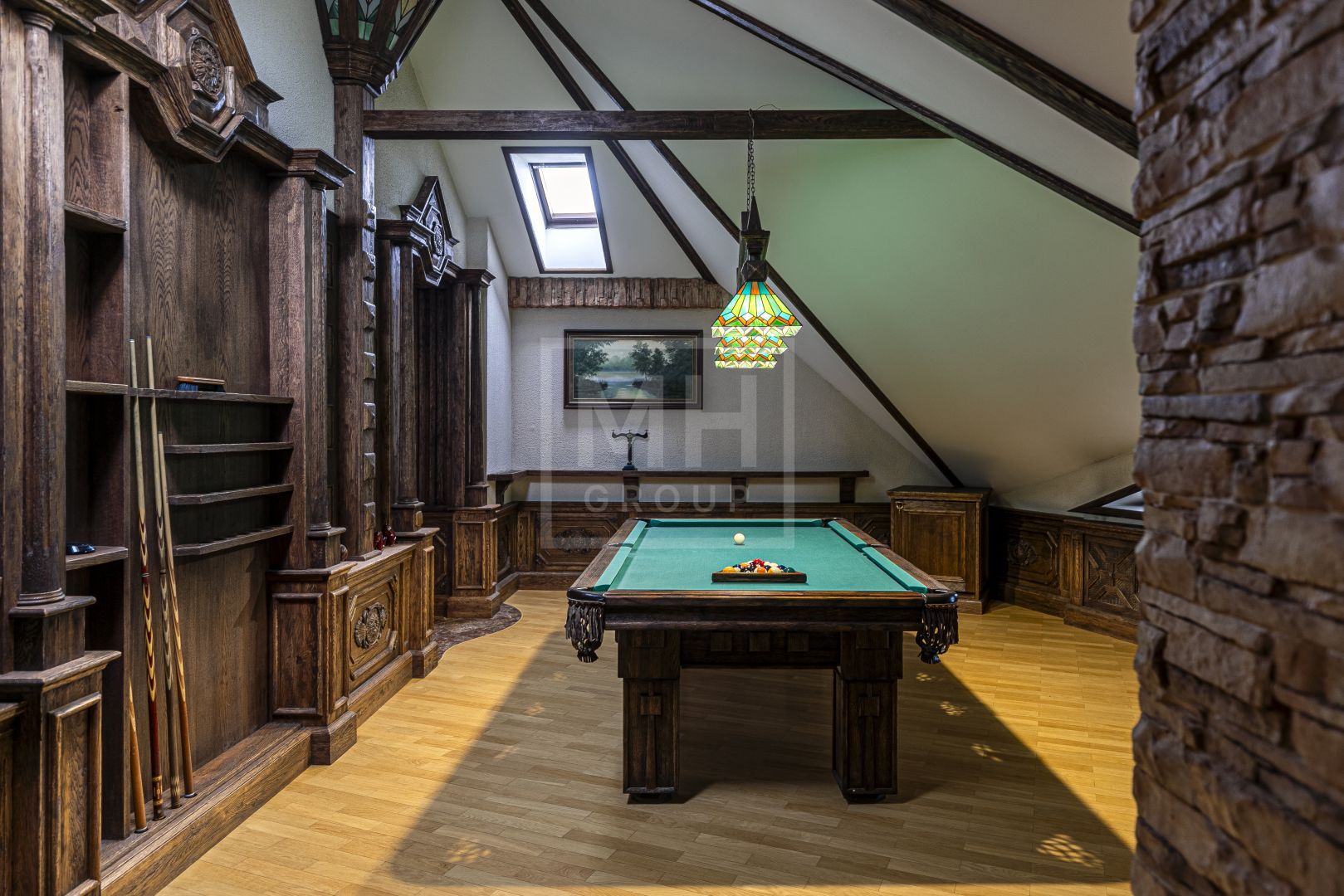 К продаже представлен дом, в котором выполнено грамотное зонирование позволяющее каждому члену семьи проводить время согласно своим пожеланиям: уютная гостиная, каминный зал, кабинет с комнатой отдыха, спорт зал, бильярдная, спа-зона. В отделке использовались натуральные материалы: на полах наборный паркет, роспись на стенах, в оформлении интерьера использованы материалы ( дерево, камень). Из гостиной открывается панорамный вид на участок с фонтаном, зоной барбекю и детским городком . Дом расположен на участке таким образом, что основная ландшафтная часть участка находится за домом, из окон основных комнат на участок открывается прекрасный вид. Установлен лифт Concord , кабина лифта отделана ценными породами дерева. Высажены голубые ели , бонсай, по периметру участка туи. Охраняемый приватный поселок из шести домовладений , видеонаблюдение по периметру посёлка, что обеспечивает спокойствие и безопасность её жителям .