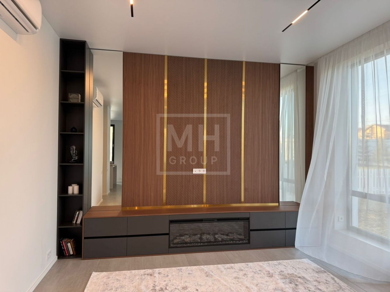Отделка выполнена в современном стиле в сочетании с дизайнерскими акцентами для создания теплого и уютного интерьера. Полностью оборудованная кухня, санузлы и мастер-спальня.