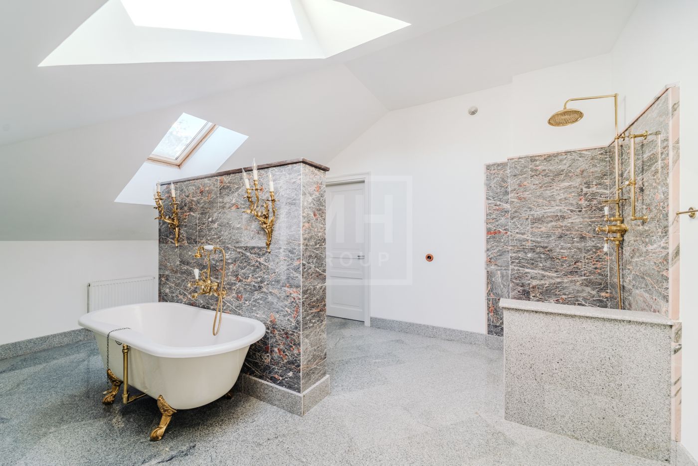 Во внутренней отделке использованы натуральные материалы - красивая паркетная доска, разные сорта мрамора и гранита.