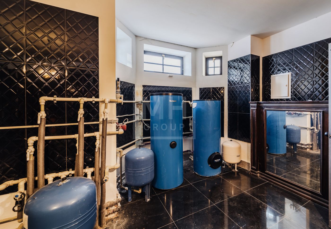 Цоколь: котельная со своим выходом, 2 кладовые, блок для персонала (кухня, две спальни, с/у, кладовая, постирочная), гараж