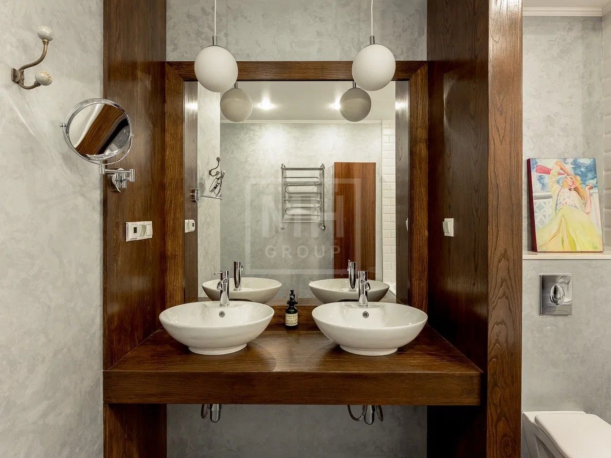 Просторный и современный двухэтажный дом, общей площадью 359 м2.В доме выполнен дизайнерский ремонт из качественных натуральных материалов, в стиле современной классики. Коттедж меблирован, установлена вся необходимая бытовая техника, проведены все коммуникации.