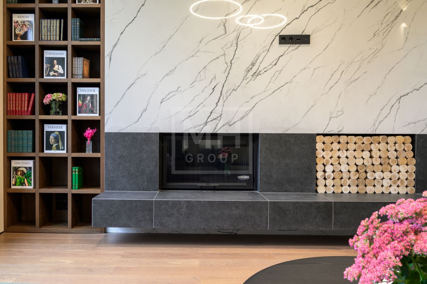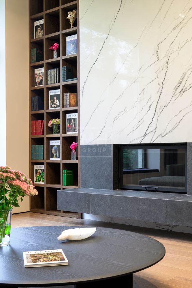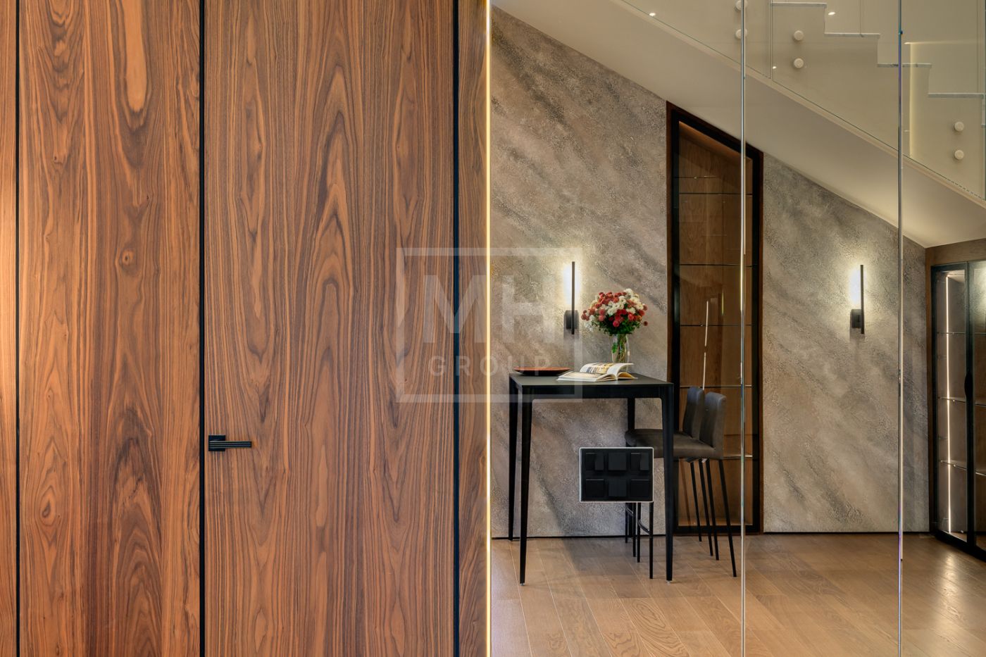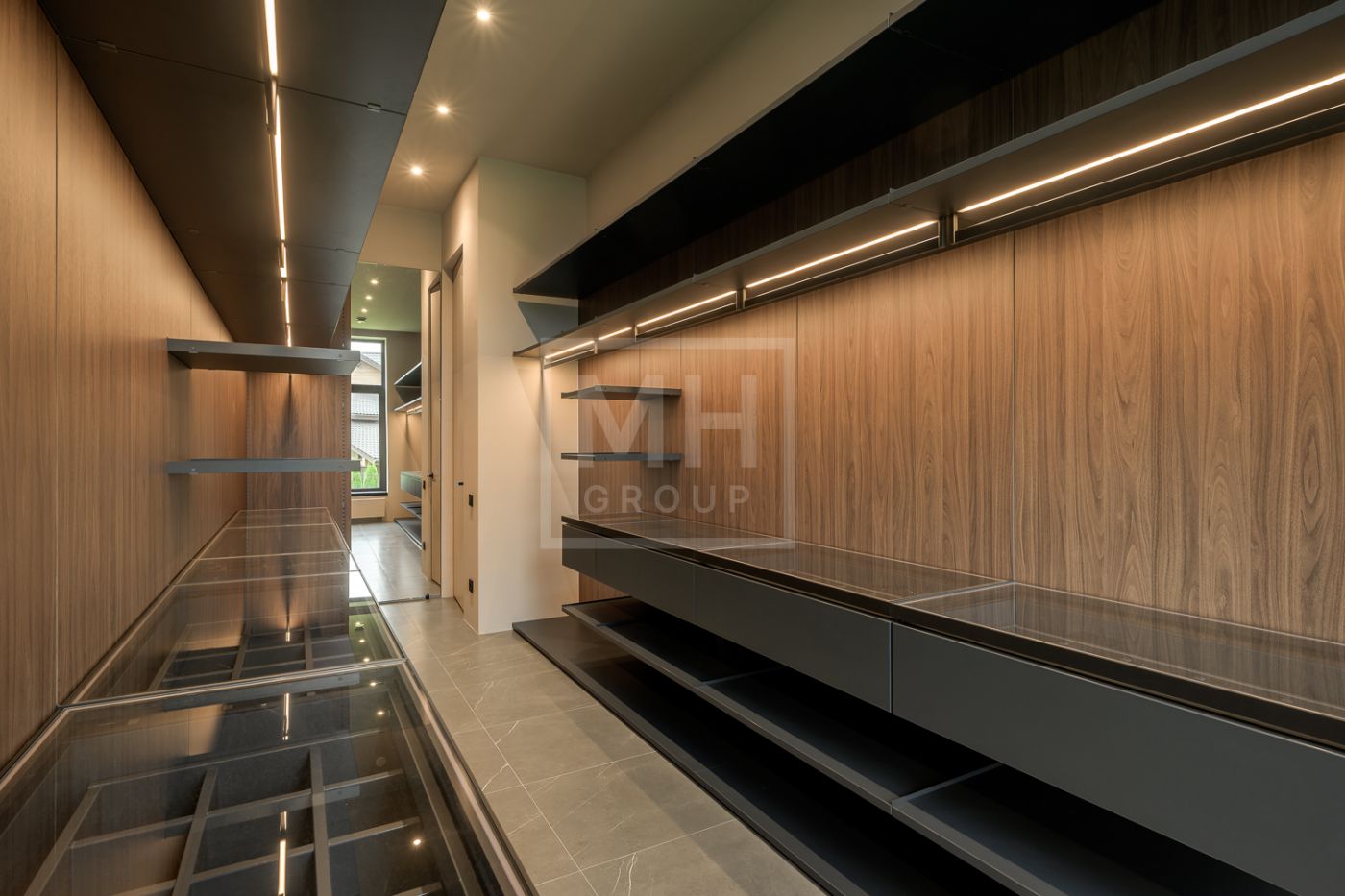 Входная группа: холл 15 м2, гардеробная верхней одежды 14 м2, гостевой блок (или блок персонала) – 2 спальни, гостевой санузел с душевой, гостевая гардеробная и кабинет 20 м2.