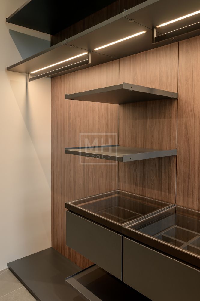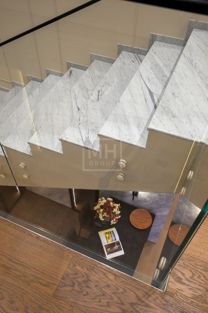 Приватная зона: мастер сьют 81 м2 (спальня, две гардеробных 18 и 14 м2, санузел), три детских сьюта площадью 44, 55 и 56 м2 (четкое зонирование, выделяющее кабинет-игровую-гардеробную, детскую и полноценный санузел с окном, ванной, душевой, умывальником, унитазом и биде), прачечная.