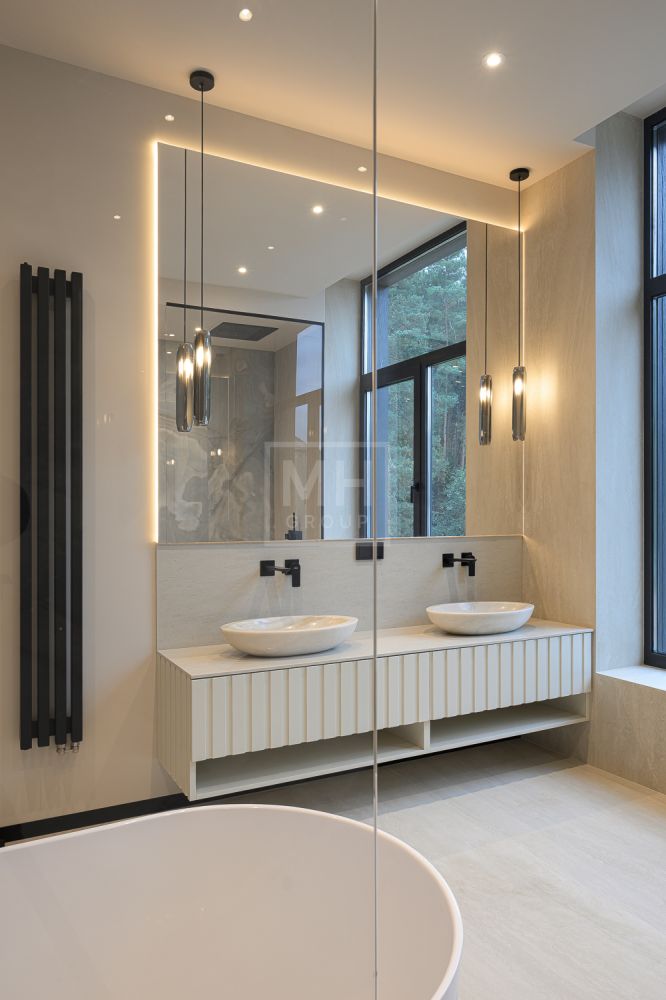 Дом под ключ, 2024 г. постройки в кп «Ренессанс парк». Одно из лучших расположений в поселке – первая линия от леса и вдали от транзитных дорог. Посадка дома учитывает соседние дома и обеспечивает вид на лес из окон трех сторон, а также дает ощущение простора и отсутствие ситуации «окна в окна». Уникальной особенностью данного дома является вид на горизонт из гостиной, кабинета, комнаты досуга и двух спален. С участка можно организовать собственный выход в обустроенную лесопарковую зону. На участке есть место под строительство инфраструктурного объекта до 500 м2.Ощущение пространства в доме обеспечивает большая площадь остекления и высота потолков в комнатах от 3,5 до 7,2 м, а также великолепные виды из окон на все 4 стороны.