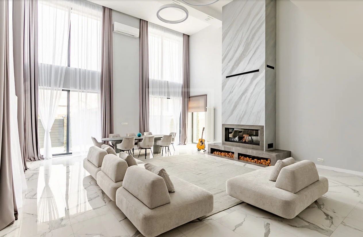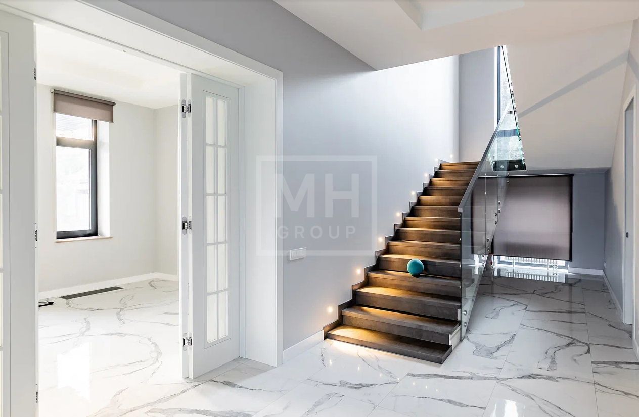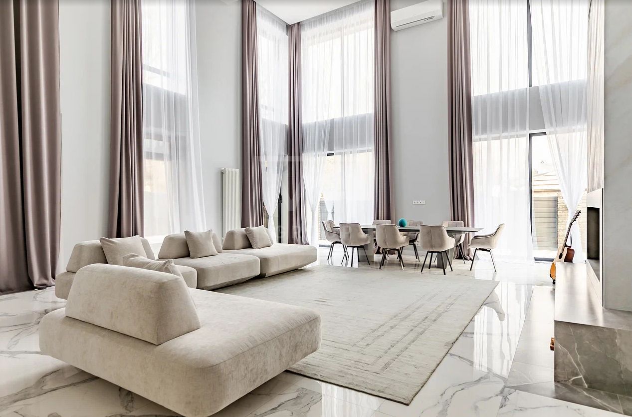 Абсолютно новый современный дом с отделкой под ключ в поселке Заря. Интерьеры дома выполнены в светлых тонах, что вместе с панорамными окнами и вторым светом в зоне гостиной наполняют дом светом. Качественная дорогая мебель, современное бытовое оборудование и техника премиальных брендов. Из основных помещений 1-го и 2-го этажа выход на просторные террасы. На участке правильной формы выполнен профессиональный ландшафт, по периметру высажены туи и кустарники. Дом является одним из лучших объектов по соотношению параметров с быстрым выездом на платную трассу.