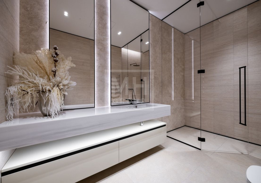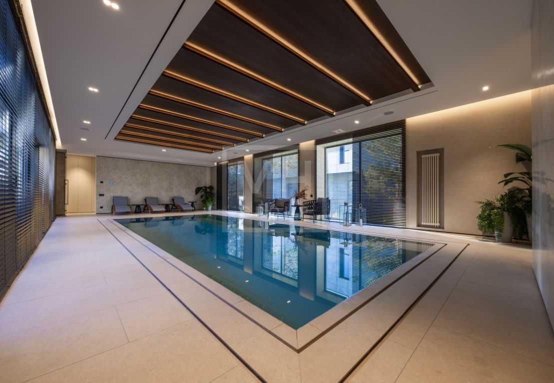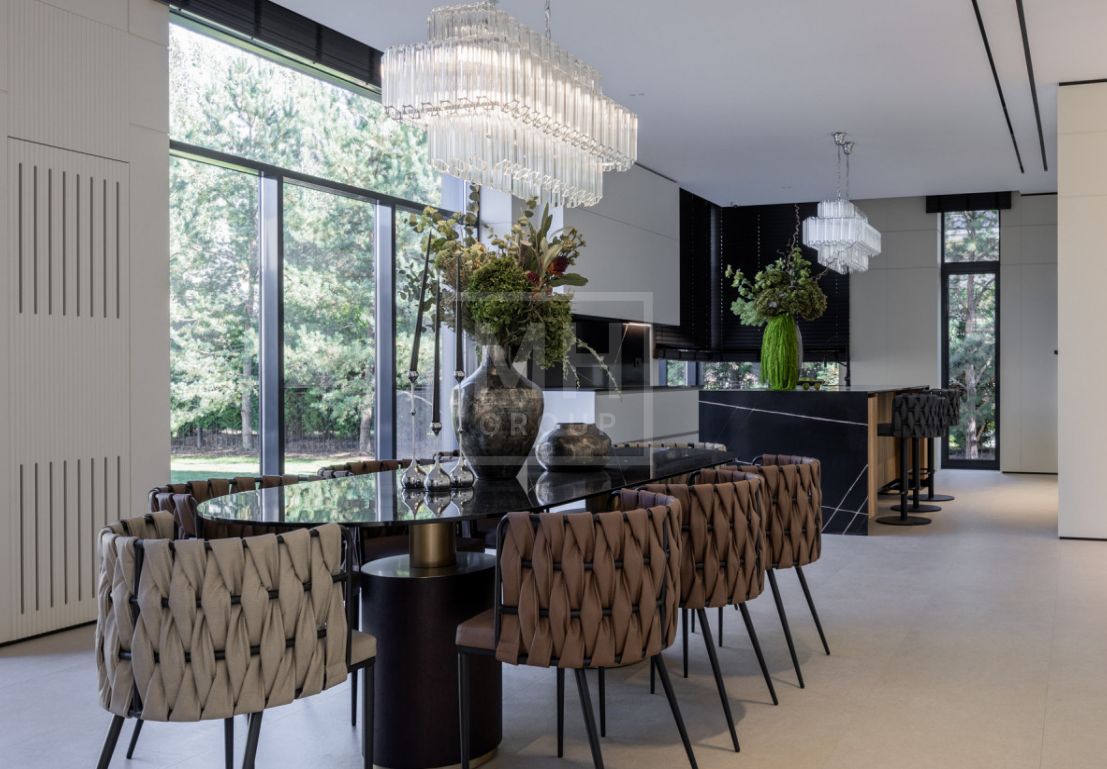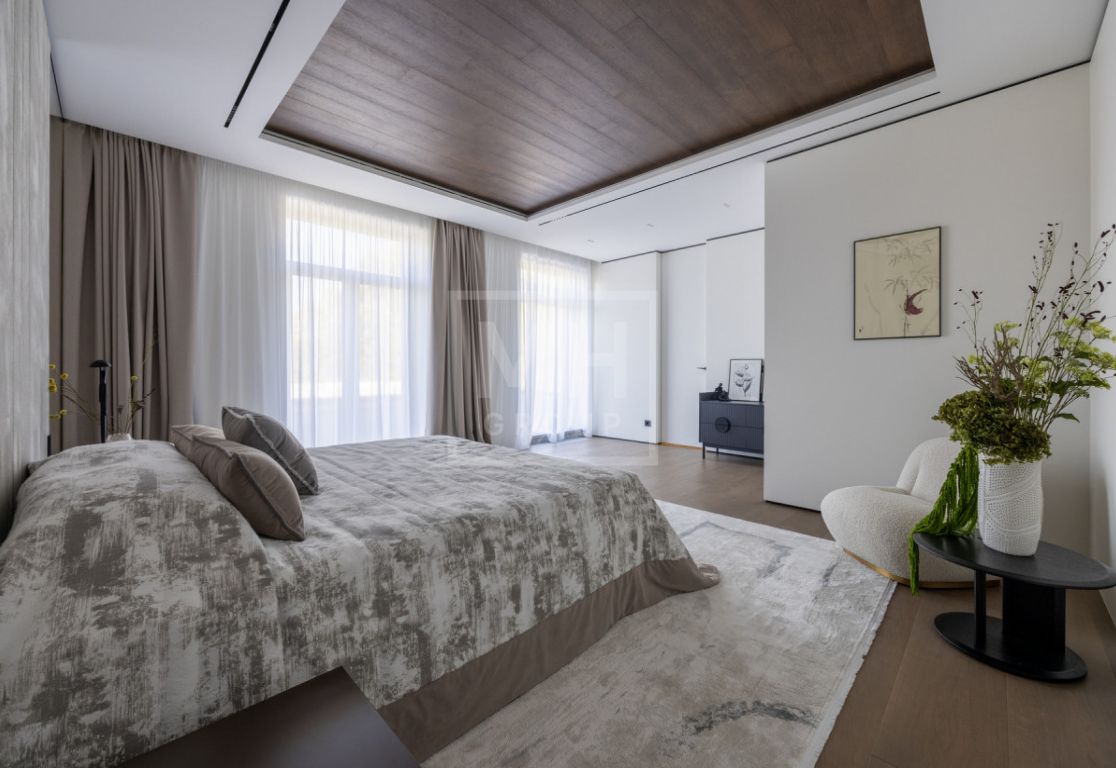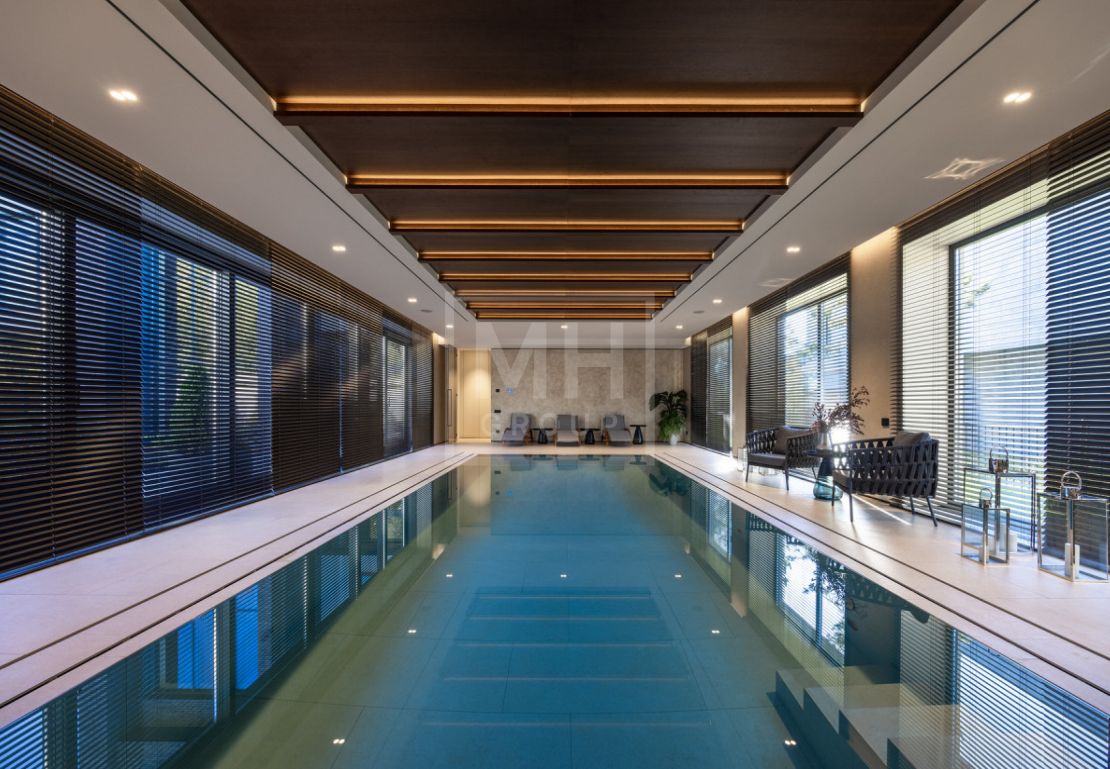 Современный дом с бассейном в поселке Ренессанс Парк на Новорижском шоссе. Планировкой дома предусмотрено до 5-ти спален, просторная зона кухни-столовой-гостиной, спа-зона с бассейном. Дом предлагается в отделке "под ключ".