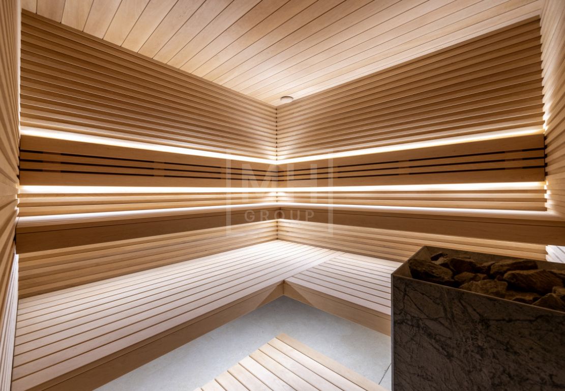 Этаж 1: Прихожая, гардеробная (2шт), с/у, кухня-столовая,гостиная со вторым светом, спальня с с/у, кабинет, с/у, спа-зона с бассейном, сауной, хамамом и купелью, гараж, котельная