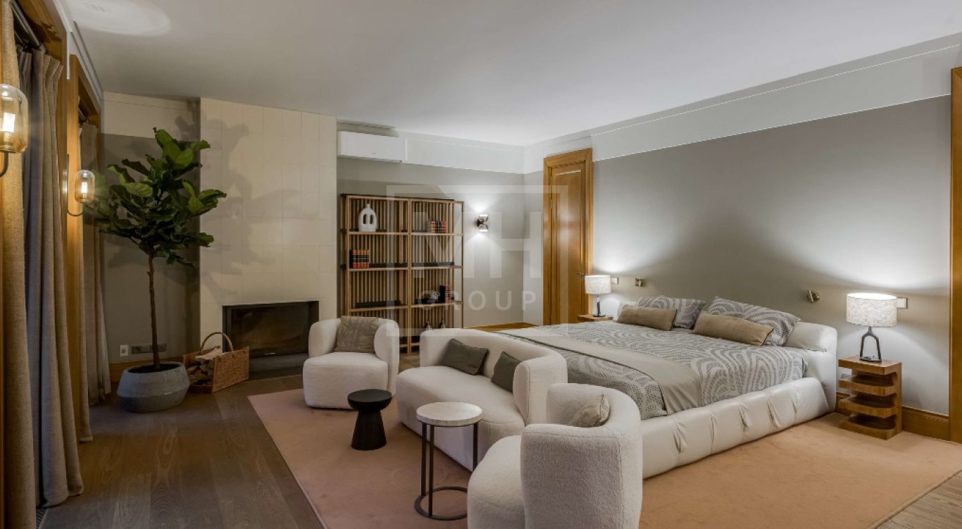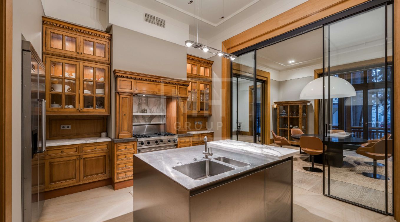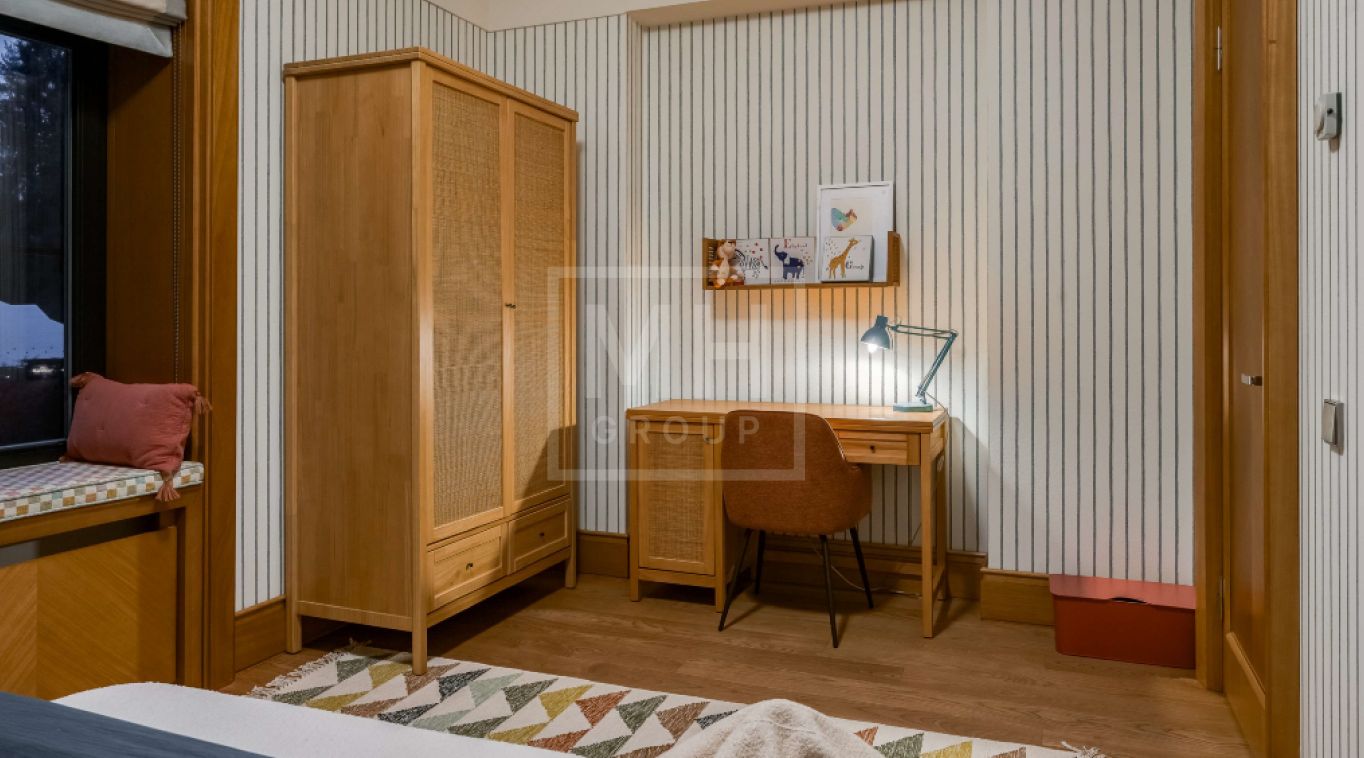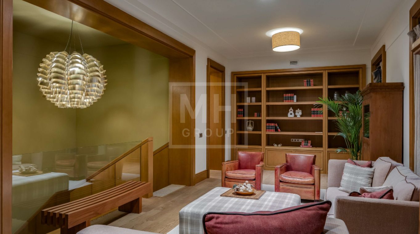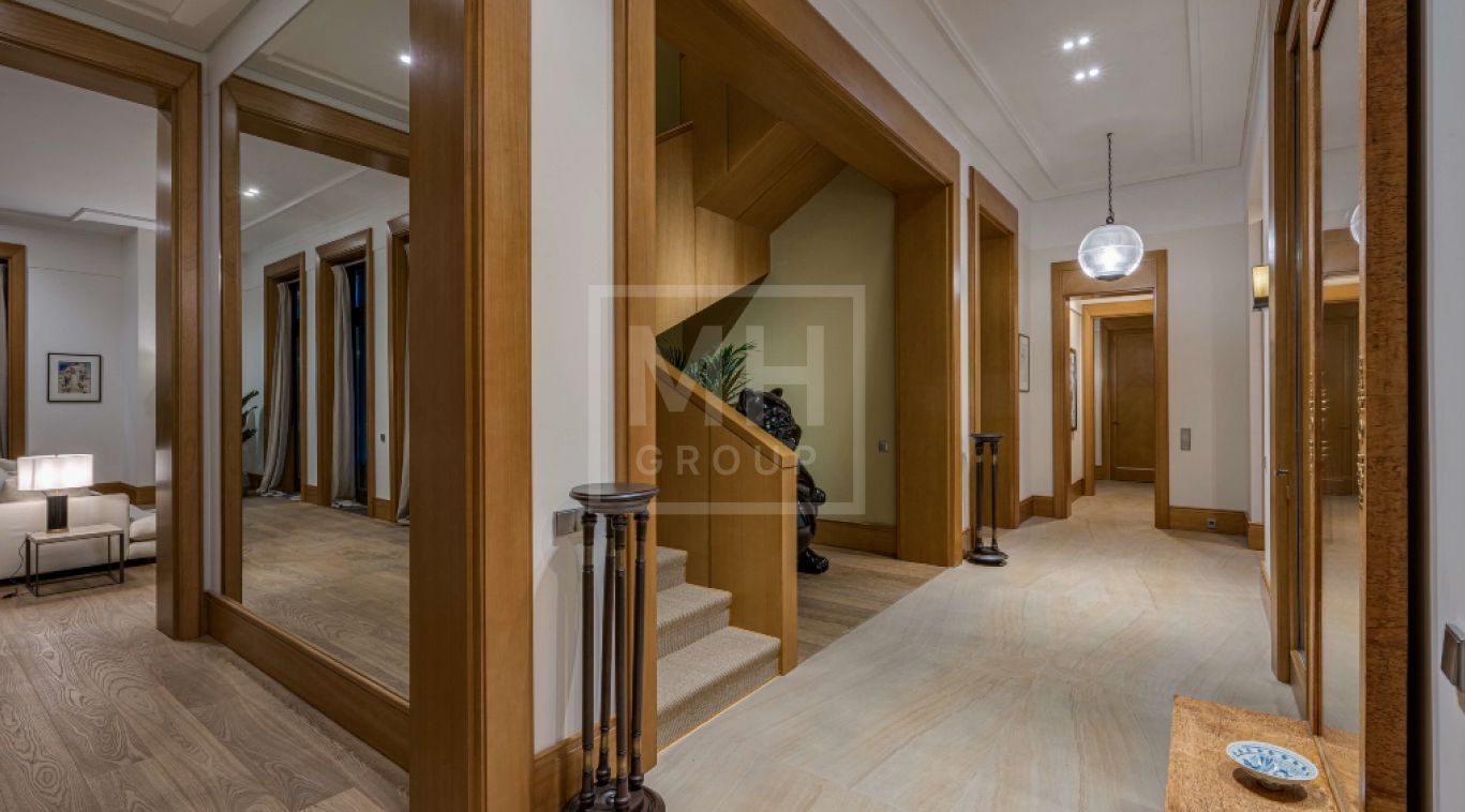 Великолепный дом с бассейном в поселке Шервуд на Новорижском шоссе предлагает идеальный баланс уединения и комфорта.Архитектура дома — авторский проект Федора Арзаманова и бюро «Акант», воплощающий эстетику современного стиля. Комбинированный фасад с применением штукатурки и специально обработанной древесины прекрасно вписывается в естественный природный ланлшафт Высокие потолки и панорамные остекление в доме наполняют пространство светом. В отделке использованы редкие и ценные материалы: мрамор, порфир, красное африканское дерево анегри с глубоким янтарным оттенком. Интерьер выдержан в гармоничном сочетании современного и винтажного дизайна: мебель Gervasoni, кухня Bulthaup, дизайнерские светильники. Продуманная планировка отвечает требованиям комфорта и функциональности. Просторная гостиная с камином и выходом на террасу, объединенная с кухней-столовой, создает идеальное пространство для теплых разговоров в кругу семьи. На втором этаже расположены главная спальня с камином, гардеробной и террасой, а также уютная библиотека, детская гостиная и две детские спальни. SPA- зона включает бассейн с выходом на террасу, сауну, хамам и каминный зал. Для гостей предусмотрены две отдельные спальни с санузлами. В цоколе размещены помещения для персонала, постирочная, фитнес-зона, гардеробная и технические комнаты.