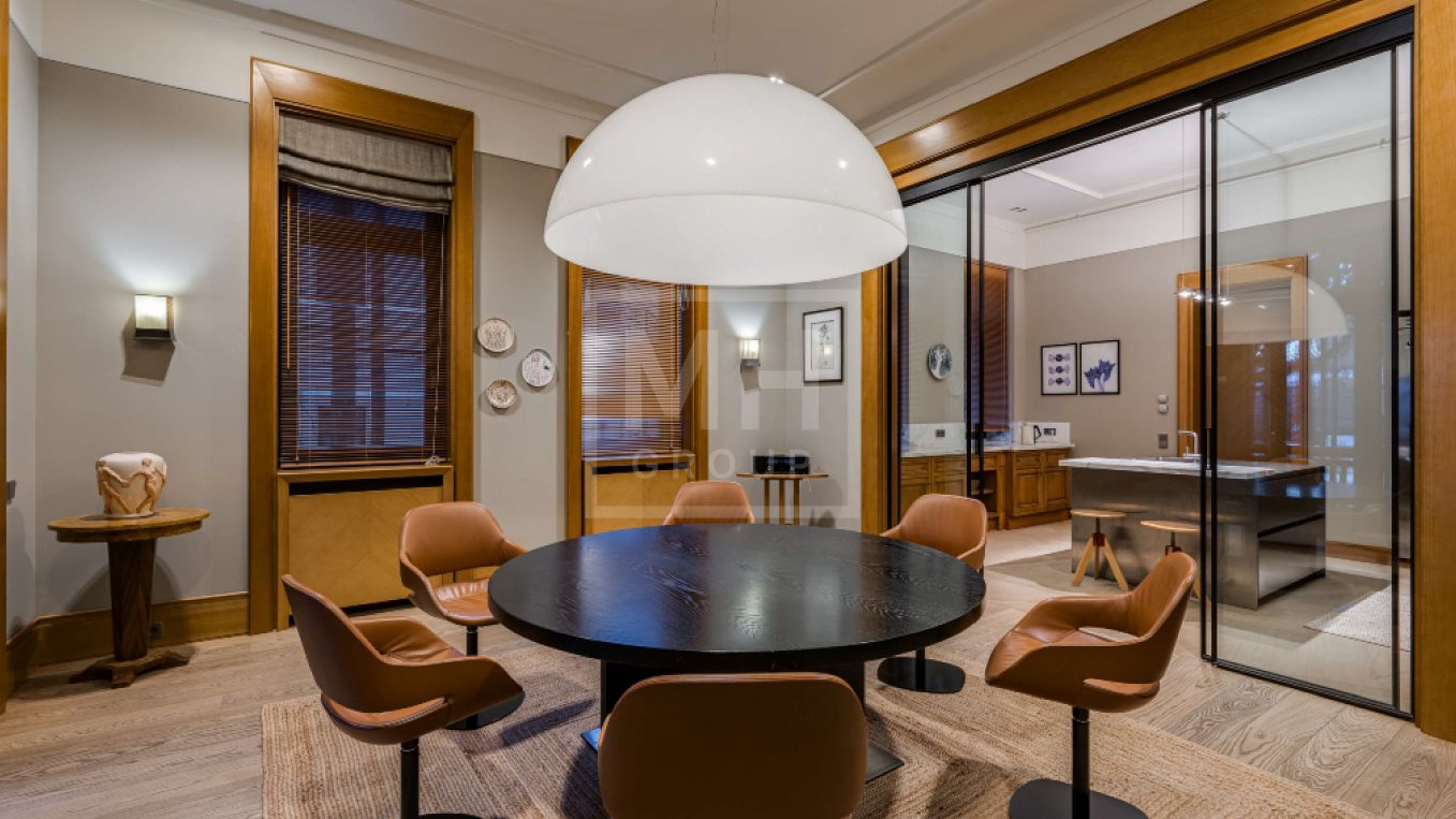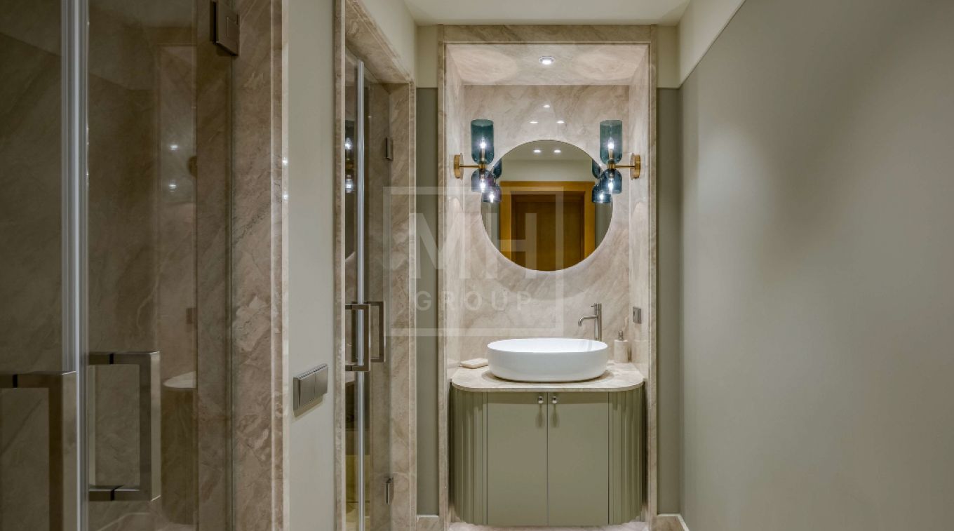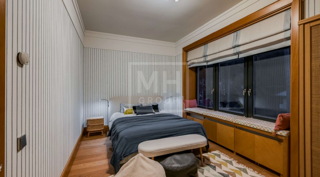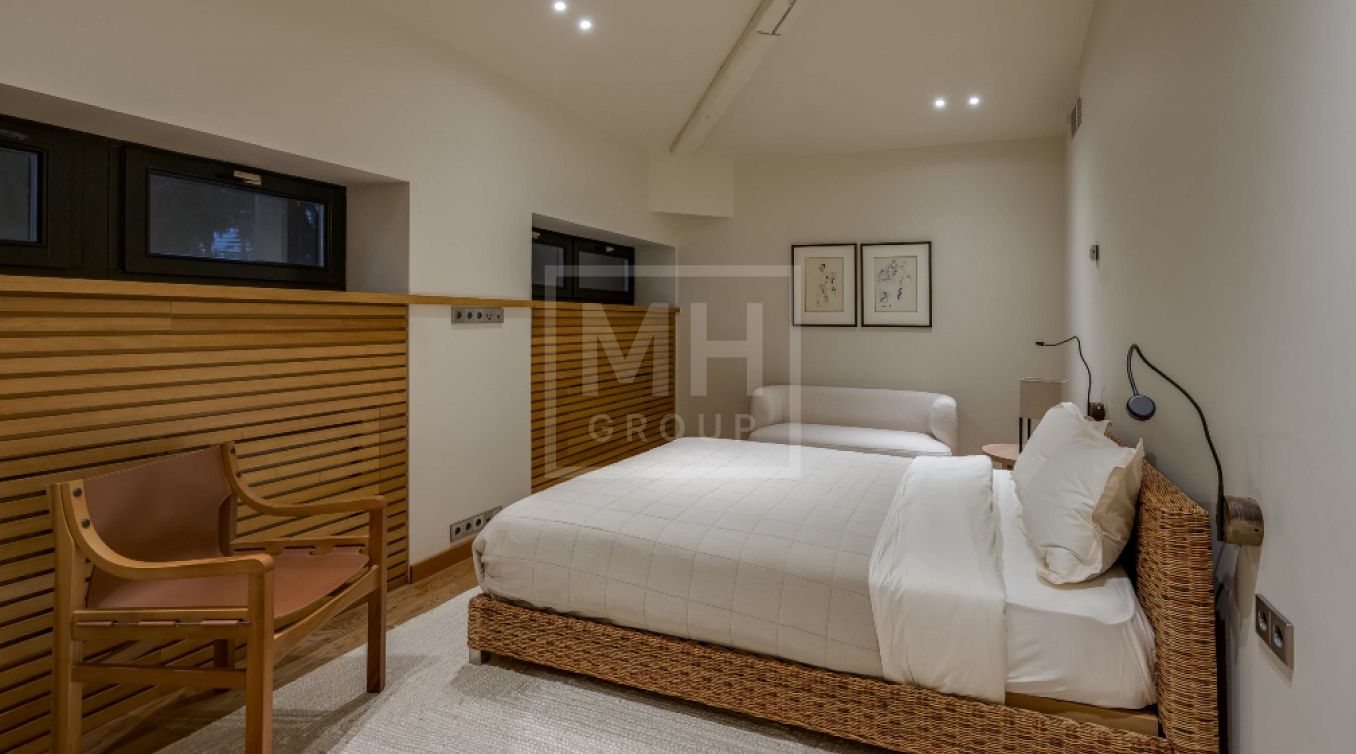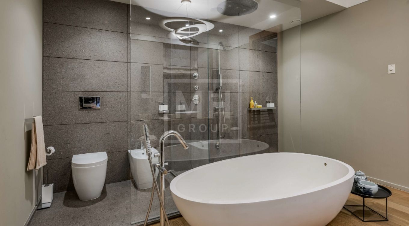 Великолепный дом с бассейном в поселке Шервуд на Новорижском шоссе предлагает идеальный баланс уединения и комфорта.Архитектура дома — авторский проект Федора Арзаманова и бюро «Акант», воплощающий эстетику современного стиля. Комбинированный фасад с применением штукатурки и специально обработанной древесины прекрасно вписывается в естественный природный ланлшафт Высокие потолки и панорамные остекление в доме наполняют пространство светом. В отделке использованы редкие и ценные материалы: мрамор, порфир, красное африканское дерево анегри с глубоким янтарным оттенком. Интерьер выдержан в гармоничном сочетании современного и винтажного дизайна: мебель Gervasoni, кухня Bulthaup, дизайнерские светильники. Продуманная планировка отвечает требованиям комфорта и функциональности. Просторная гостиная с камином и выходом на террасу, объединенная с кухней-столовой, создает идеальное пространство для теплых разговоров в кругу семьи. На втором этаже расположены главная спальня с камином, гардеробной и террасой, а также уютная библиотека, детская гостиная и две детские спальни. SPA- зона включает бассейн с выходом на террасу, сауну, хамам и каминный зал. Для гостей предусмотрены две отдельные спальни с санузлами. В цоколе размещены помещения для персонала, постирочная, фитнес-зона, гардеробная и технические комнаты.