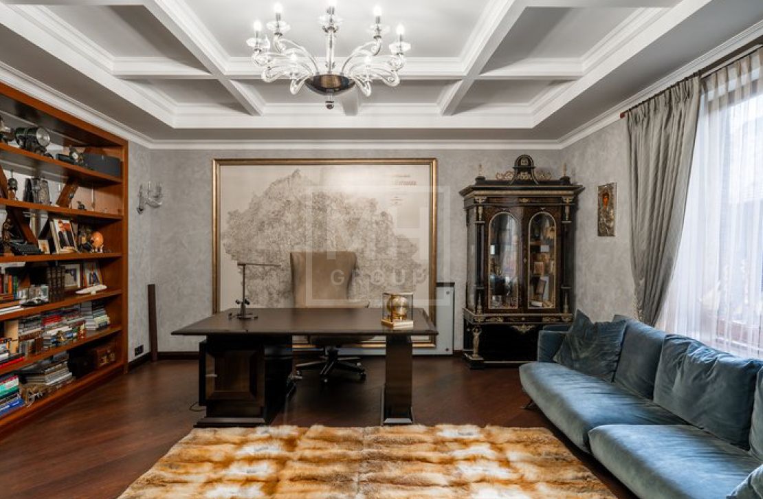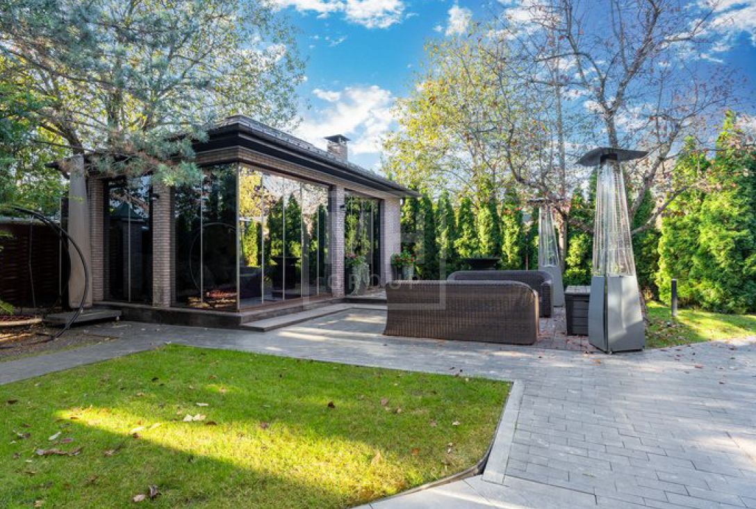 Дом стиле Ар-деко площадью 740 кв.м. расположен на просторном участке в закрытом коттеджном поселке в д. Большое Сареево. В доме предусмотрены: 3 спальни, 3 с/у, гардеробные комнаты, гостиная, столовая, камин, кухня, 2 лаунж зоны, кабинет, тренажерный зал, хаммам, бассейн и гараж на 2автомобиля. На участке выполнен ландшафтный дизайн. Также на территории расположен застекленный павильон с зоной барбекю и рядом с ним летняя терраса.