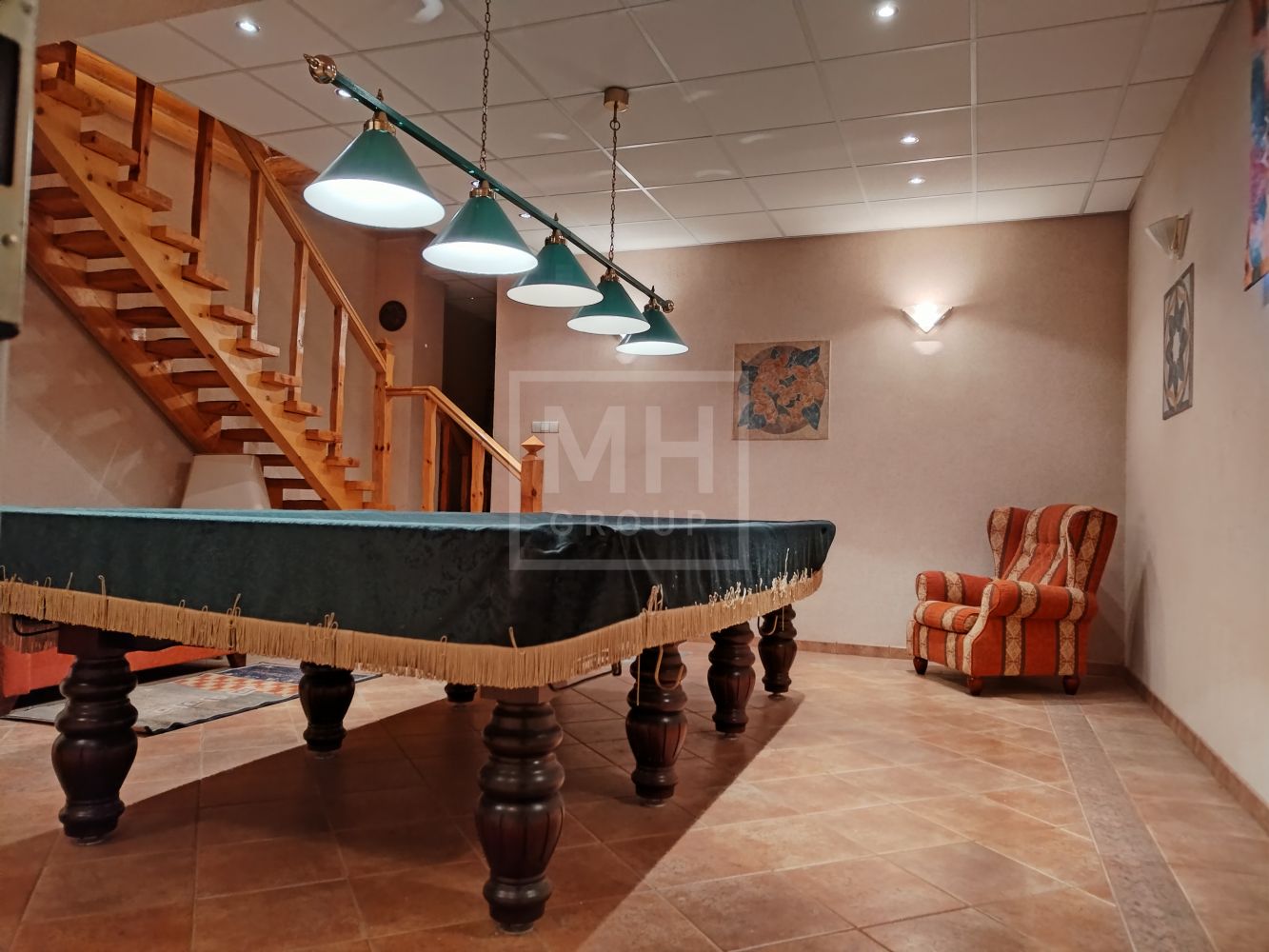 Цоколь: зона спа: сауна, две бочки-купели, санузел, каминный зал с дровяным камином, бильярдная, спортзал, детская игровая
