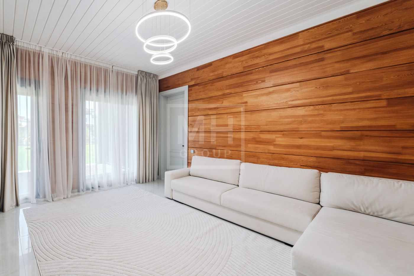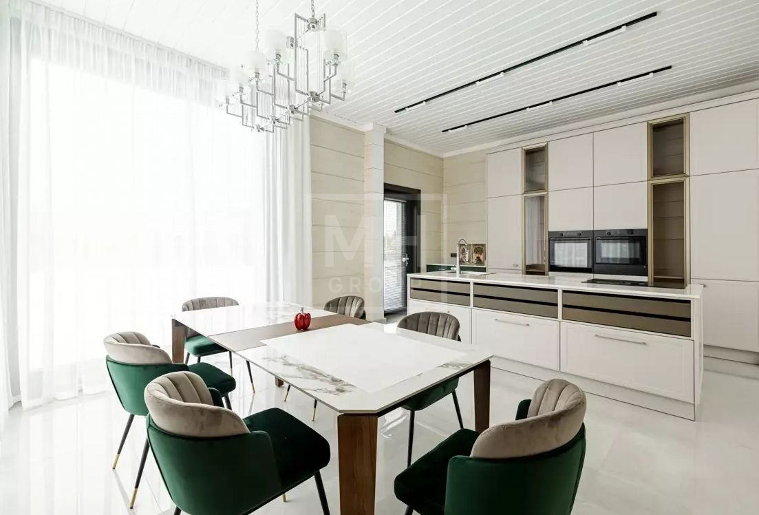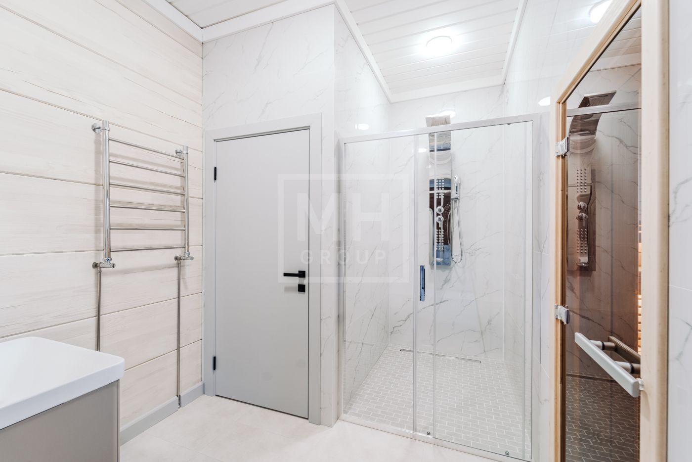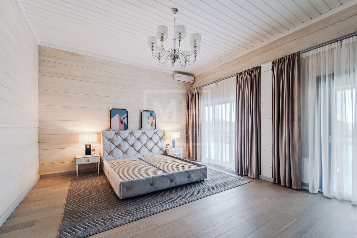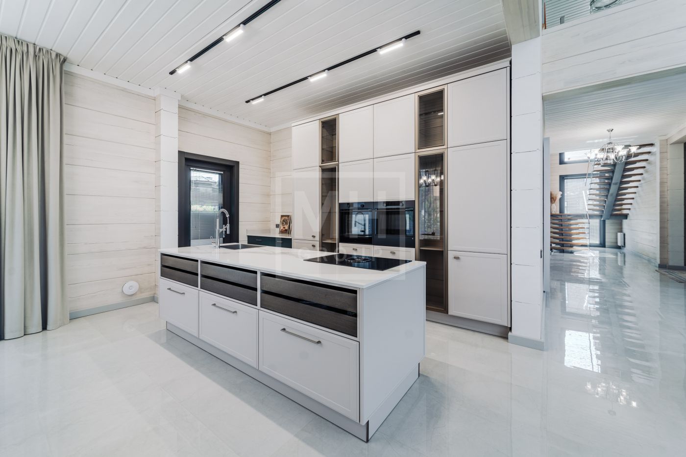 Современный дом из клееного бруса под ключ с мебелью в поселке Онегино. Планировкой дома предусмотрено 4 спальни, практически одна большая зона кухни, столовой с выходом на террасу и гостиной со вторым светом, просторная СПА-зона для отдыха. Приятный интерьер в светлых тонах, дом укомплектован стильной мебелью. Большая площадь остекления делает дом невероятно светлым.На участке предусмотрен навес на 2 автомобиля. Посадка дома на участке оставляет значительное количество места для размещения беседки с зоной барбекю.