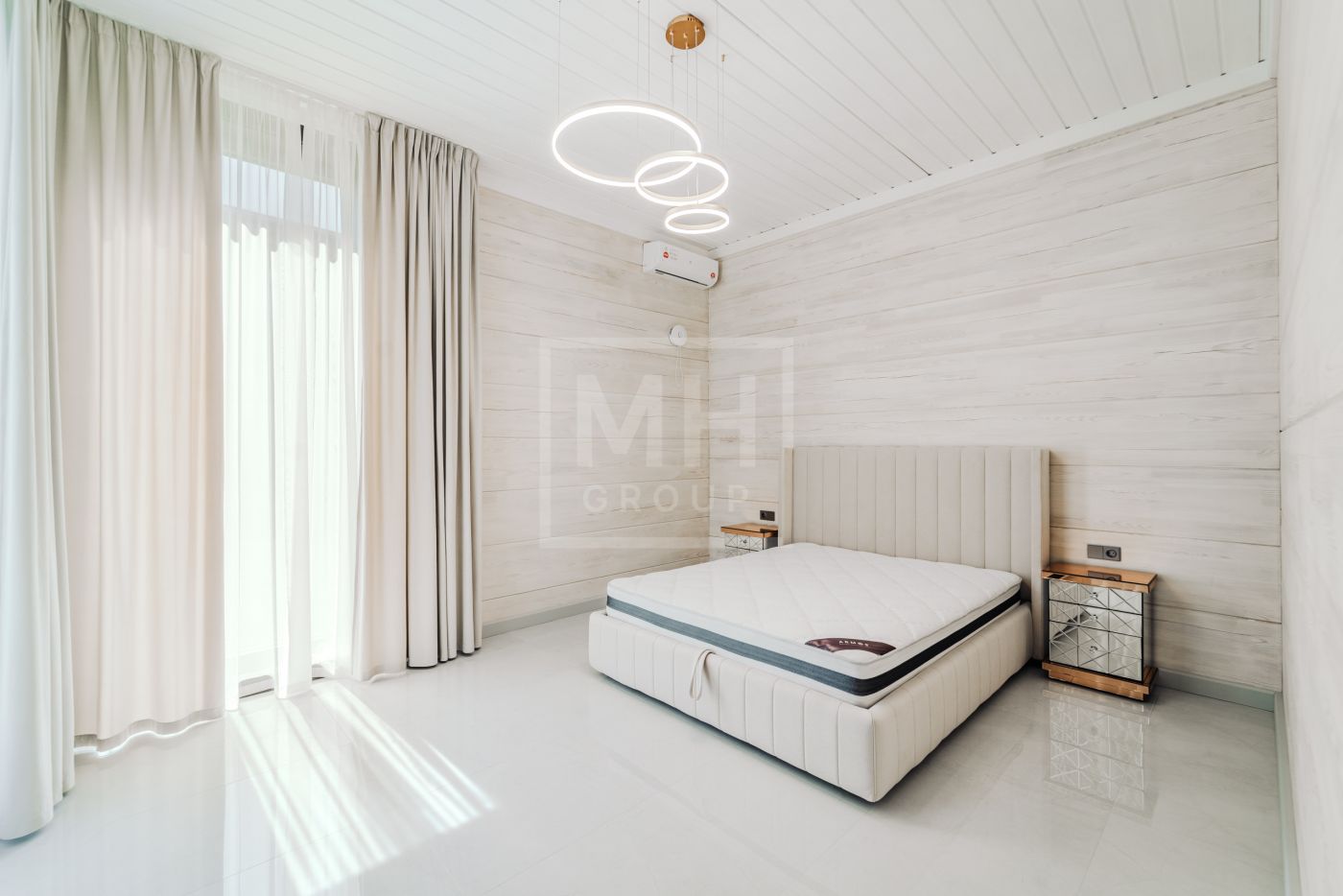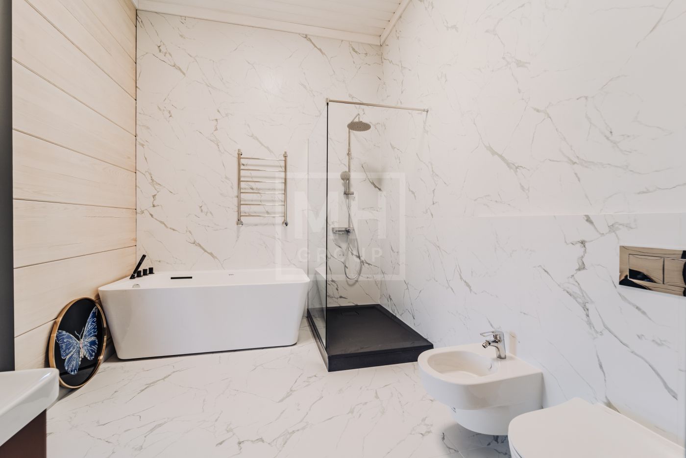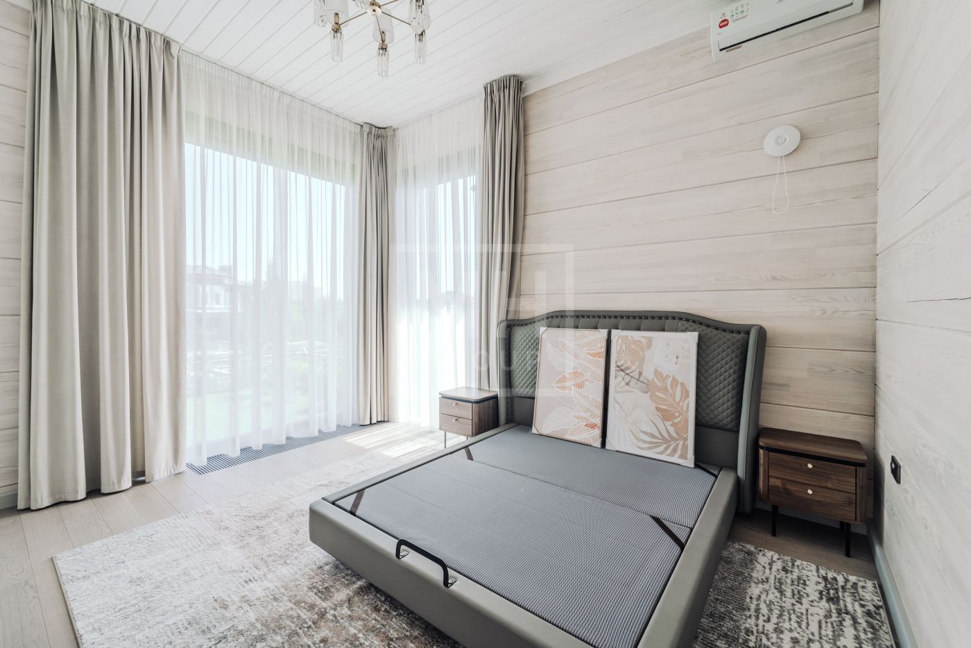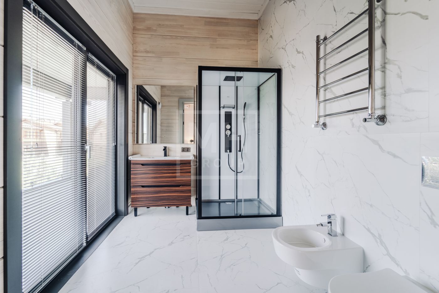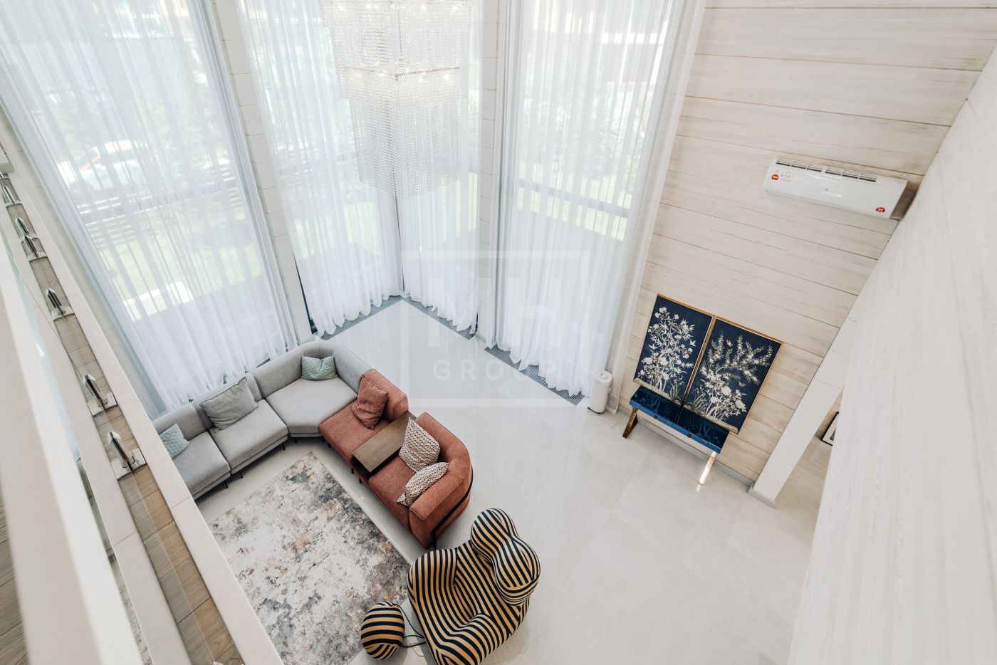 Современный дом из клееного бруса под ключ с мебелью в поселке Онегино. Планировкой дома предусмотрено 4 спальни, практически одна большая зона кухни, столовой с выходом на террасу и гостиной со вторым светом, просторная СПА-зона для отдыха. Приятный интерьер в светлых тонах, дом укомплектован стильной мебелью. Большая площадь остекления делает дом невероятно светлым.На участке предусмотрен навес на 2 автомобиля. Посадка дома на участке оставляет значительное количество места для размещения беседки с зоной барбекю.