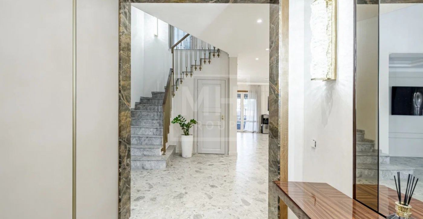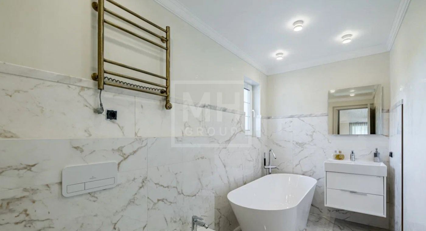 Новый, стильный дом, с изыскано выдержанной архитектурой с обрамлением фасада натуральным камнем. Современные внутренние интерьеры. В отделке использованы качественные, селекционные материалы. Поверхность пола выполнена в стиле старинного камня Terrazzo alla veneziana, поверхности стен и потолка обрамлены венецианской штукатуркой и слэбами мрамора Бидасар Грин. Итальянская эксклюзивная мебель, свет, гардеробные, аксессуары, премиальная сантехника V&B, Jacob Delafon, мраморные итальянские ванны Salini L’anima Del’acqua, бытовая премиальная техника SMEG. Система вентиляции. Видеонаблюдение и система контроля и управления доступа . Скоростной интернет.Участок правильной формы с небольшим понижением и полностью выполненным ландшафтом. Правильная посадка дома в самой верхней точке участка открывает прекрасные виды из основных помещений. Кроме основного дома на участке размещены гостевой дом и беседка с зоной барбекю.
