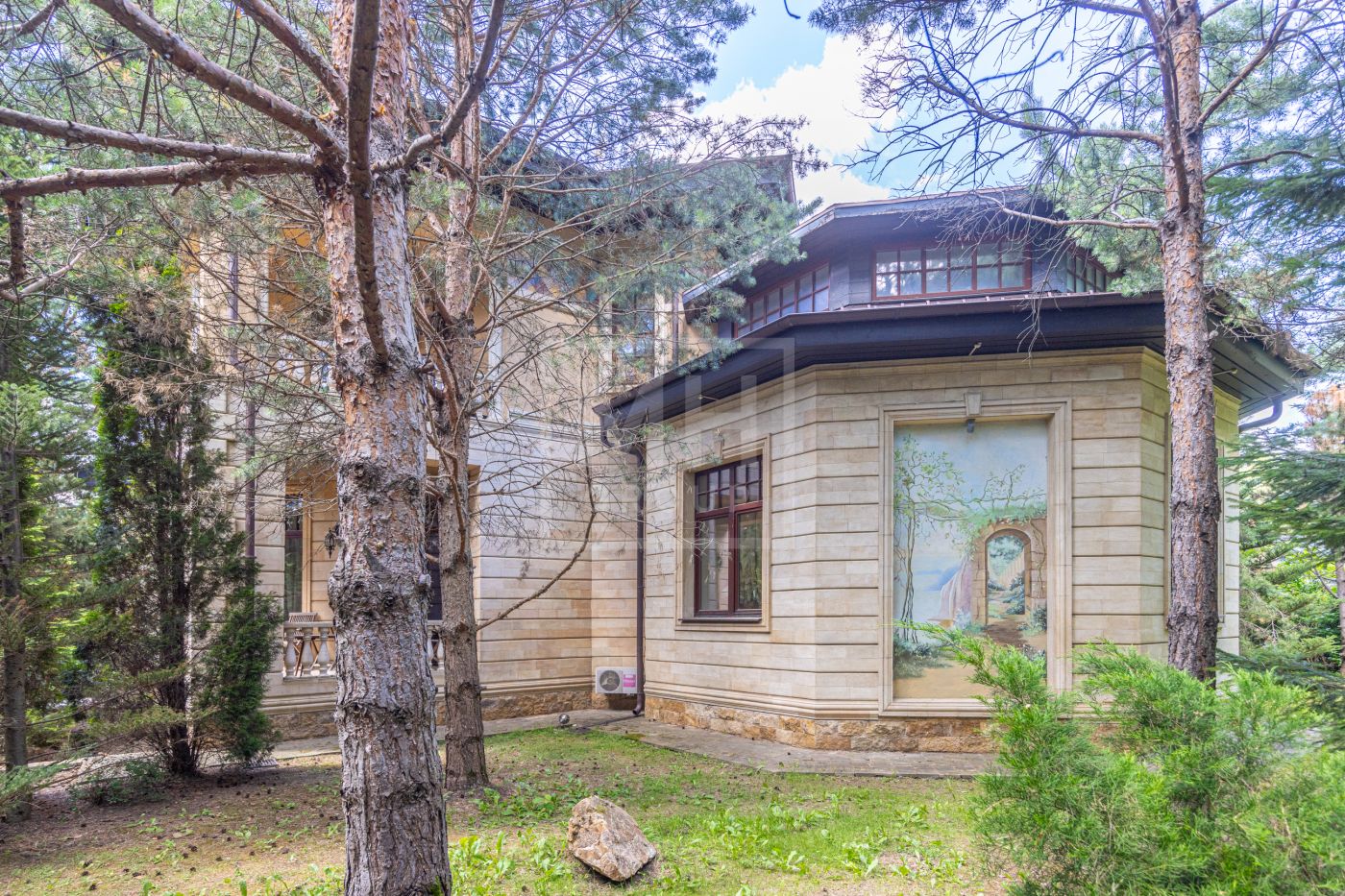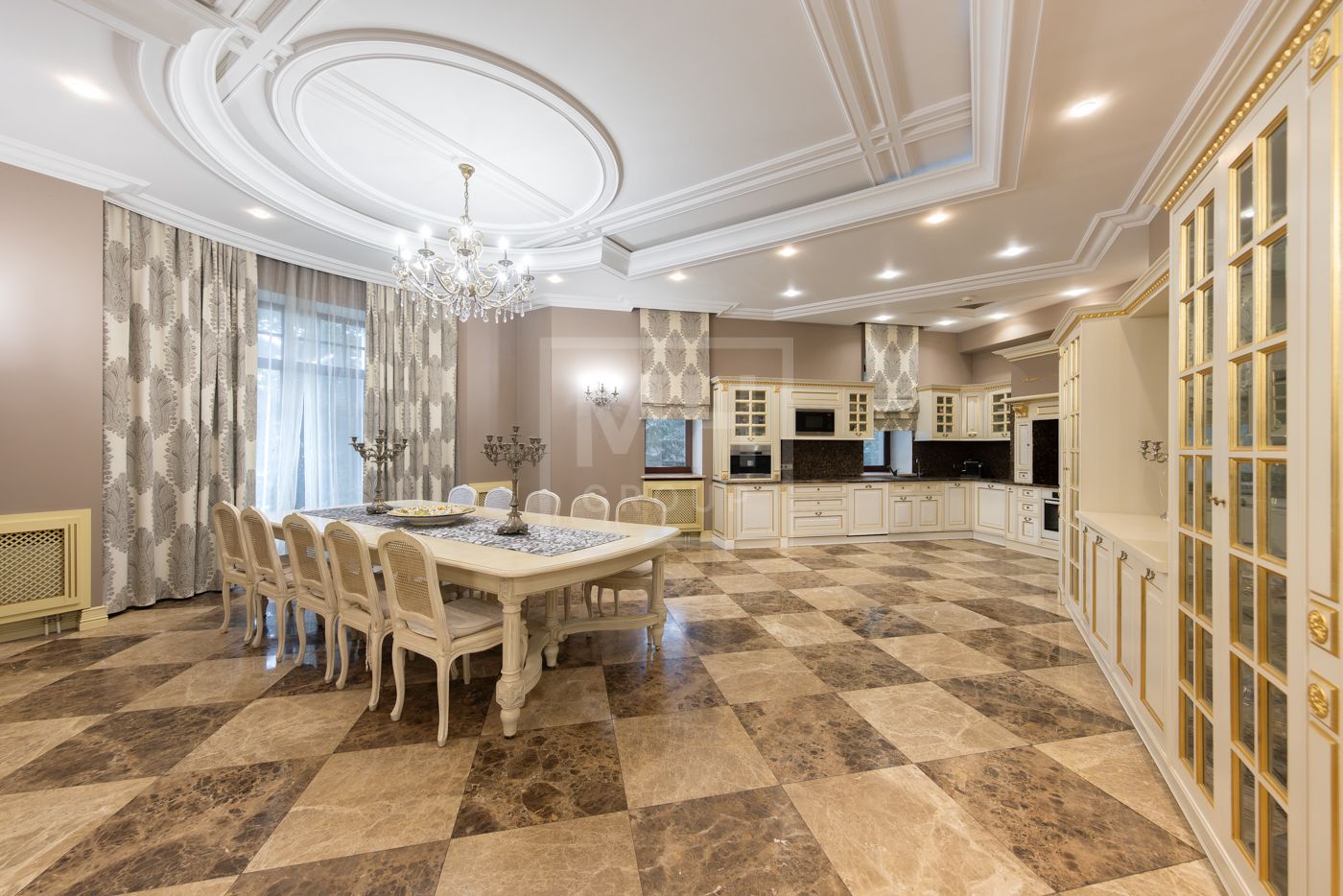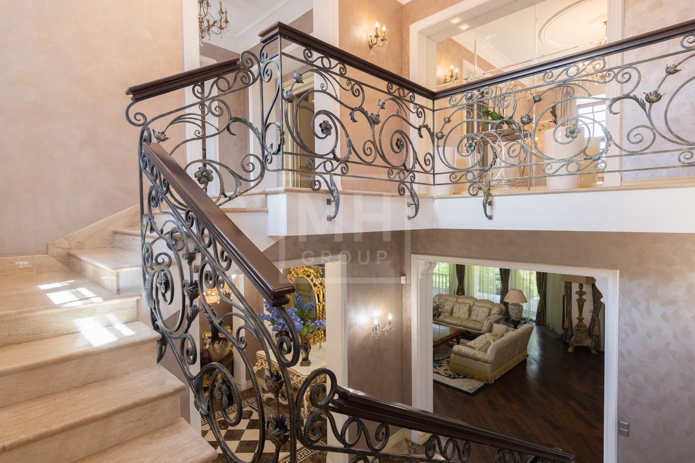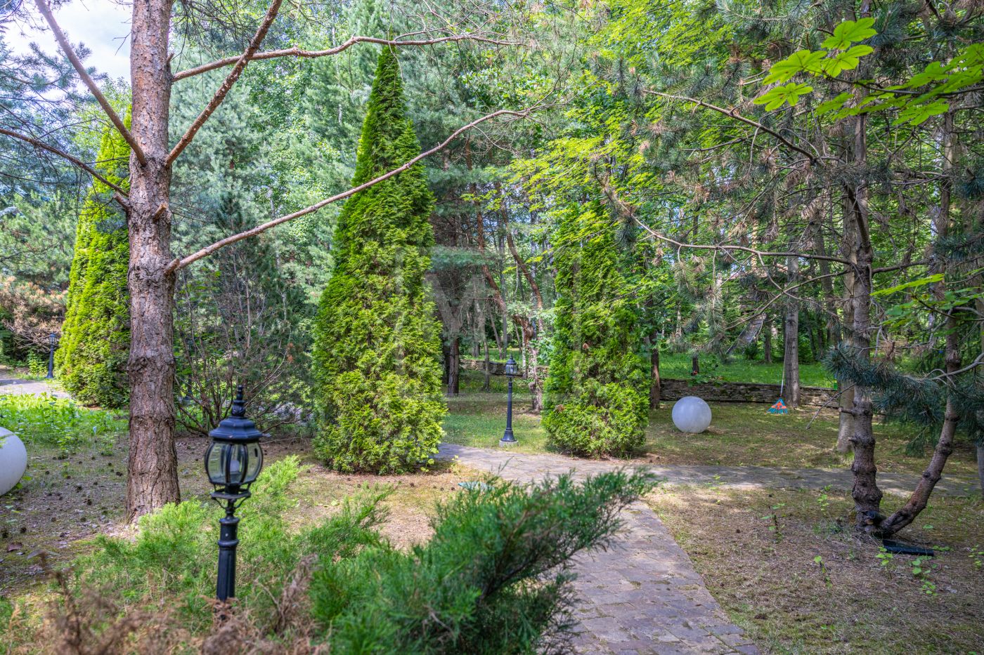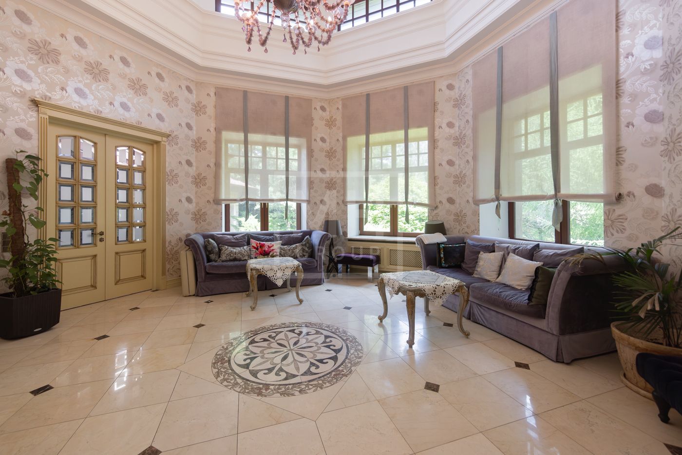 Загородная усадьба в классическом стиле на живописном лесном участке. Прекрасное расположение в самом поселке: в тихой тупиковой улице, рядом выход в охраняемый лесной массив.
