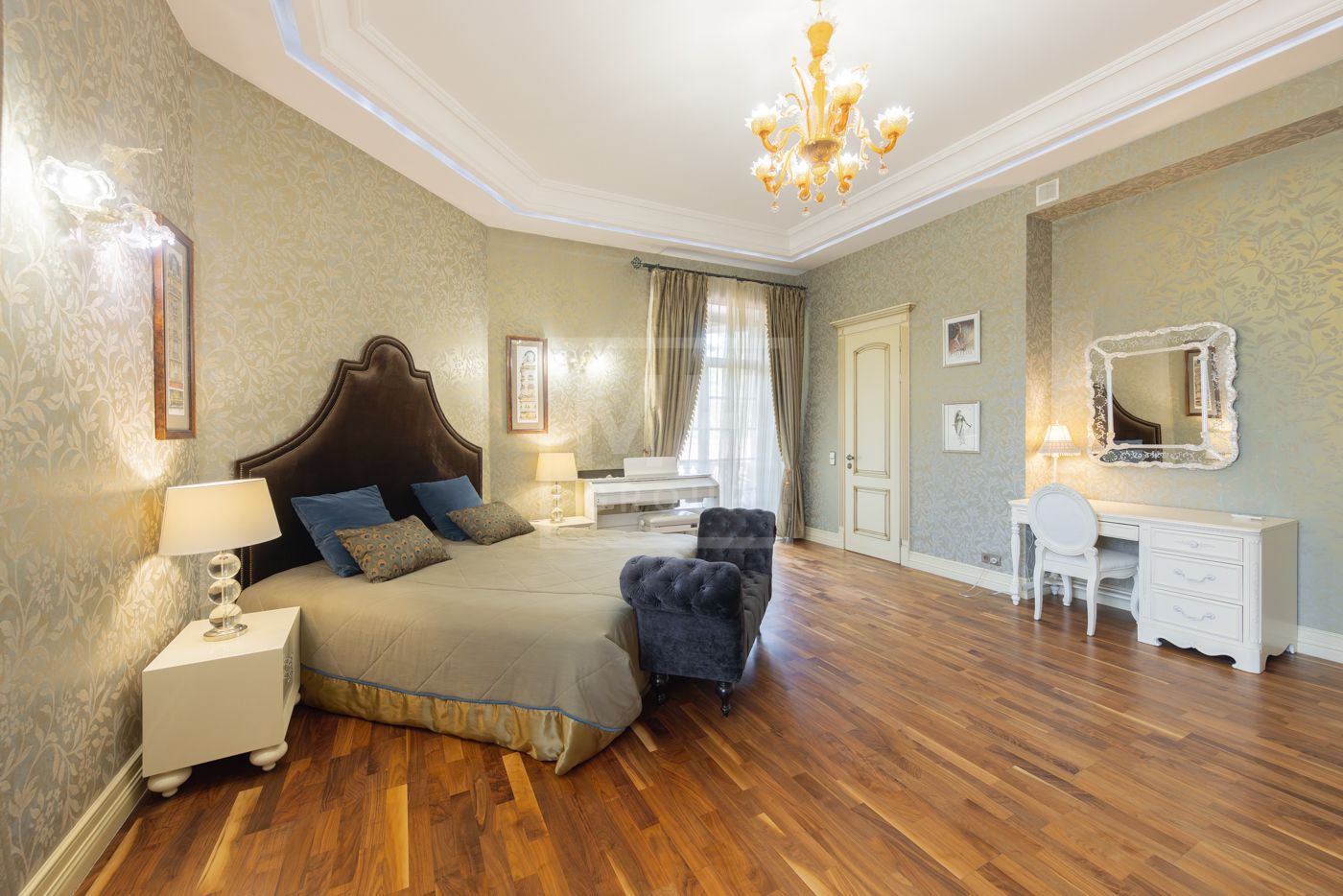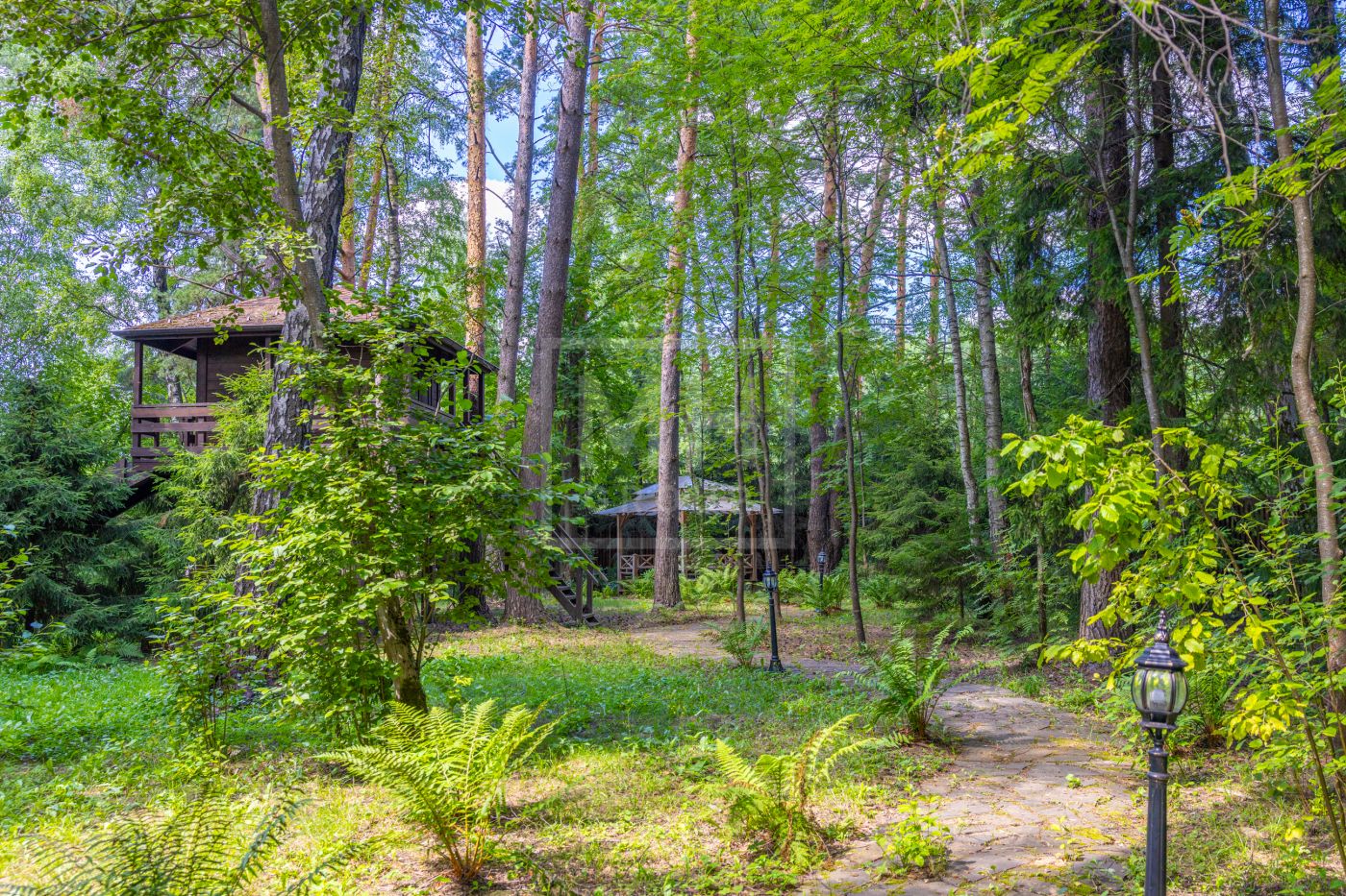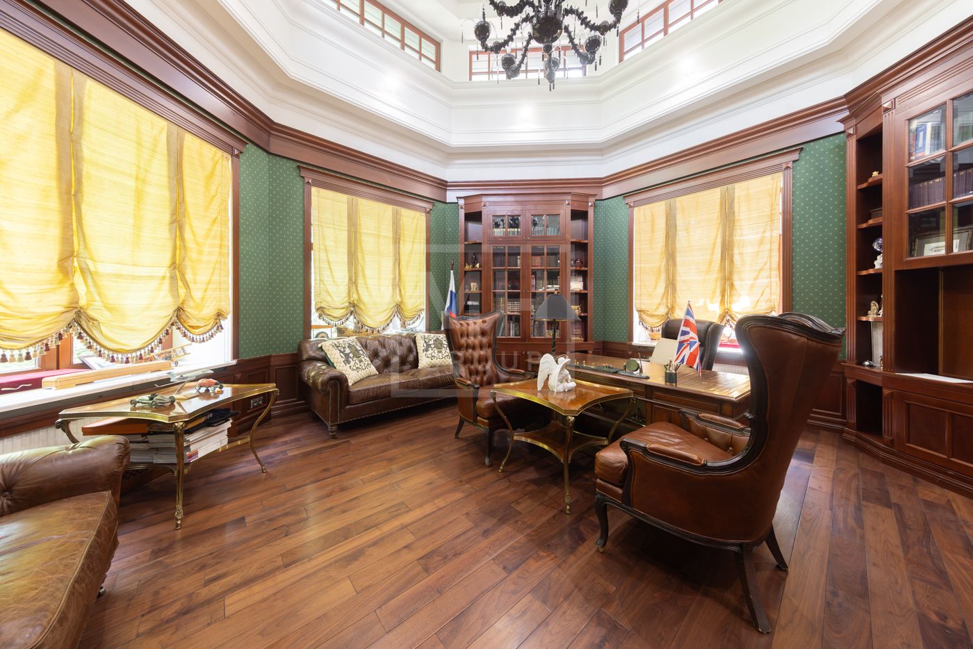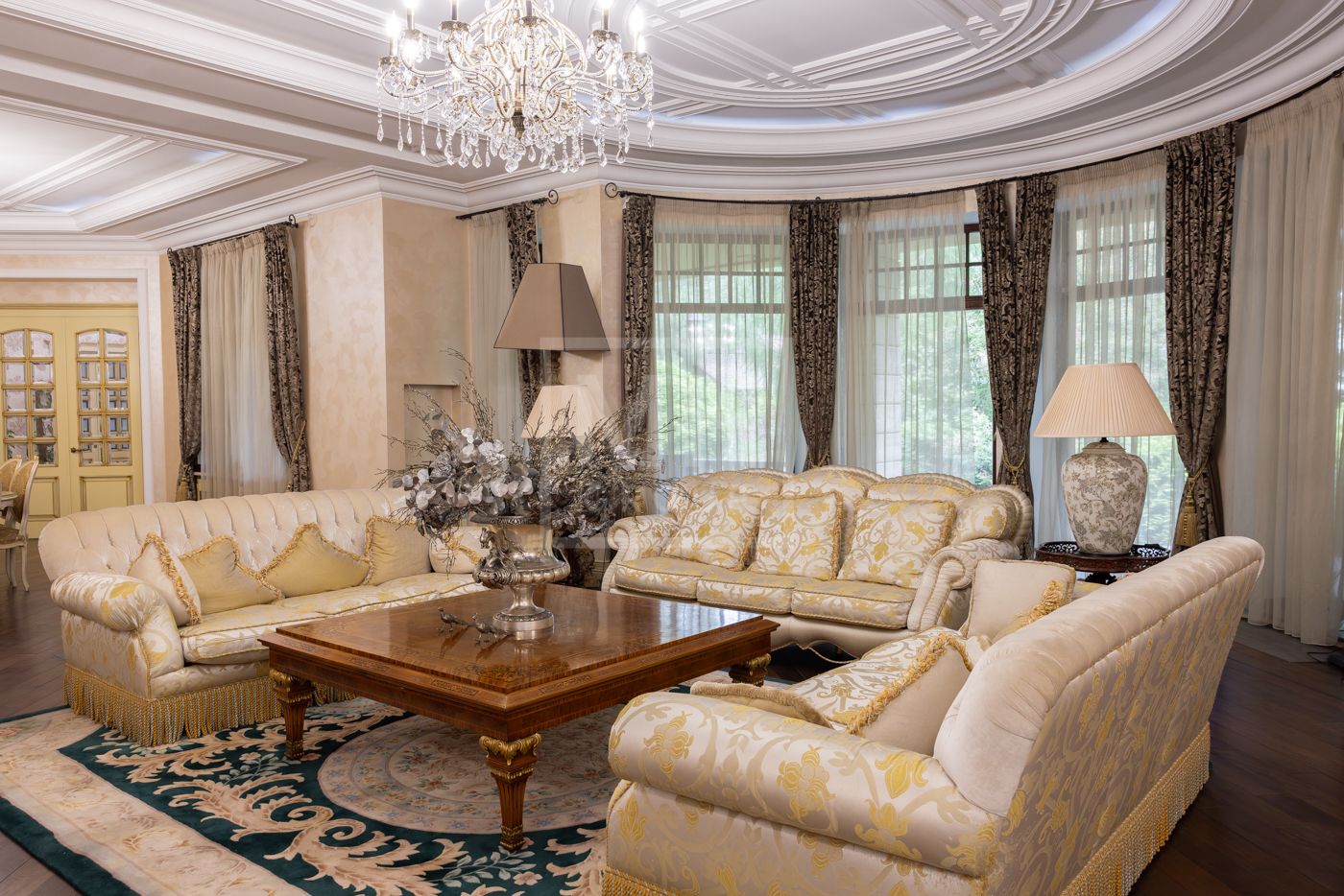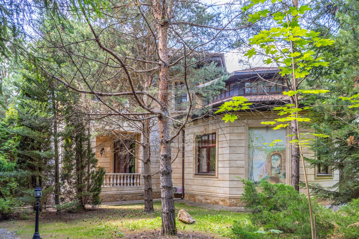 Загородная усадьба в классическом стиле на живописном лесном участке. Прекрасное расположение в самом поселке: в тихой тупиковой улице, рядом выход в охраняемый лесной массив.